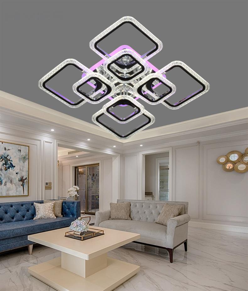 Lámparas de sala de estar cuadradas, lámpara de techo LED con atenuación continua, lámpara de habitación Sky City, dormitorio, iluminación de voz AI