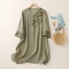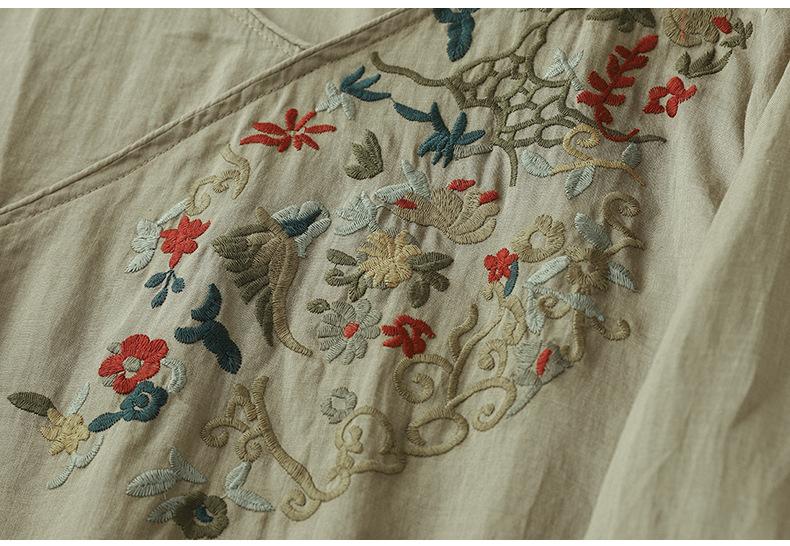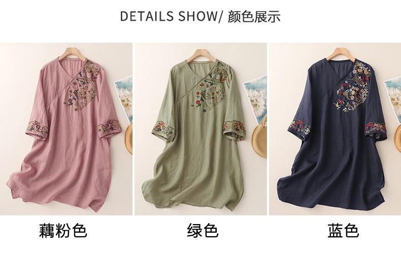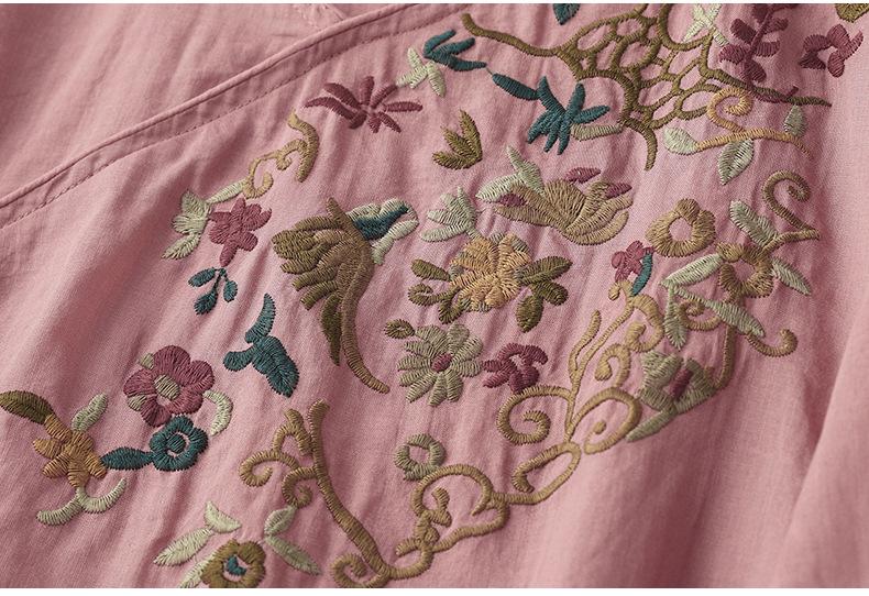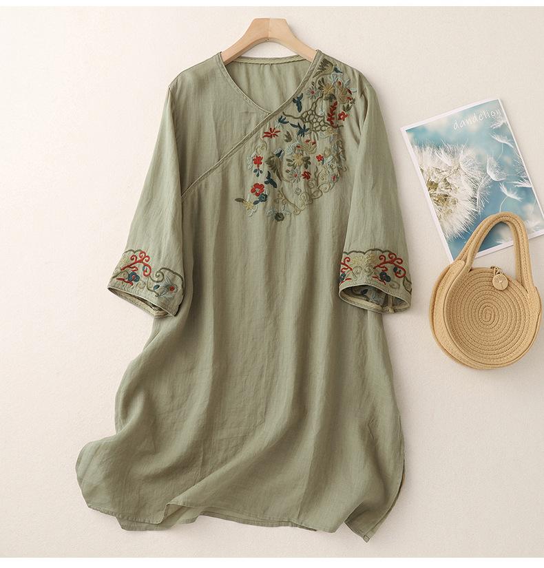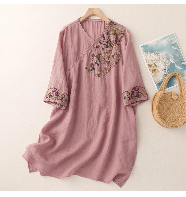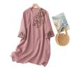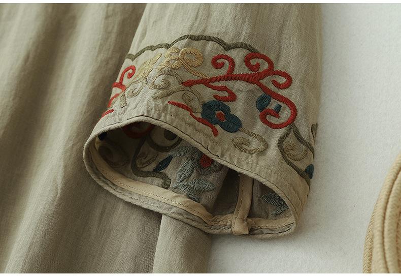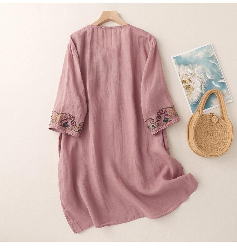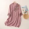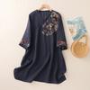 Vestido camisero holgado estilo occidental, estilo vintage, con bordado artístico, de lino y algodón para mujer, novedad de verano de 2024.