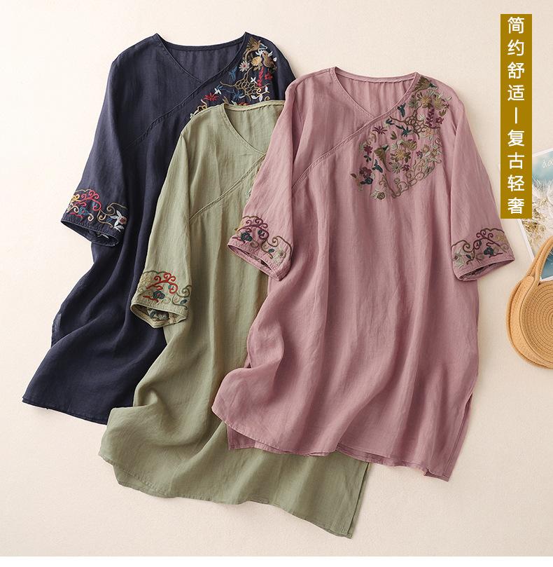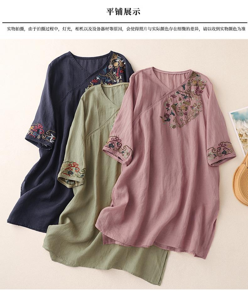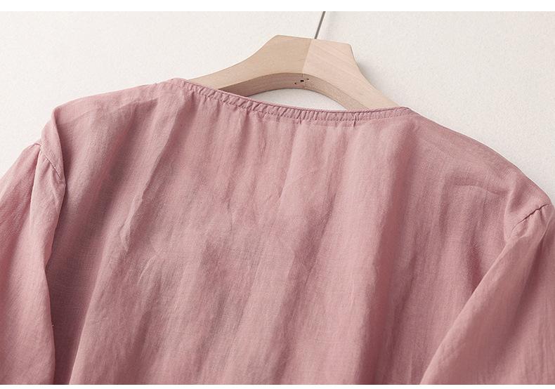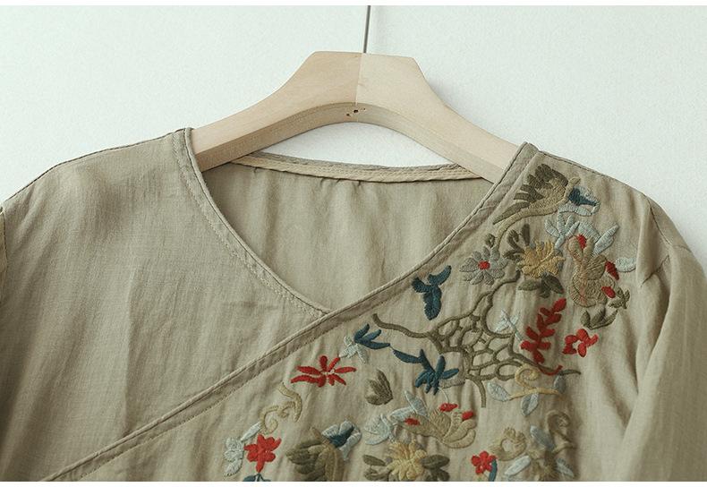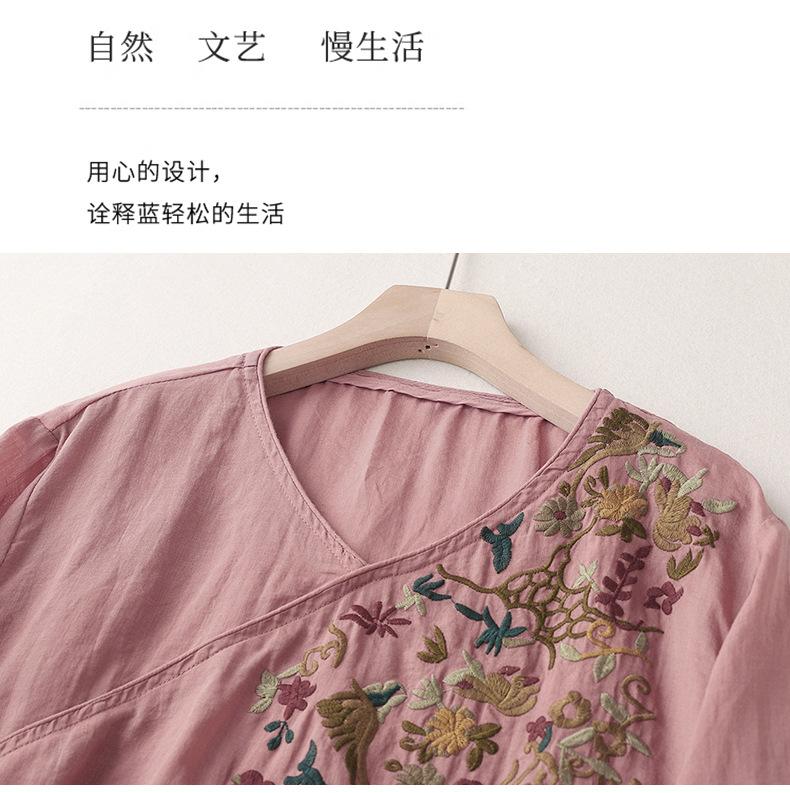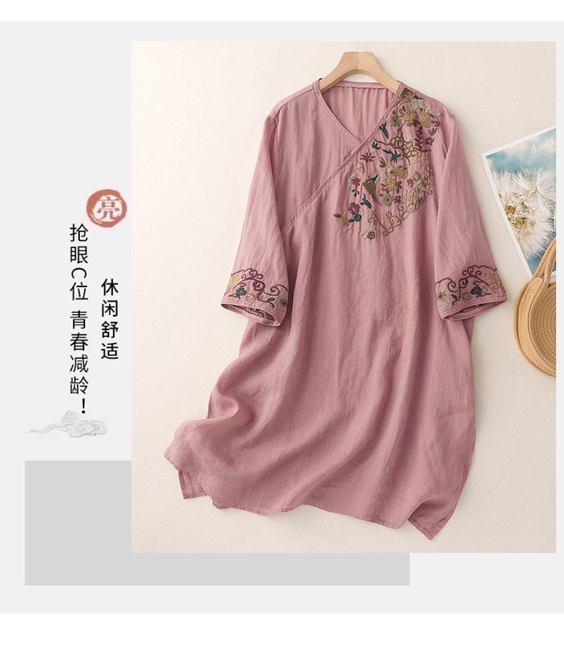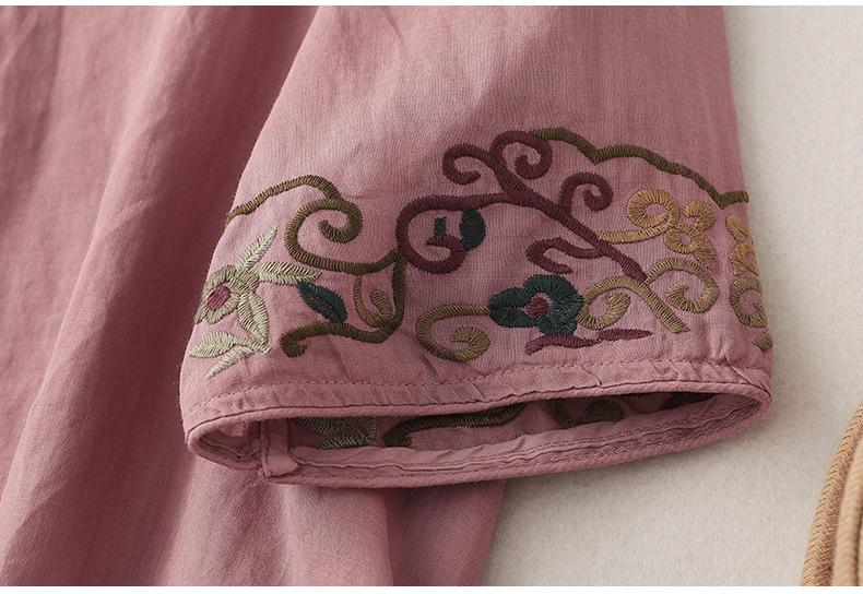 Vestido camisero holgado estilo occidental, estilo vintage, con bordado artístico, de lino y algodón para mujer, novedad de verano de 2024.
