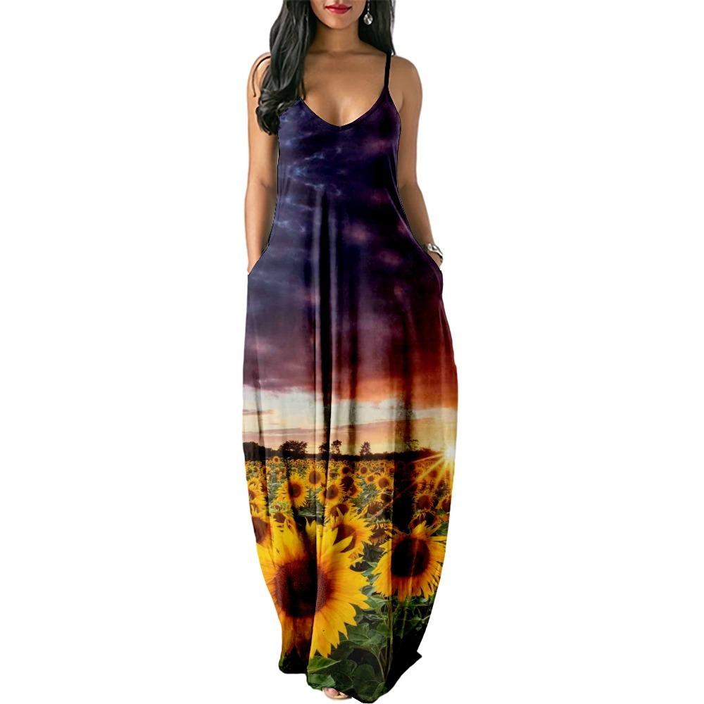 Vestido de tirantes sexy y fresco de verano de Amazon, vestido holgado con estampado digital de girasol, vestido de temperamento para mujer