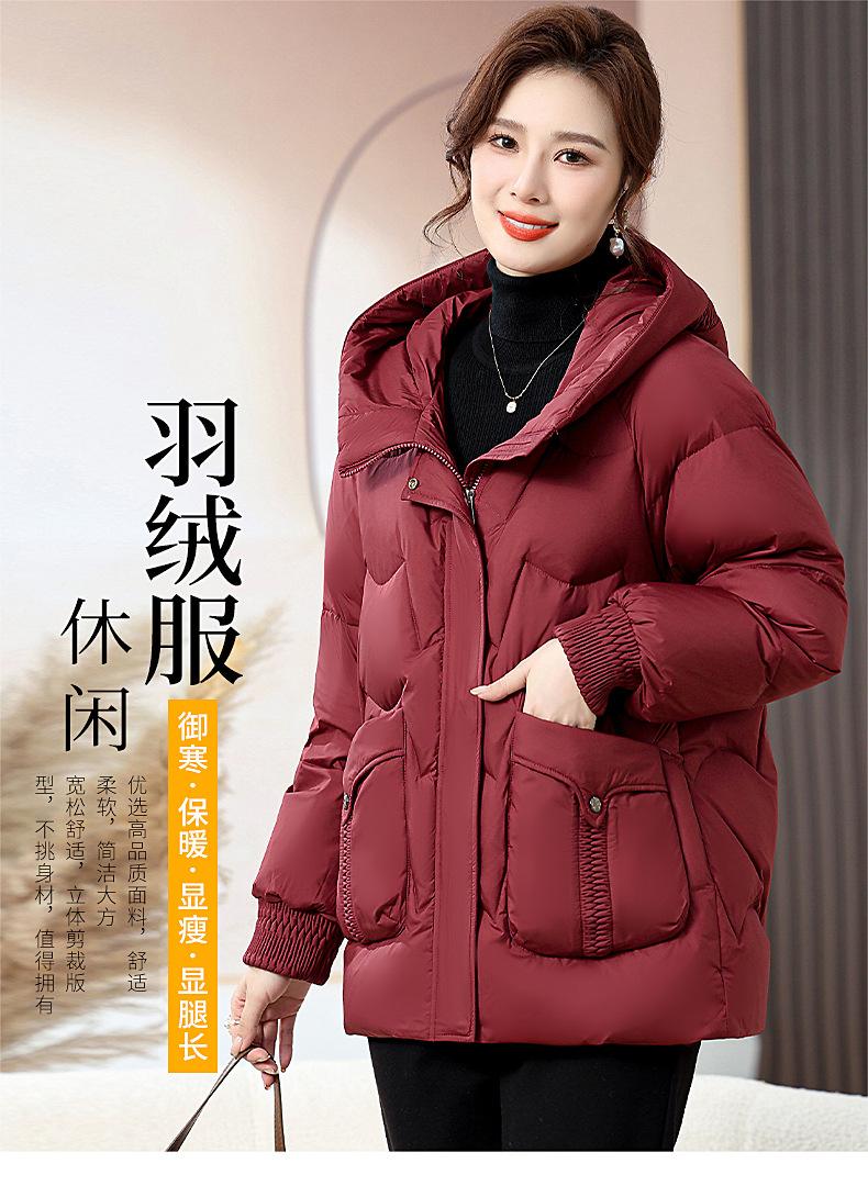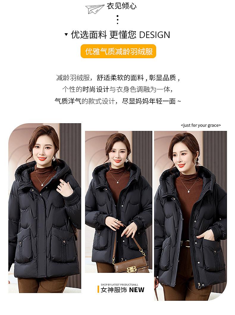 Abrigo Cálido de Invierno de Plumón de Pato para Mamá 2023 Nuevo Estilo para Mujeres de Mediana Edad de 50 Años Chaqueta de Plumón con Capucha