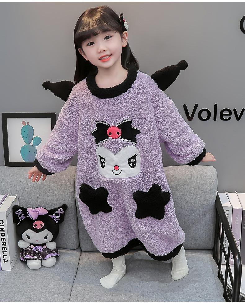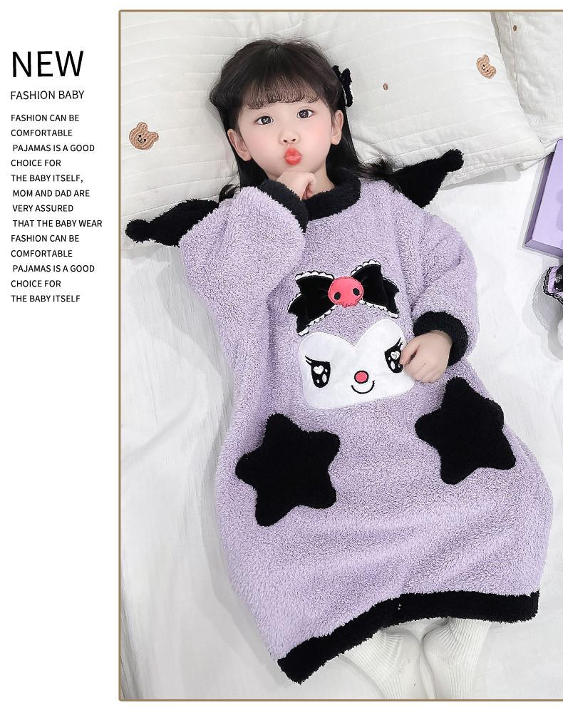 Pijama de otoño e invierno para niñas, de franela gruesa y cálida, de forro polar coral, ropa de casa de invierno para niños.