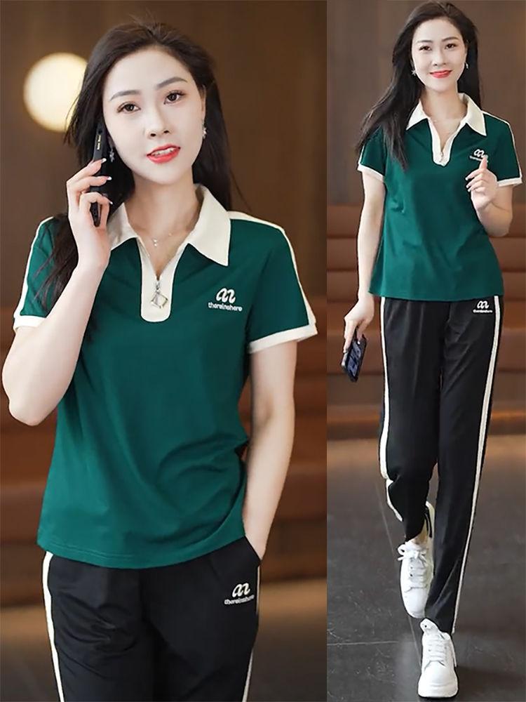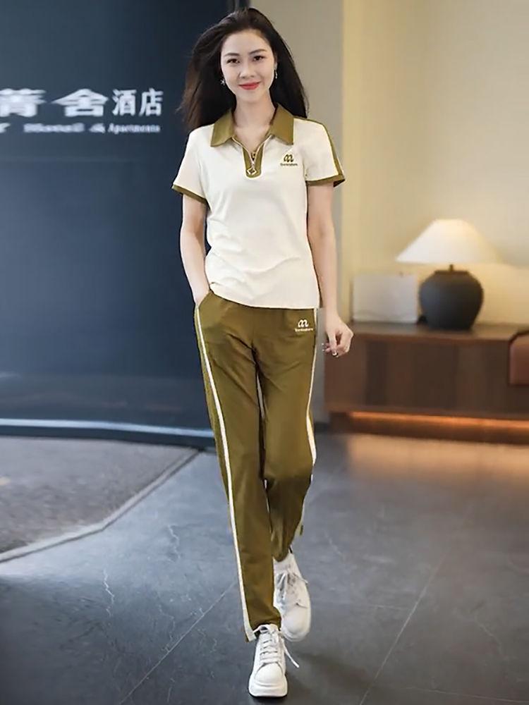 Traje Casual de Solapa Delgada y Manga Corta para Mujer 2024 Verano Nueva Moda Ropa Deportiva Conjunto de Dos Piezas Moderno y Versátil