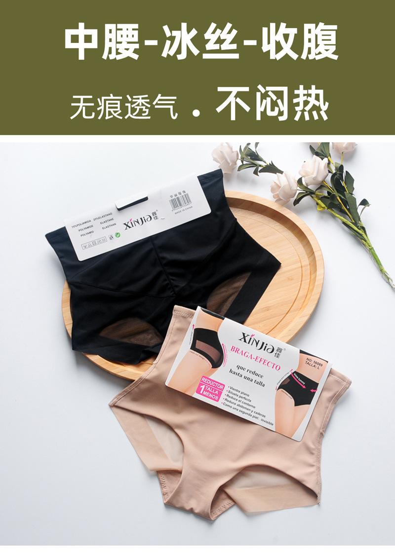 Pantalones de control de abdomen sin costuras de cintura media de Amazon Xinjia para adelgazar el vientre y moldear el cuerpo, ropa interior moldeadora de cuerpo de seda de hielo fina, comercio exterior transfronterizo |