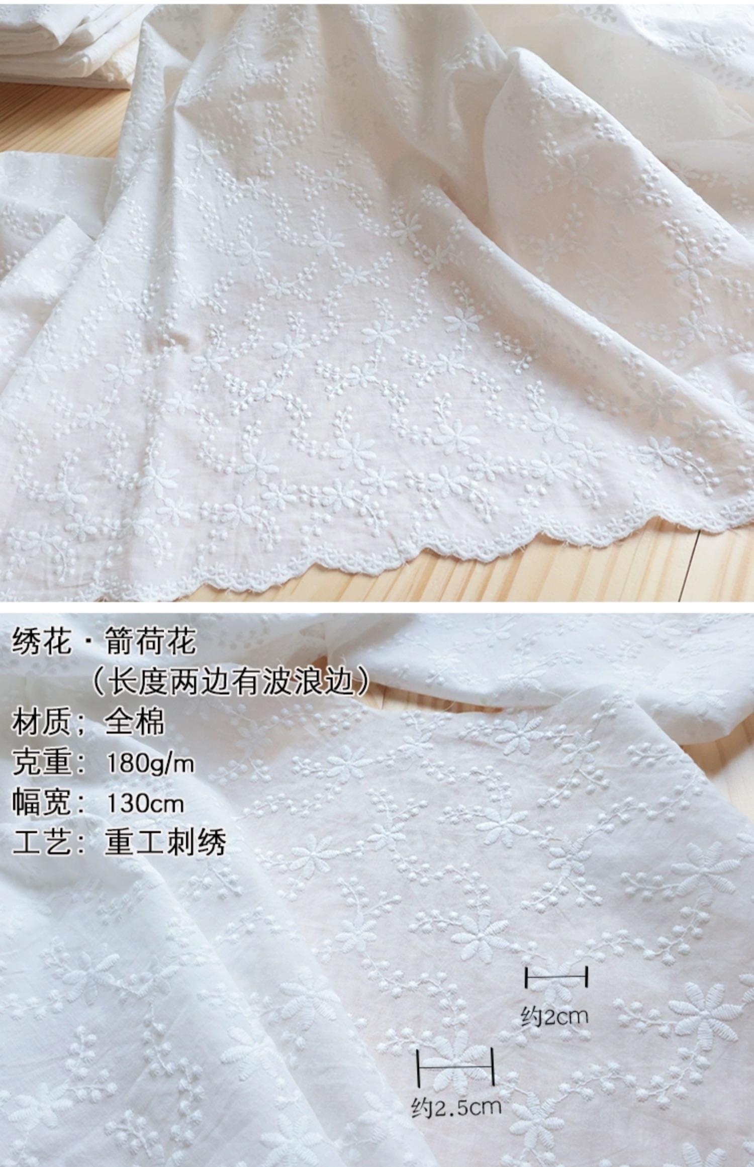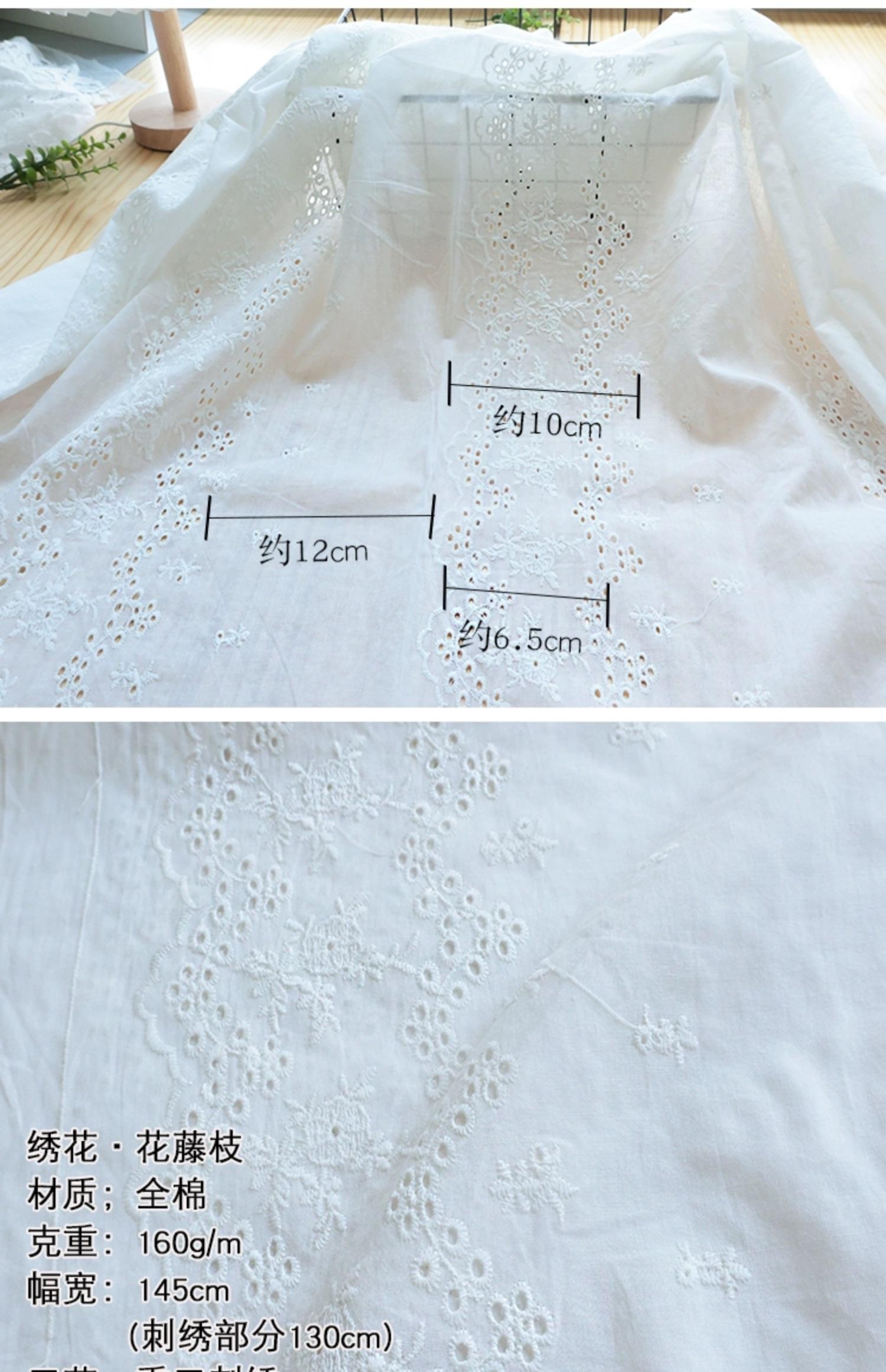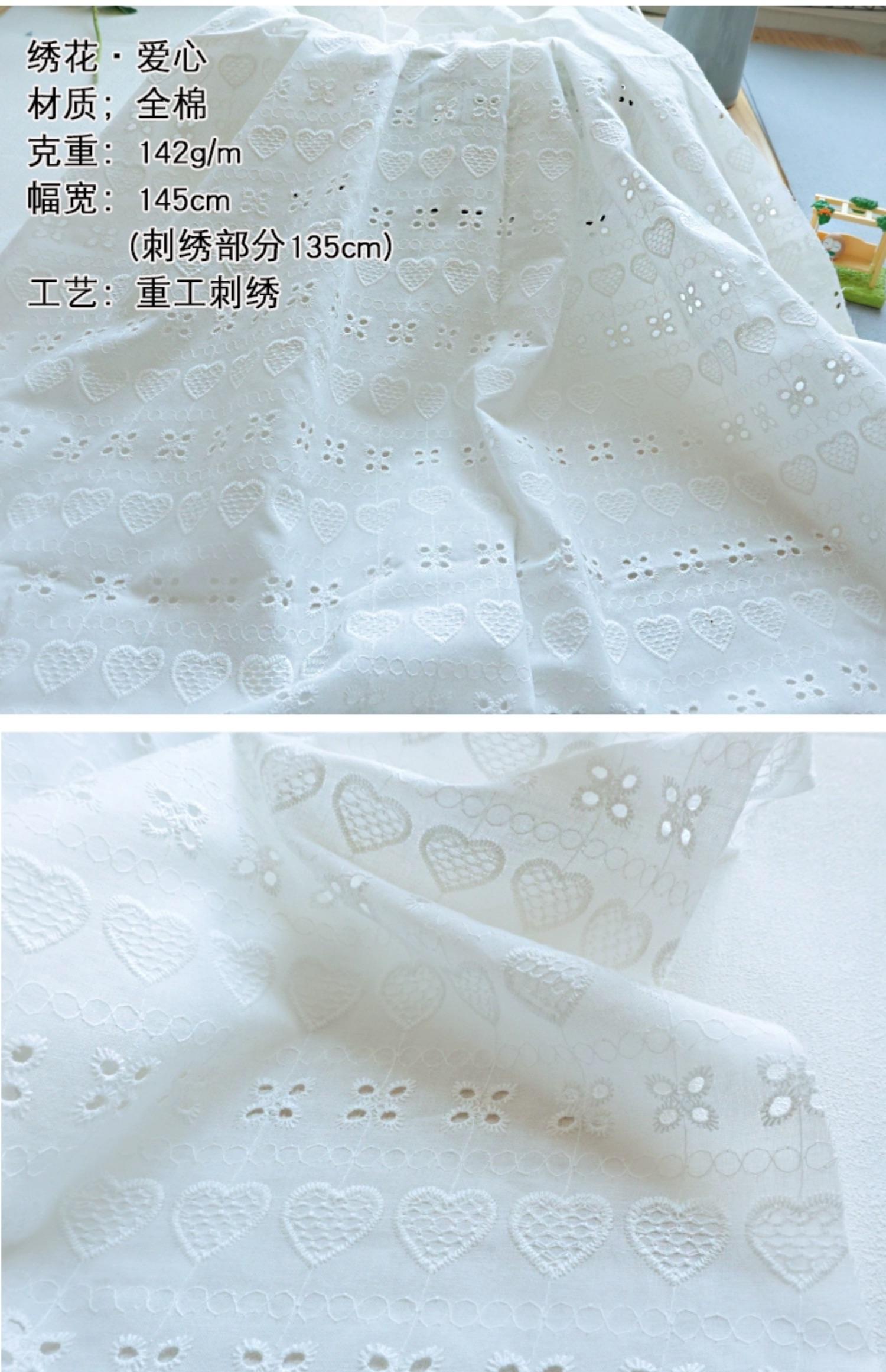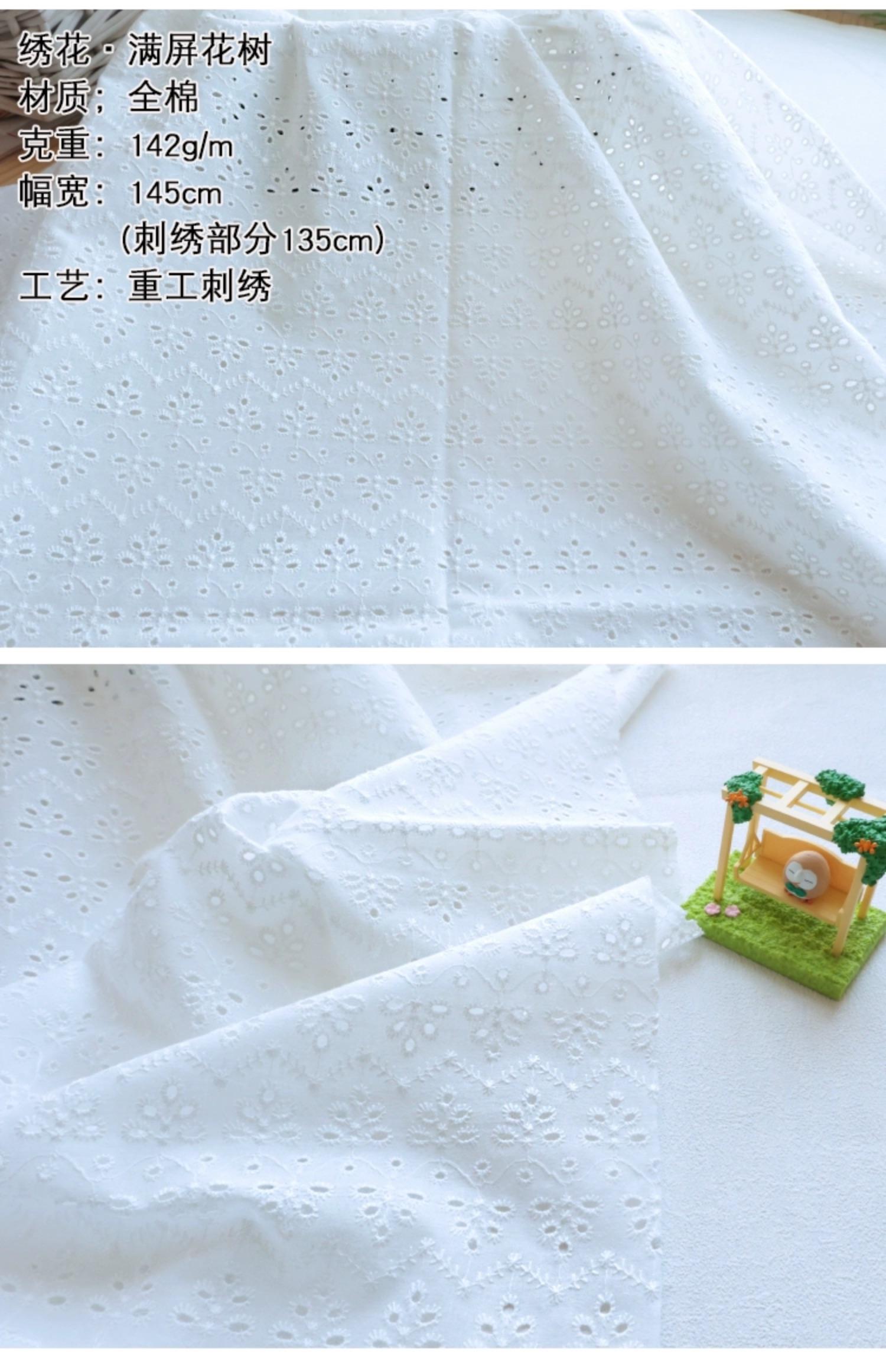Tela bordada hueca de algodón puro, tela de encaje para faldas blancas de verano, ropa, tela de boda, tela de algodón