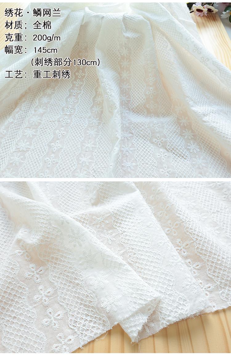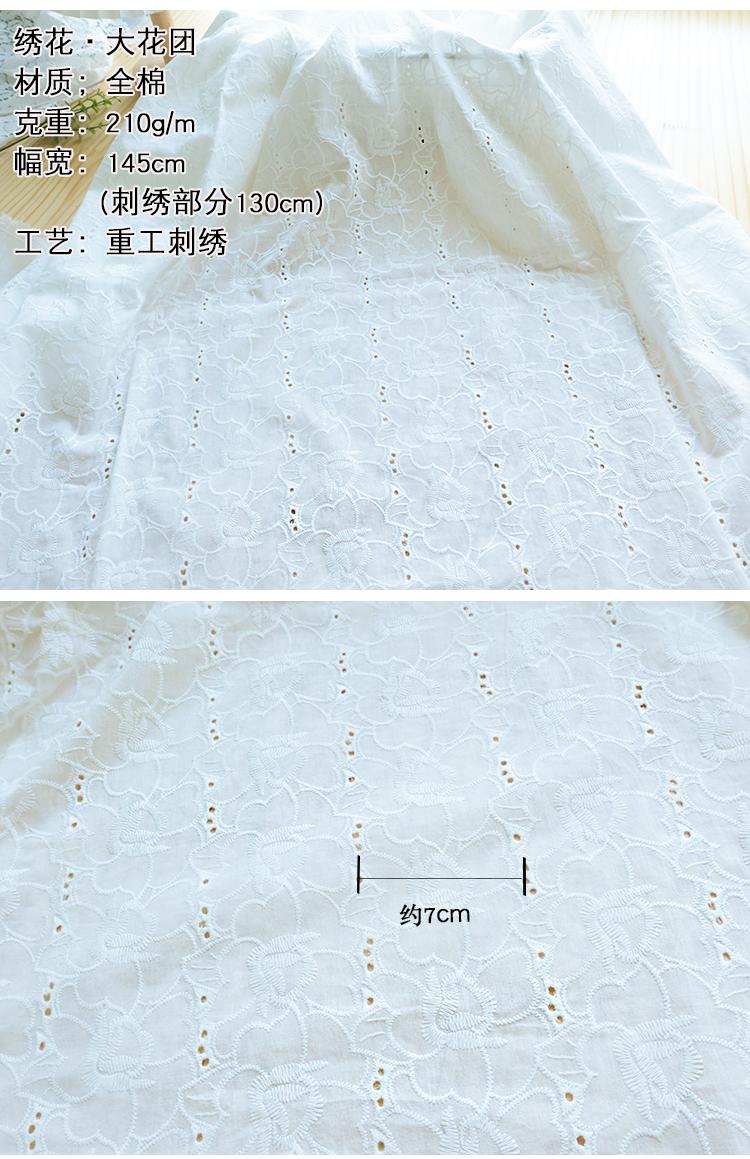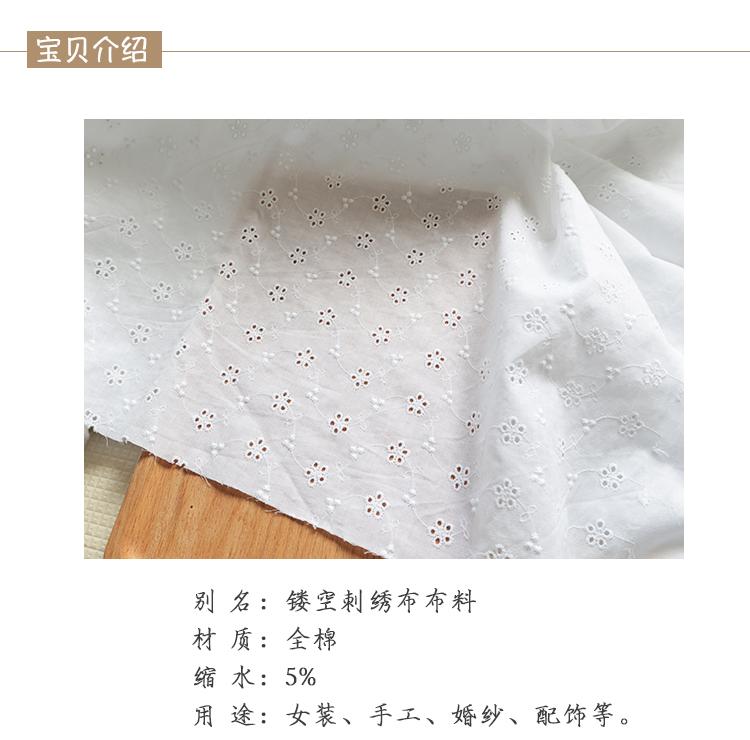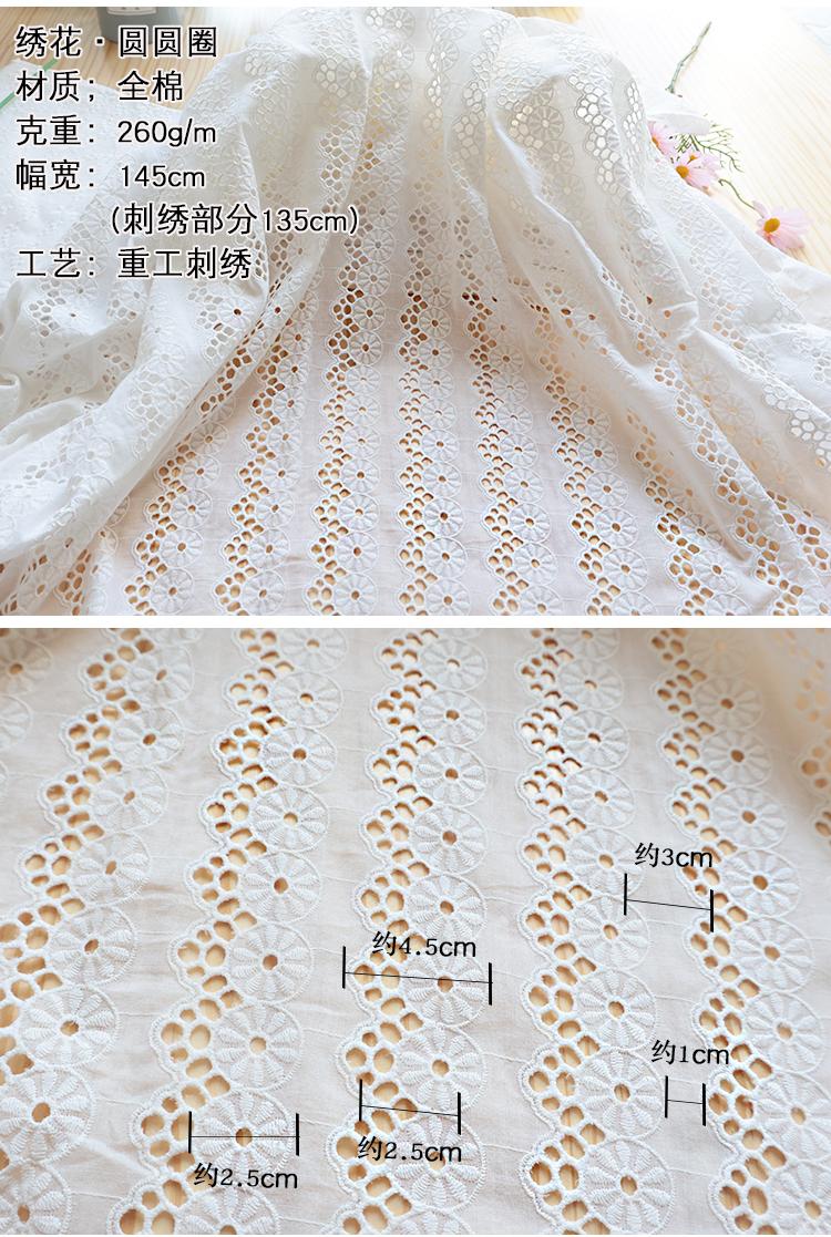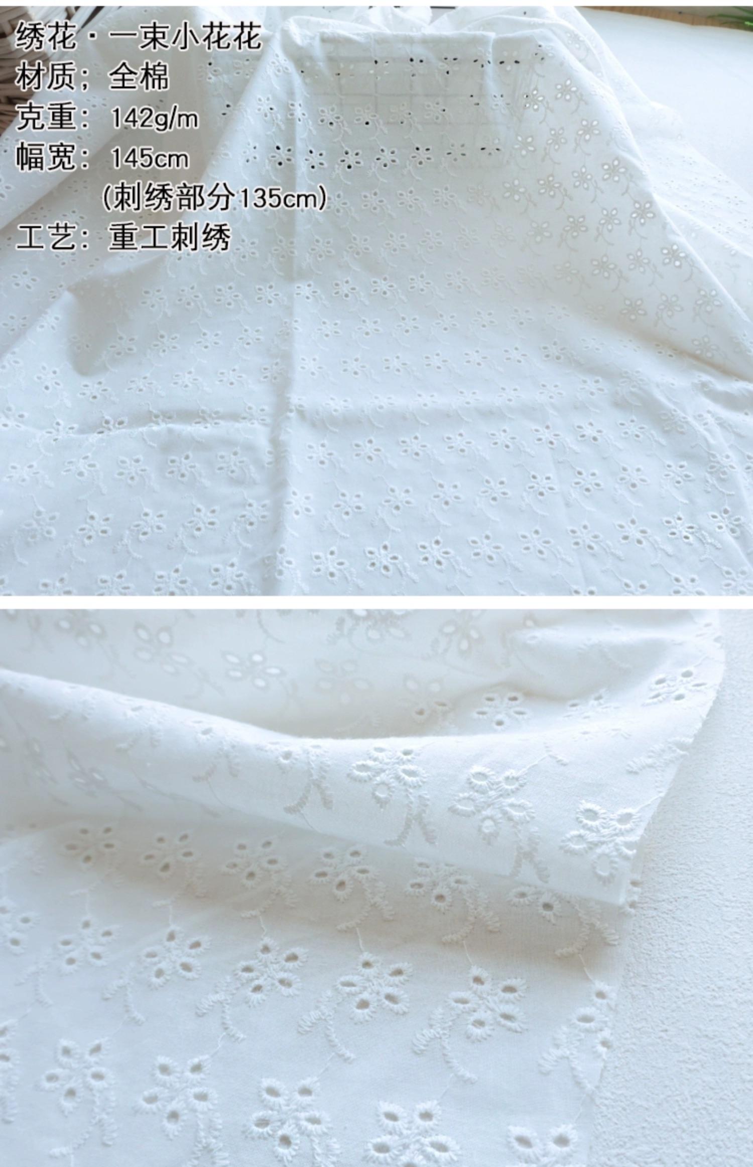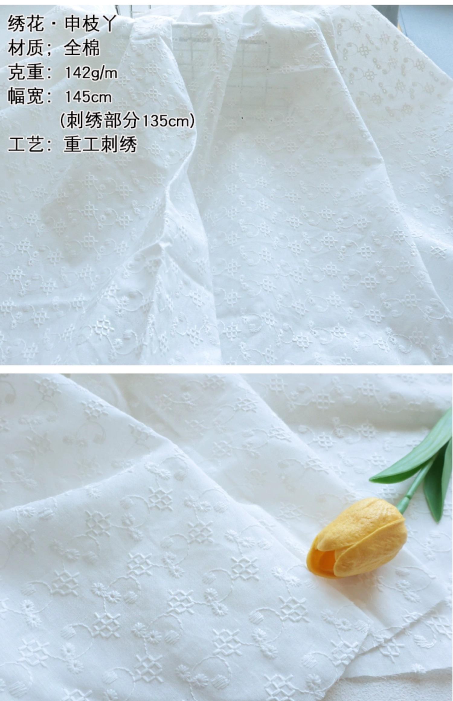 Tela bordada hueca de algodón puro, tela de encaje para faldas blancas de verano, ropa, tela de boda, tela de algodón