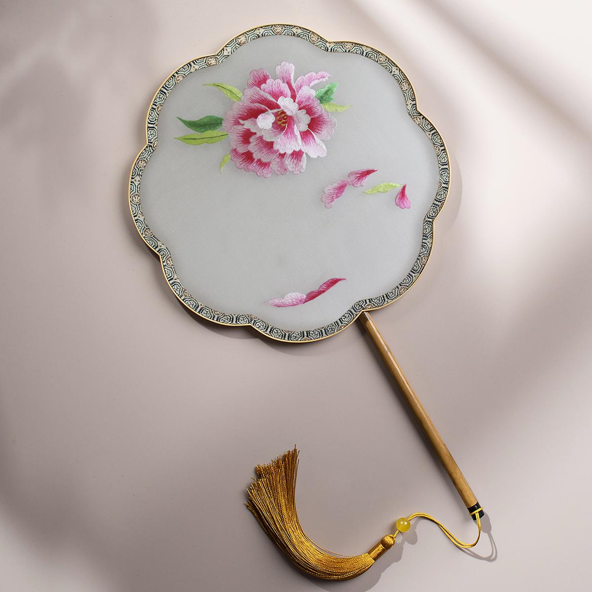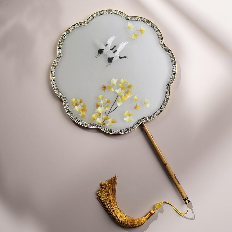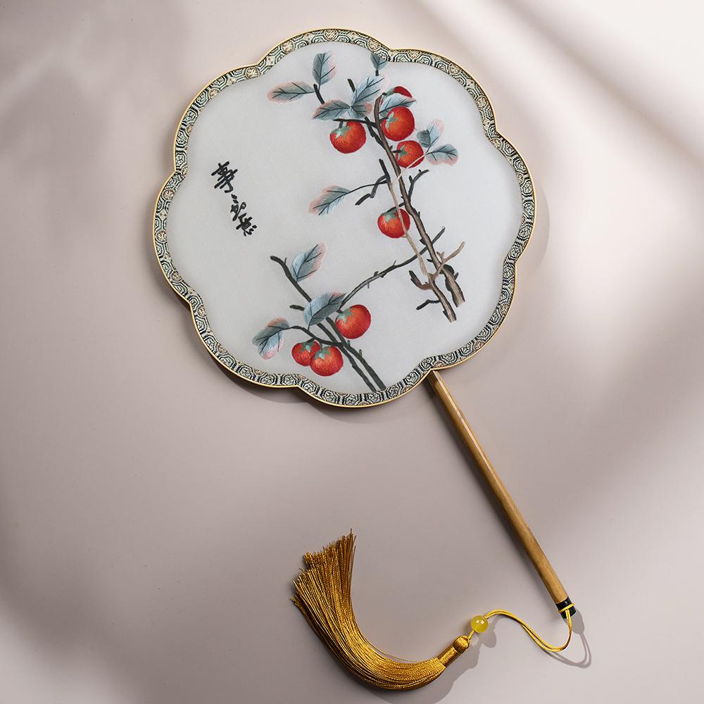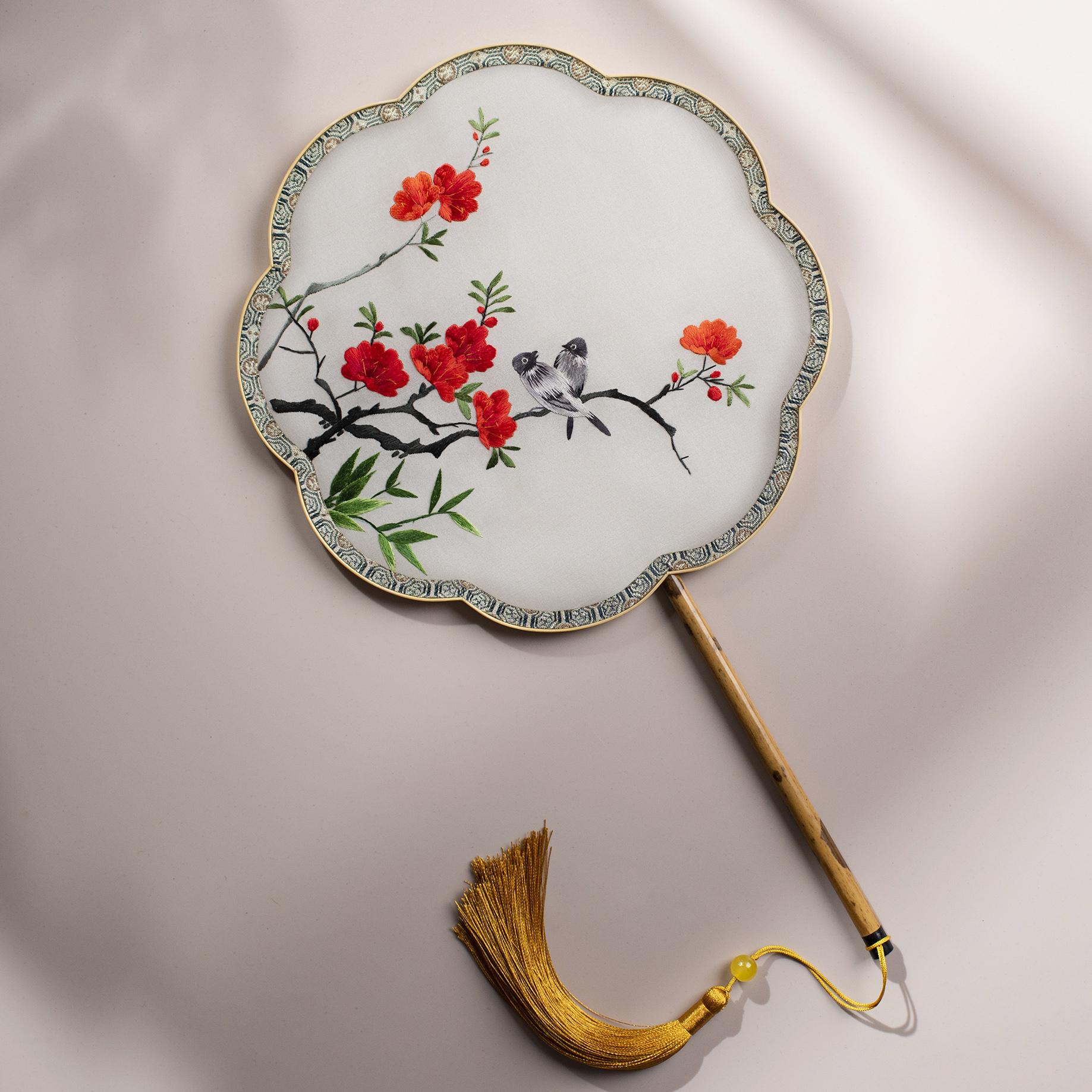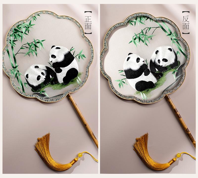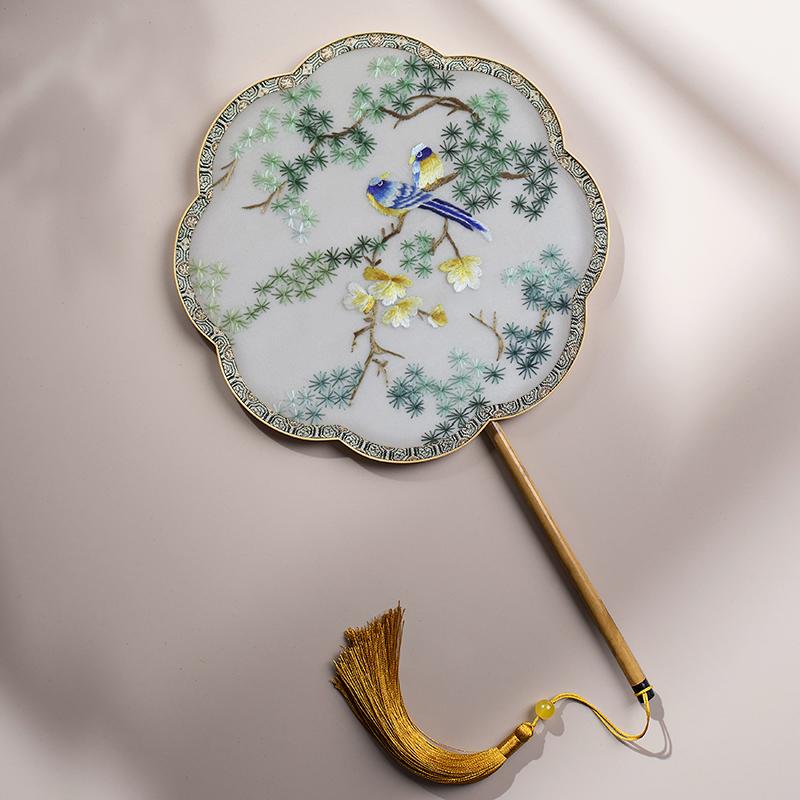 Abanico Estilo Antiguo Femenino Bordado Su Bordado de Doble Cara Estilo Chino Brocado de Nubes Artesanías Especiales Abanicos de Grupo Regalos para Extranjeros