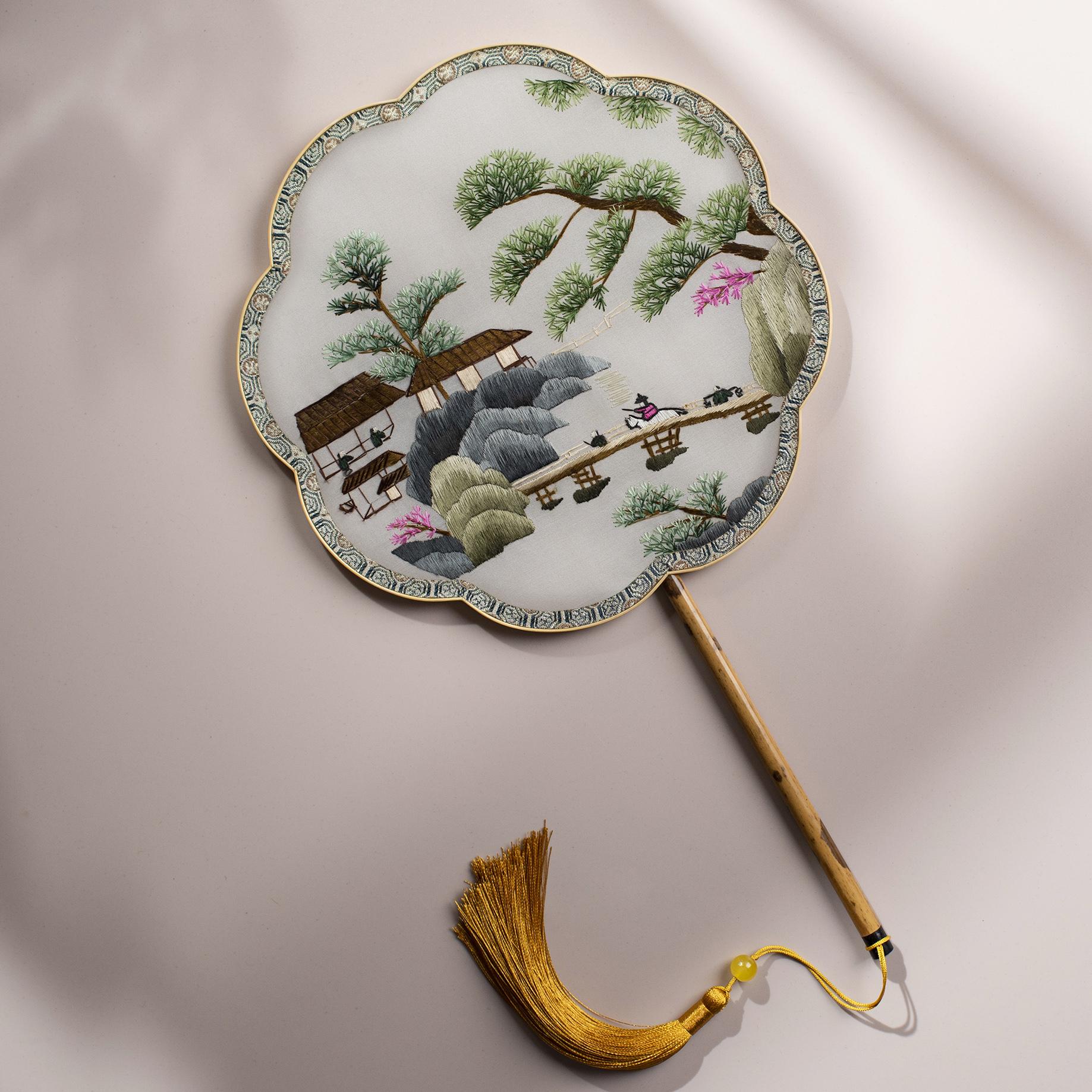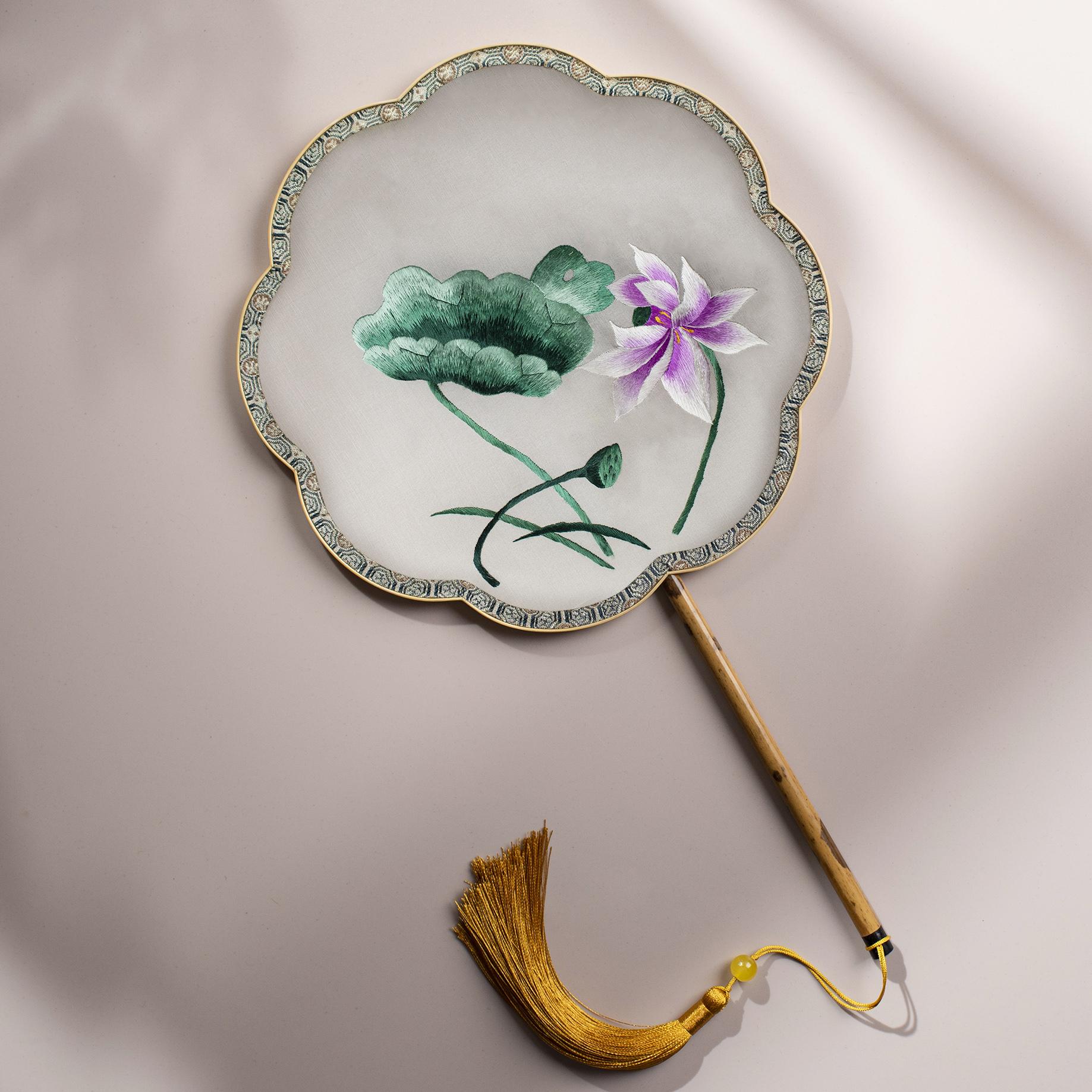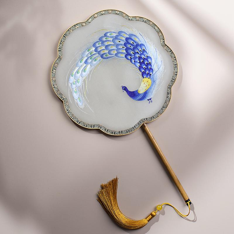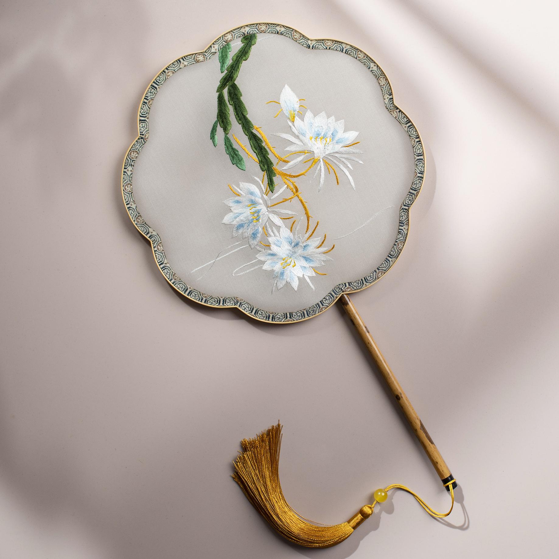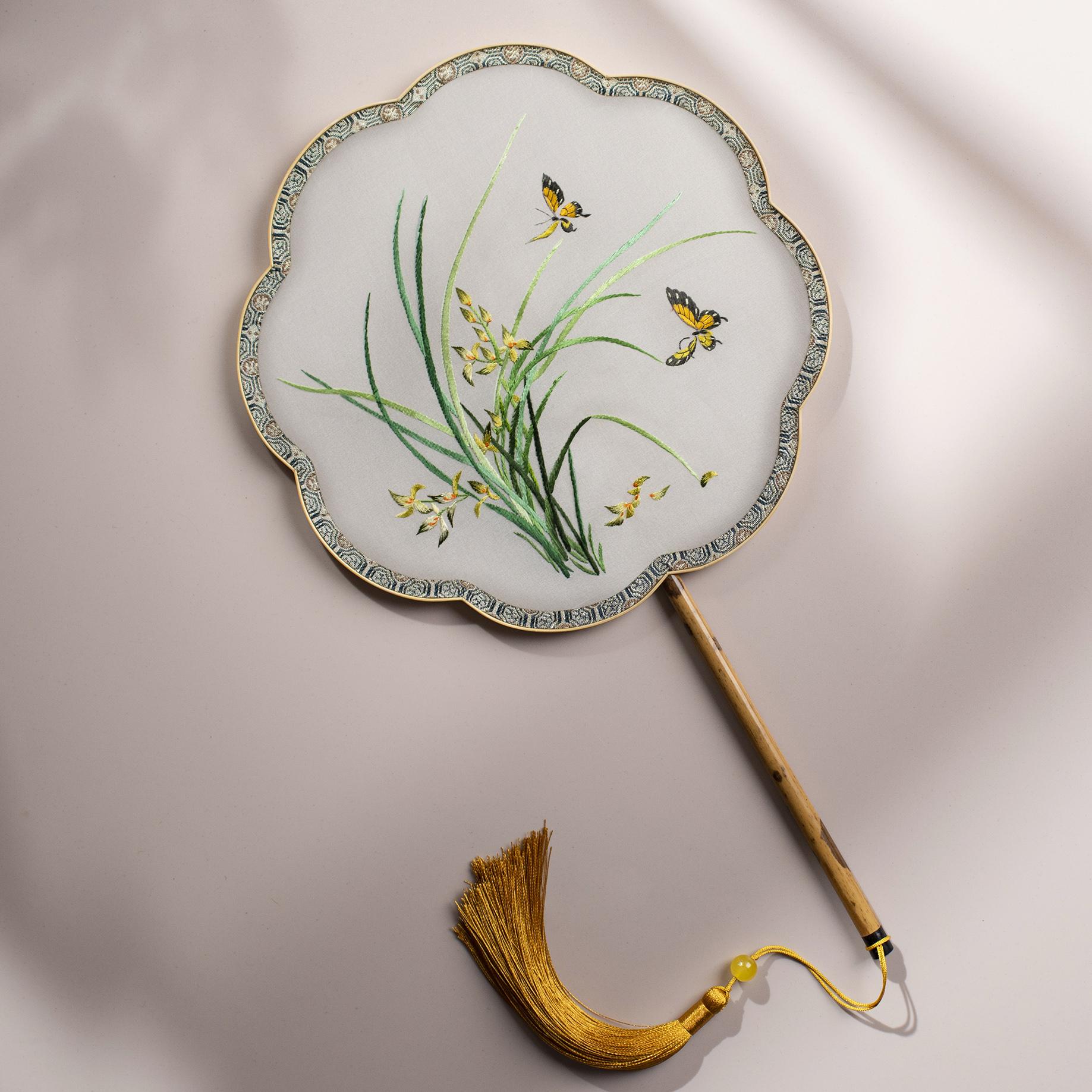 Abanico Estilo Antiguo Femenino Bordado Su Bordado de Doble Cara Estilo Chino Brocado de Nubes Artesanías Especiales Abanicos de Grupo Regalos para Extranjeros