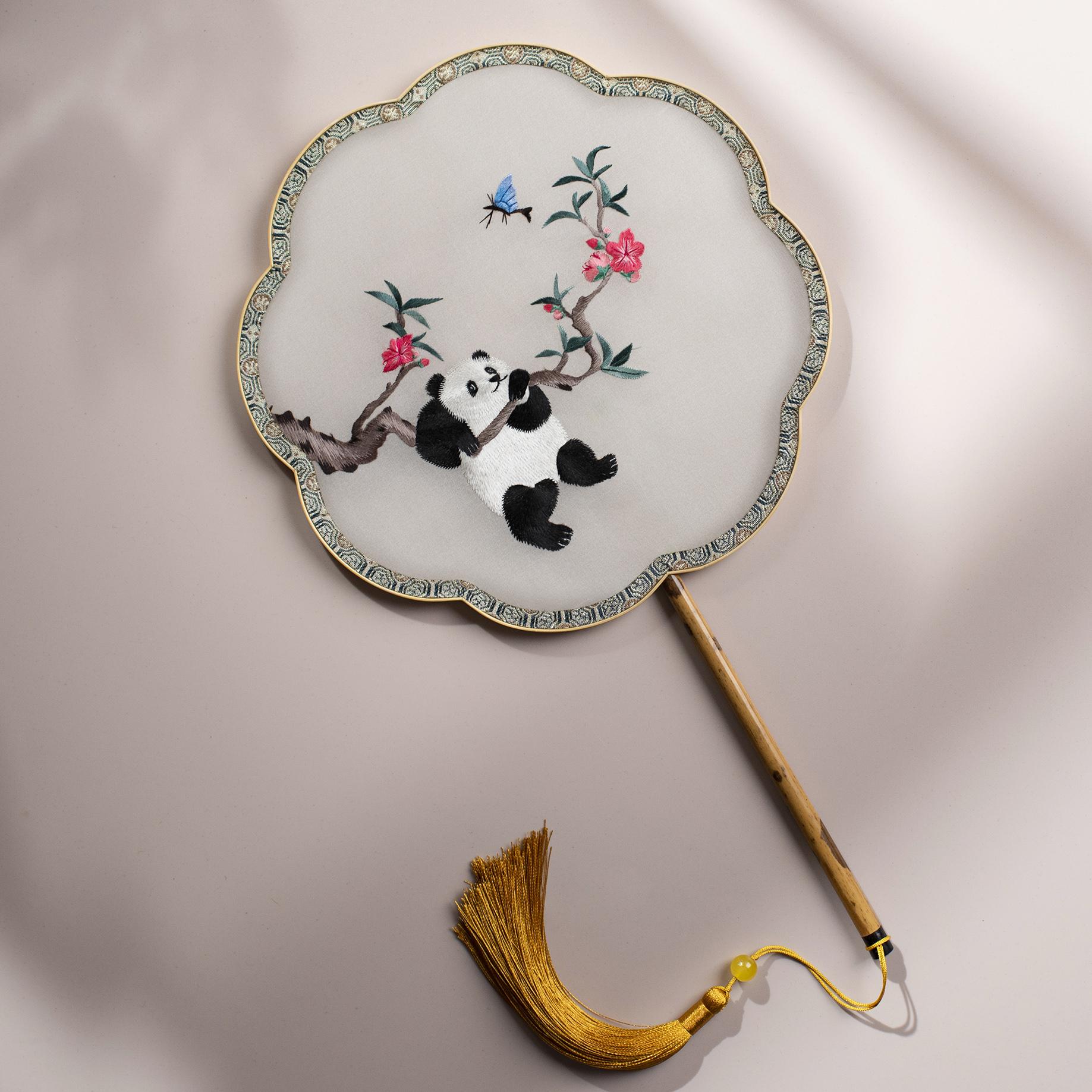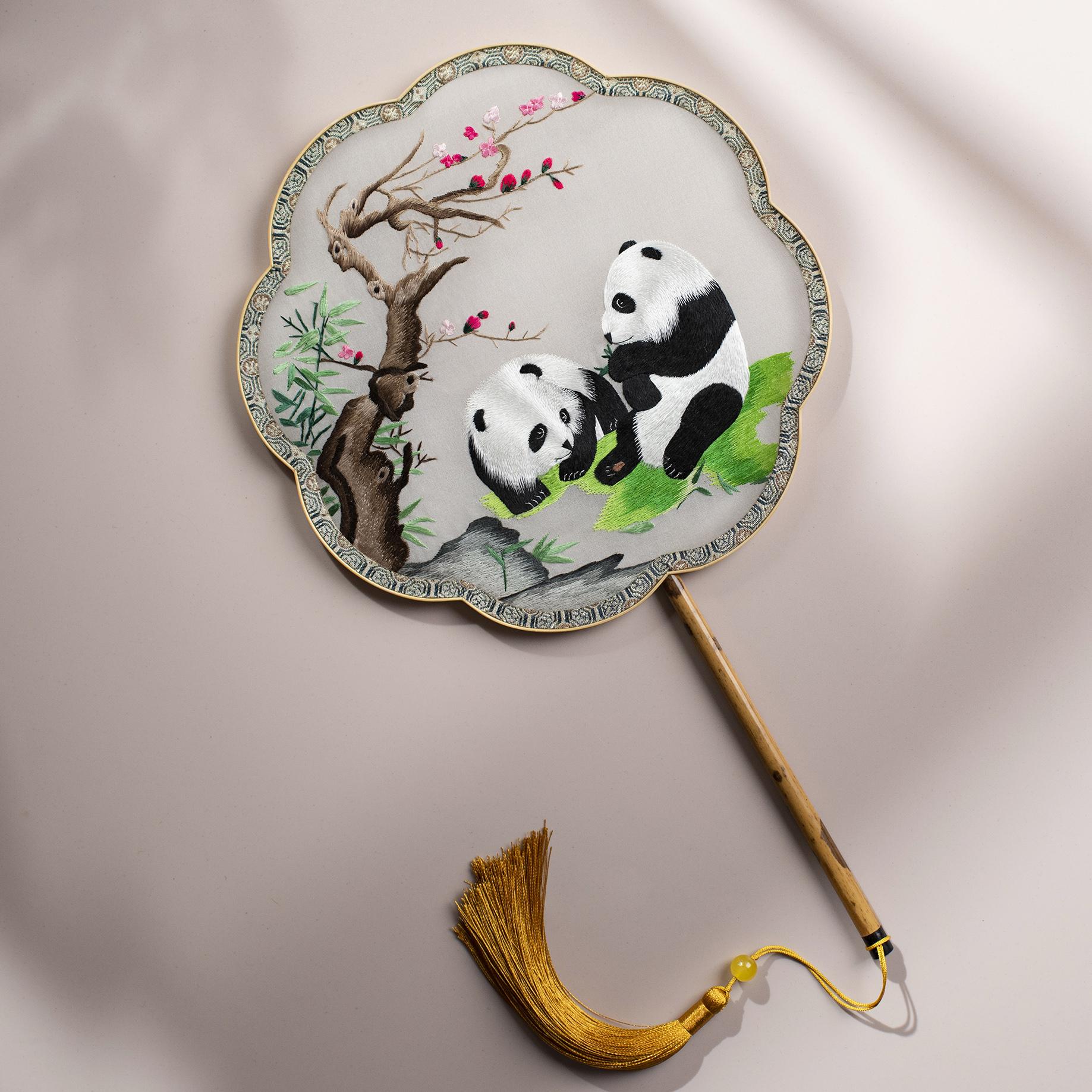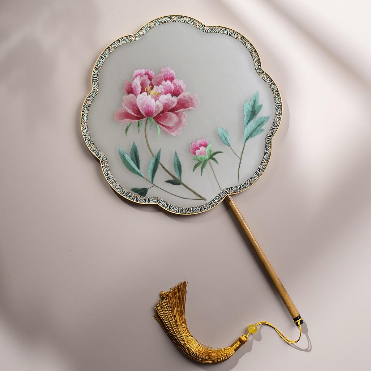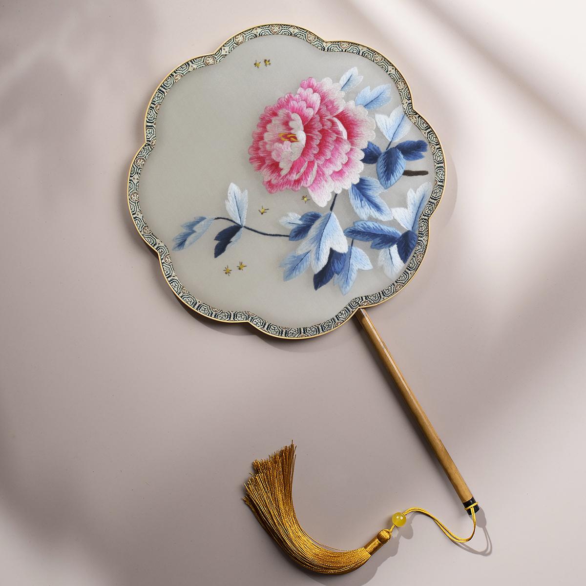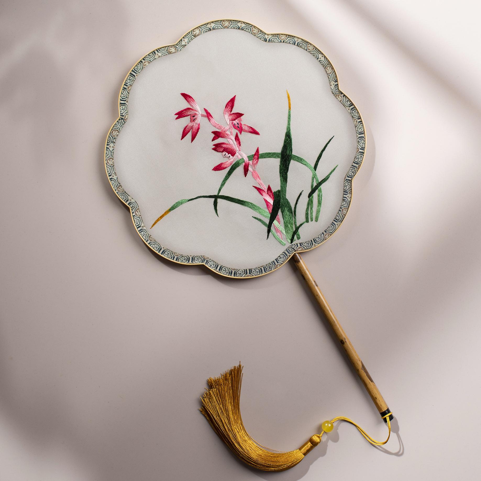 Abanico Estilo Antiguo Femenino Bordado Su Bordado de Doble Cara Estilo Chino Brocado de Nubes Artesanías Especiales Abanicos de Grupo Regalos para Extranjeros
