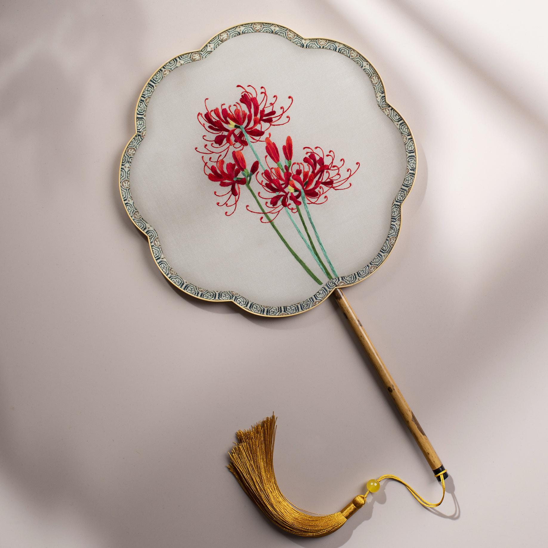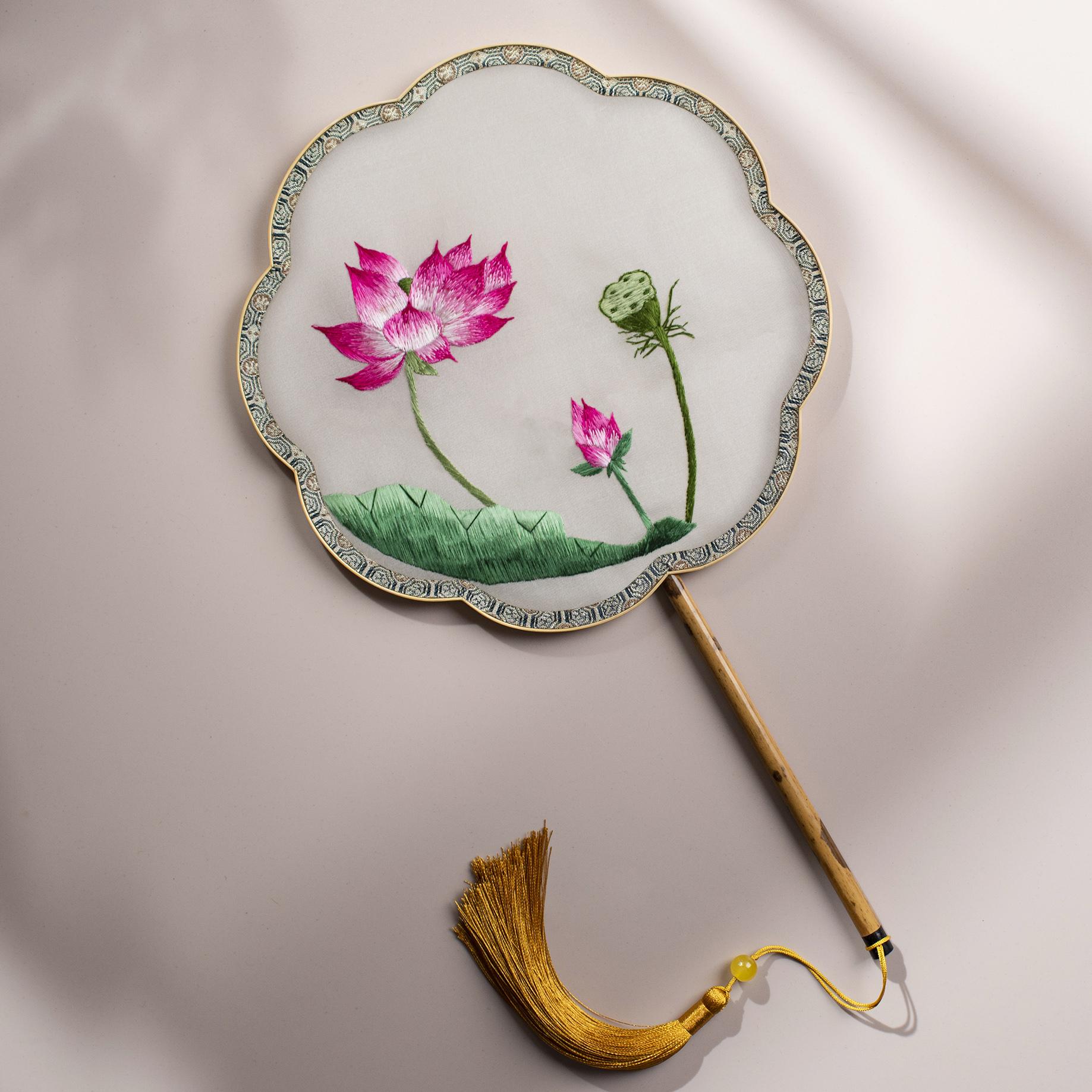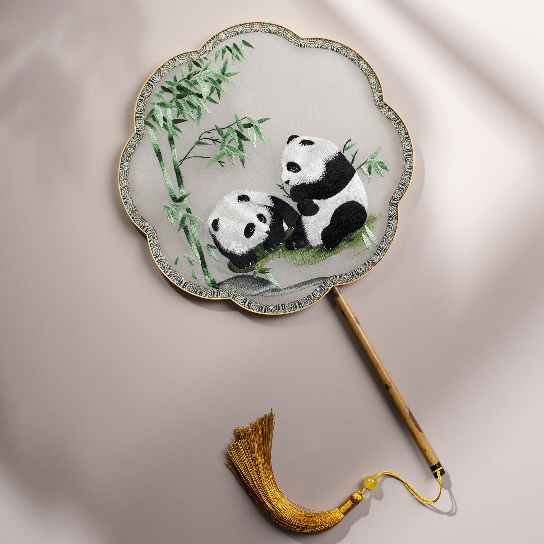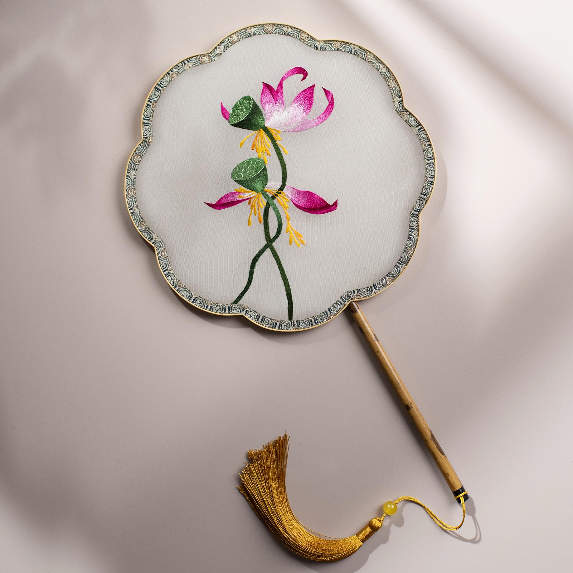 Abanico Estilo Antiguo Femenino Bordado Su Bordado de Doble Cara Estilo Chino Brocado de Nubes Artesanías Especiales Abanicos de Grupo Regalos para Extranjeros