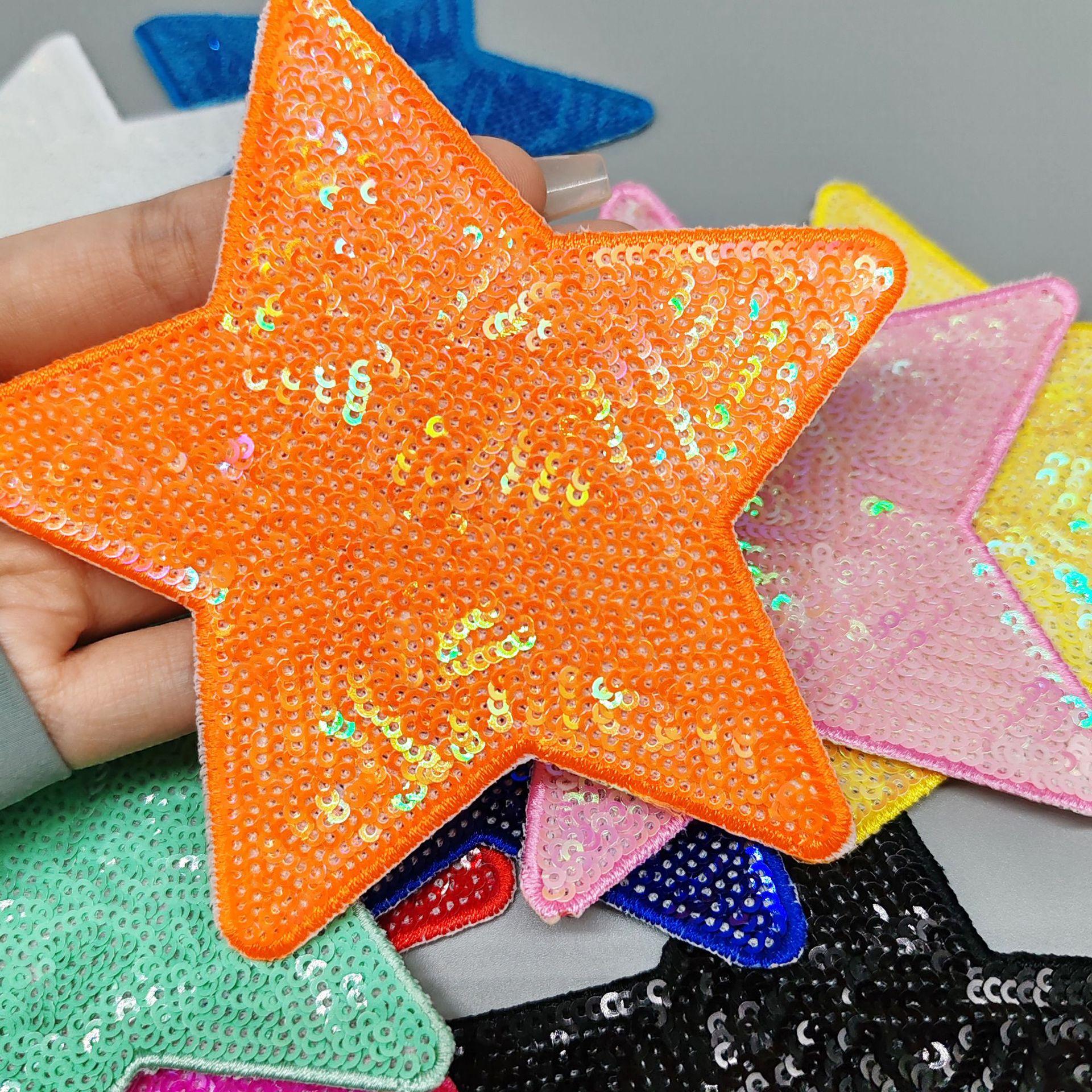 10 lentejuelas de colores con patrón de estrella y pegatinas de tela adhesivas bordadas, accesorios, parche creativo, bricolaje, ropa, bolso, sombrero