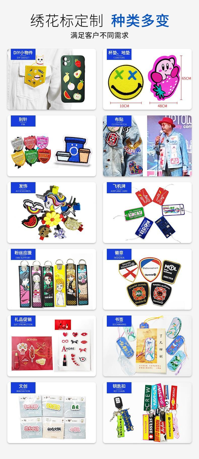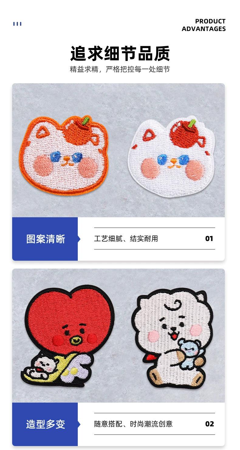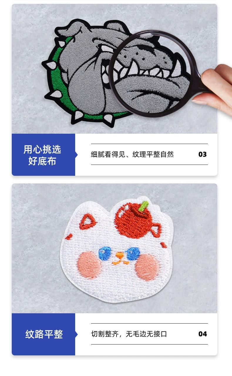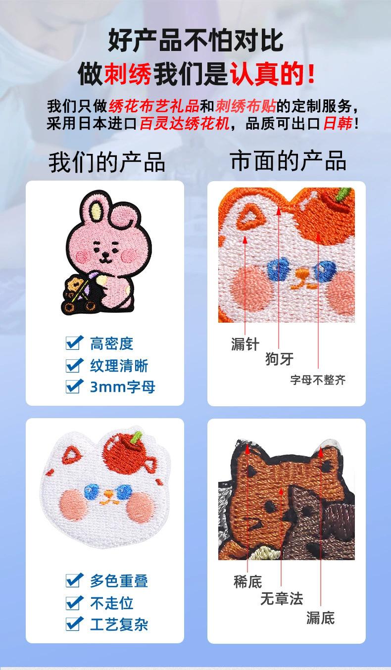 Insignia bordada de hojalata personalizada de fábrica, animación, bordado plano bidimensional, bordado, insignia redonda tipo pin
