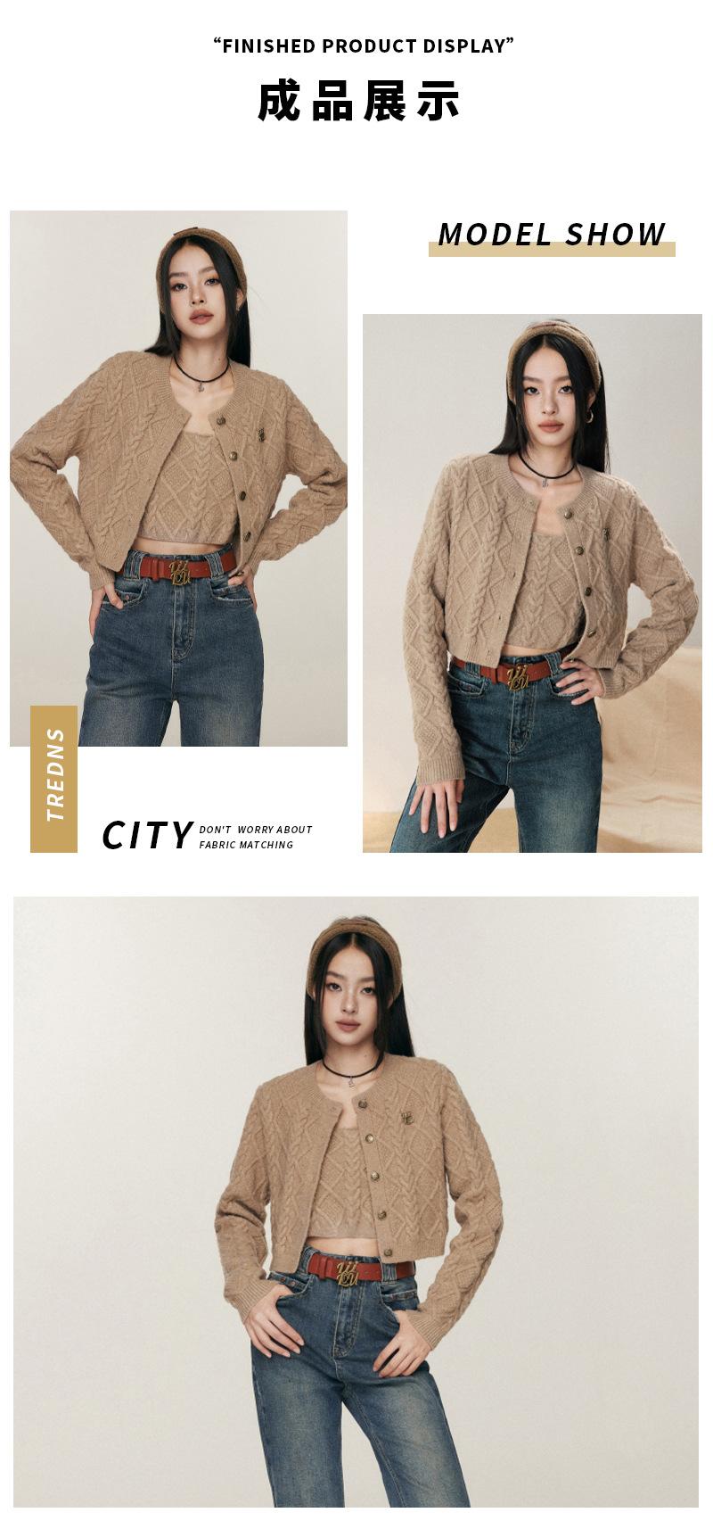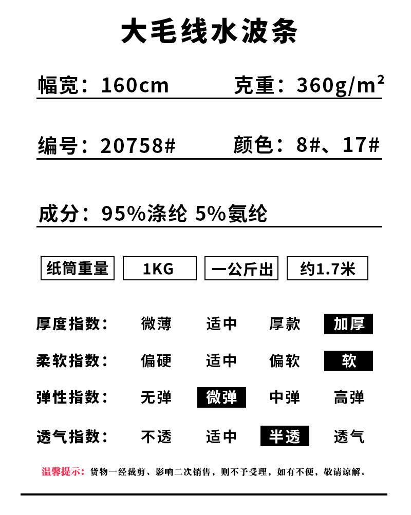 Tejido de poliéster con textura de aguja gruesa de 360 g con ondas de agua de lana grande para suéter de punto de mujer, chaqueta superior