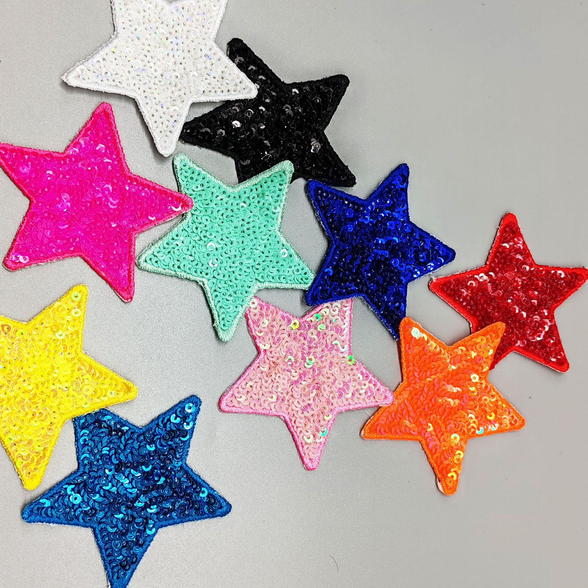 Diez estrellas de colores con lentejuelas de colores más accesorios de bordado adhesivos de tela, parches creativos DIY para ropa, bolsos y sombreros.