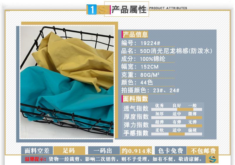 Tejido cortavientos de nailon impermeable, 50 D, tacto algodón y nailon mate, ligero, para chaqueta de plumas y protección solar, disponible en stock.