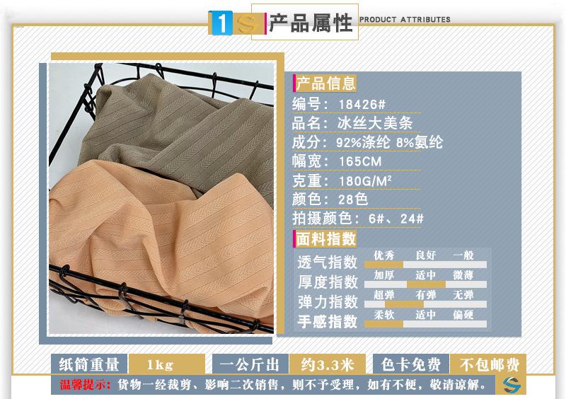 Tejido de cárdigan con protección solar, muy elástico y fresco, de seda de hielo con rayas americanas grandes y textura a rayas, para mujer. Venta al por mayor.