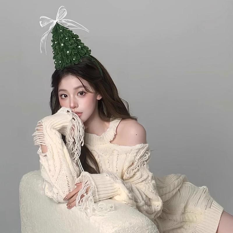 Tocado navideño diadema de árbol de Navidad palo retorcido DIY accesorios para el cabello navideños para mujer decoración de vestido festivo regalo diadema