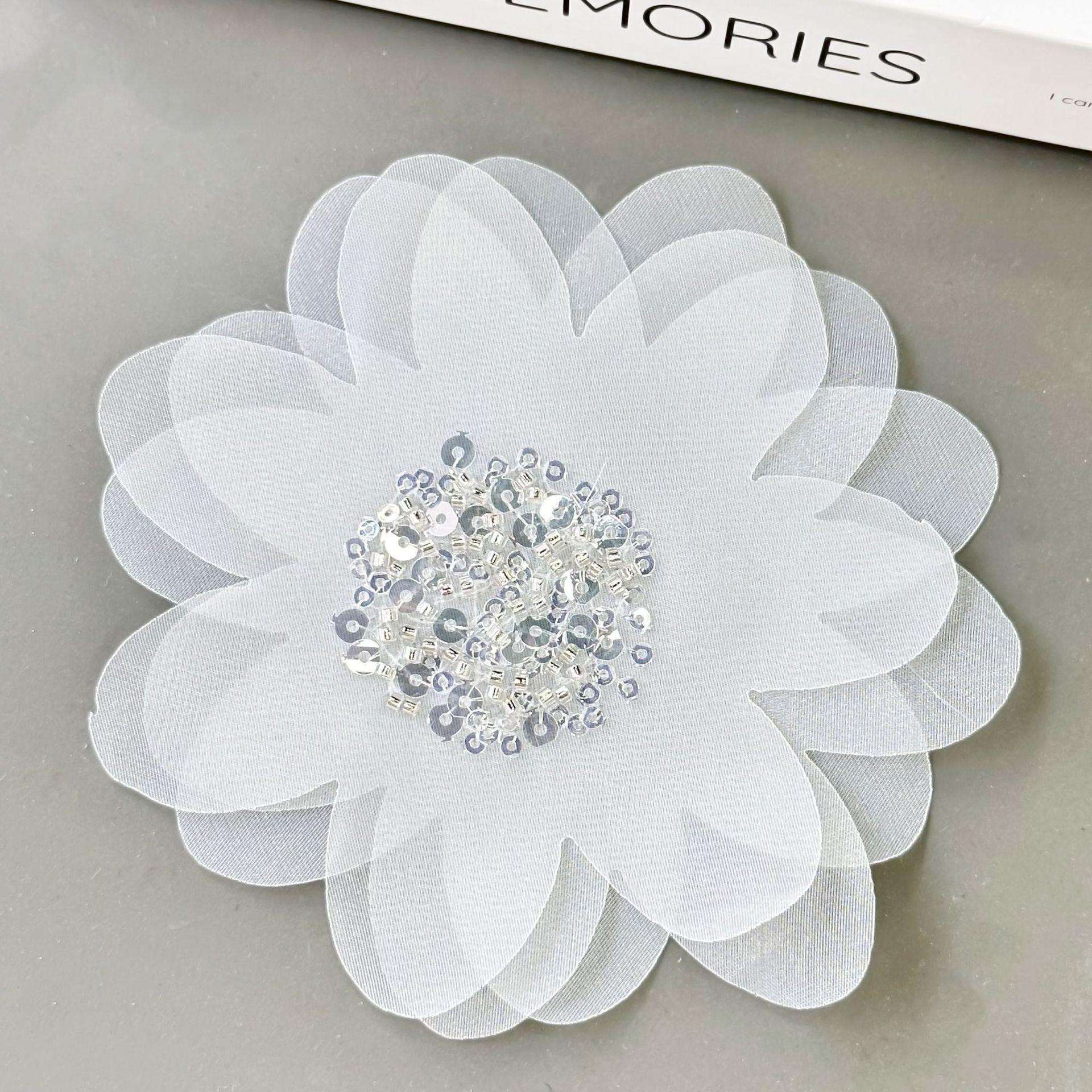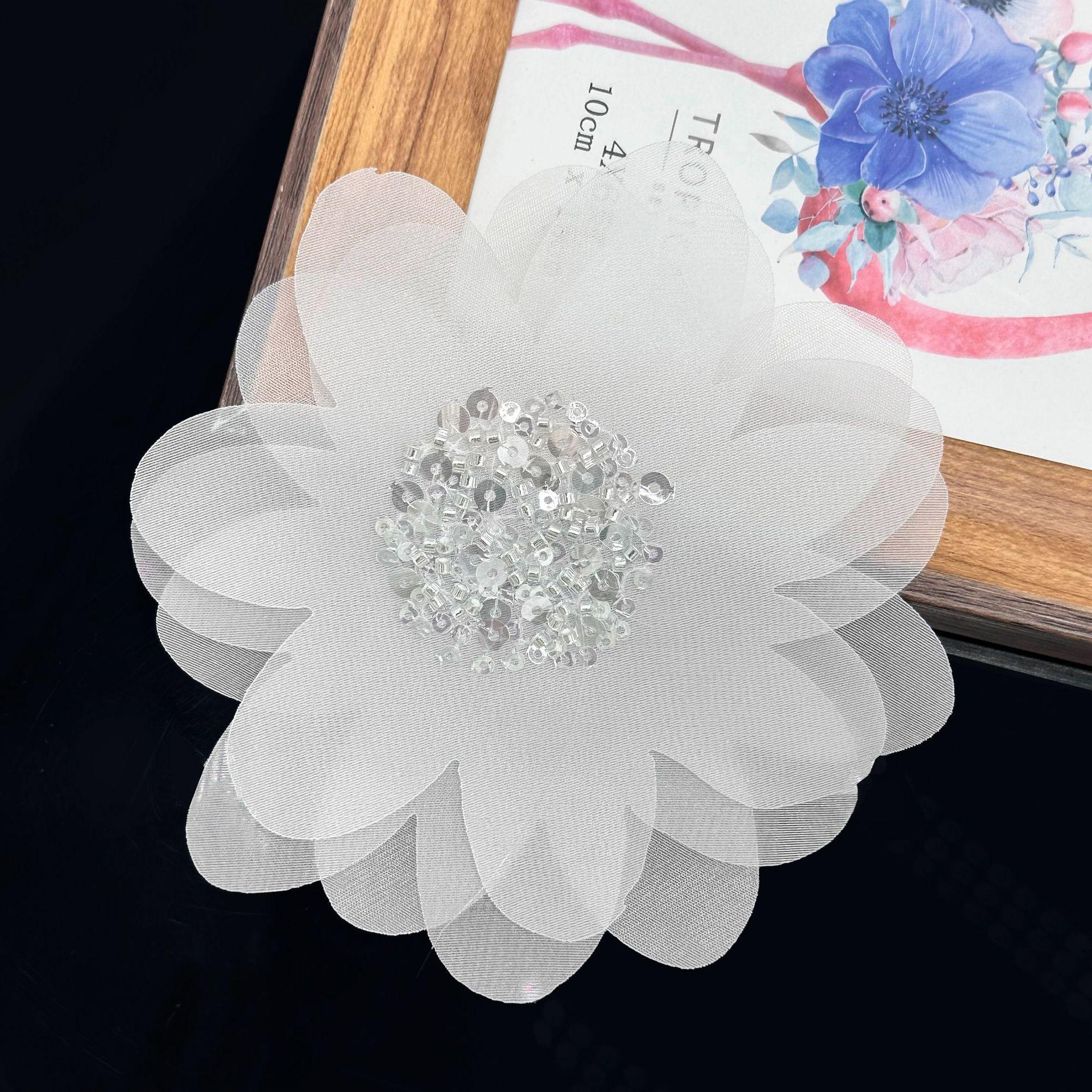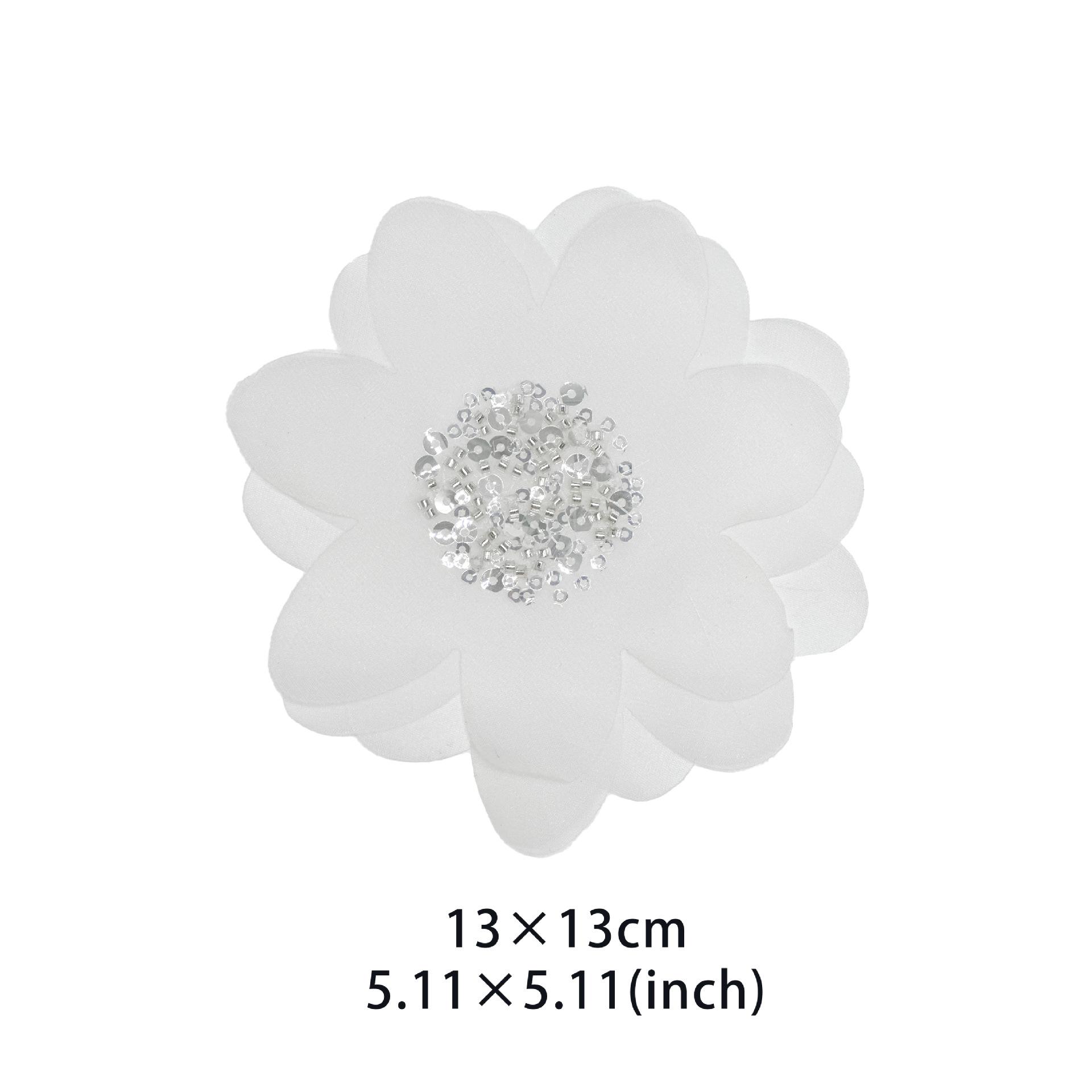 Pegatinas de tela con flores y lentejuelas multicapa en blanco puro, decorativas para ropa infantil, zapatos, sombreros, bolsos, horquillas, accesorios para el cuello.