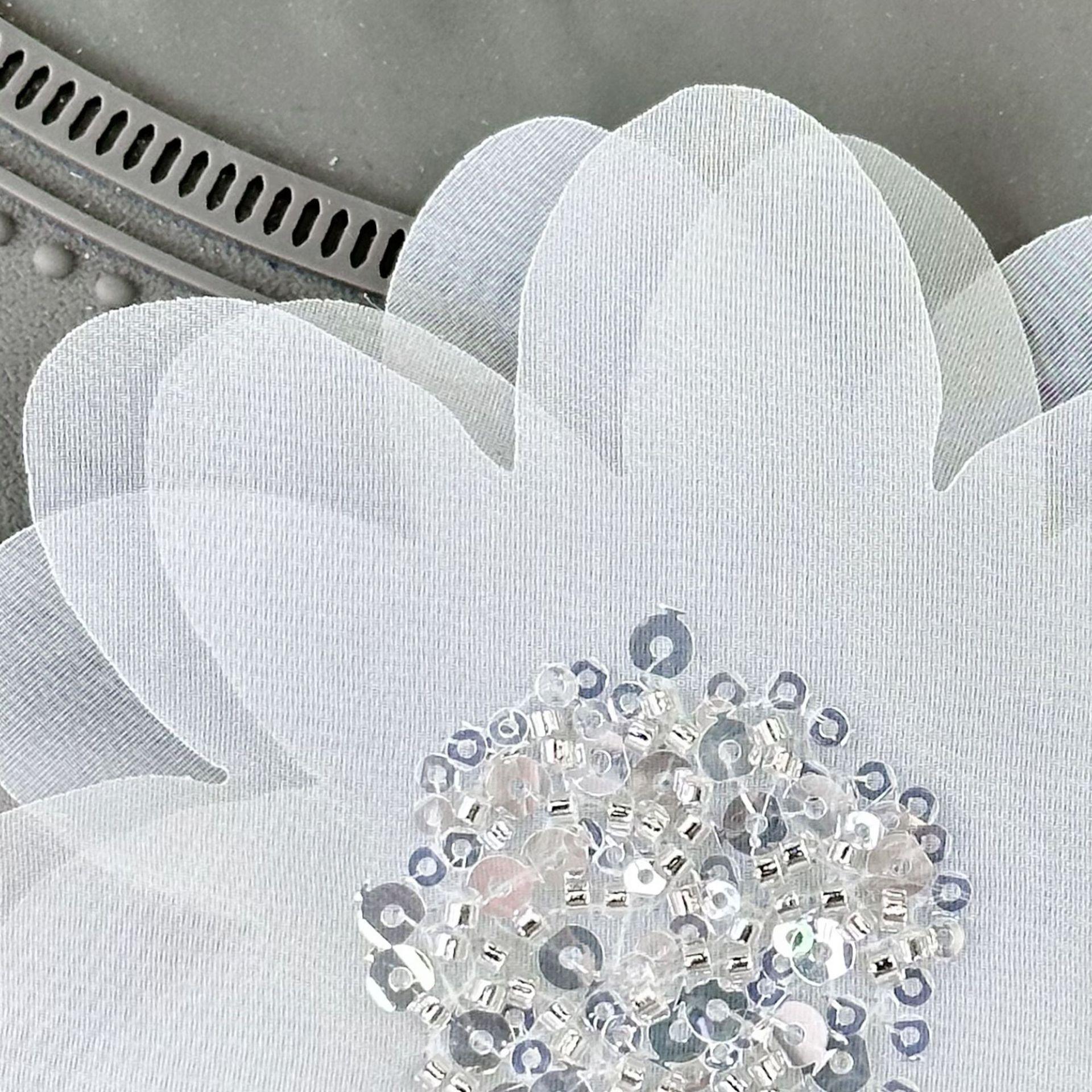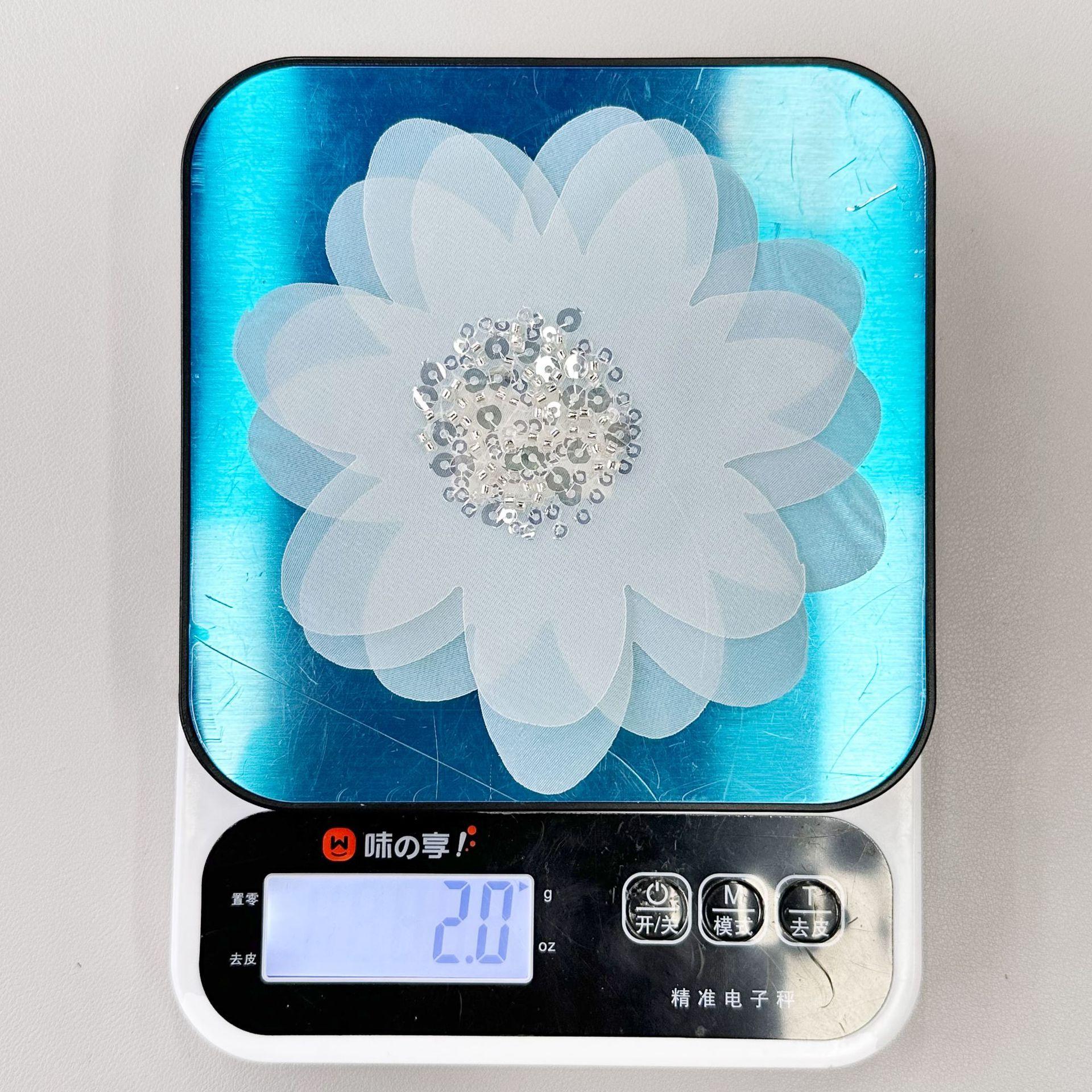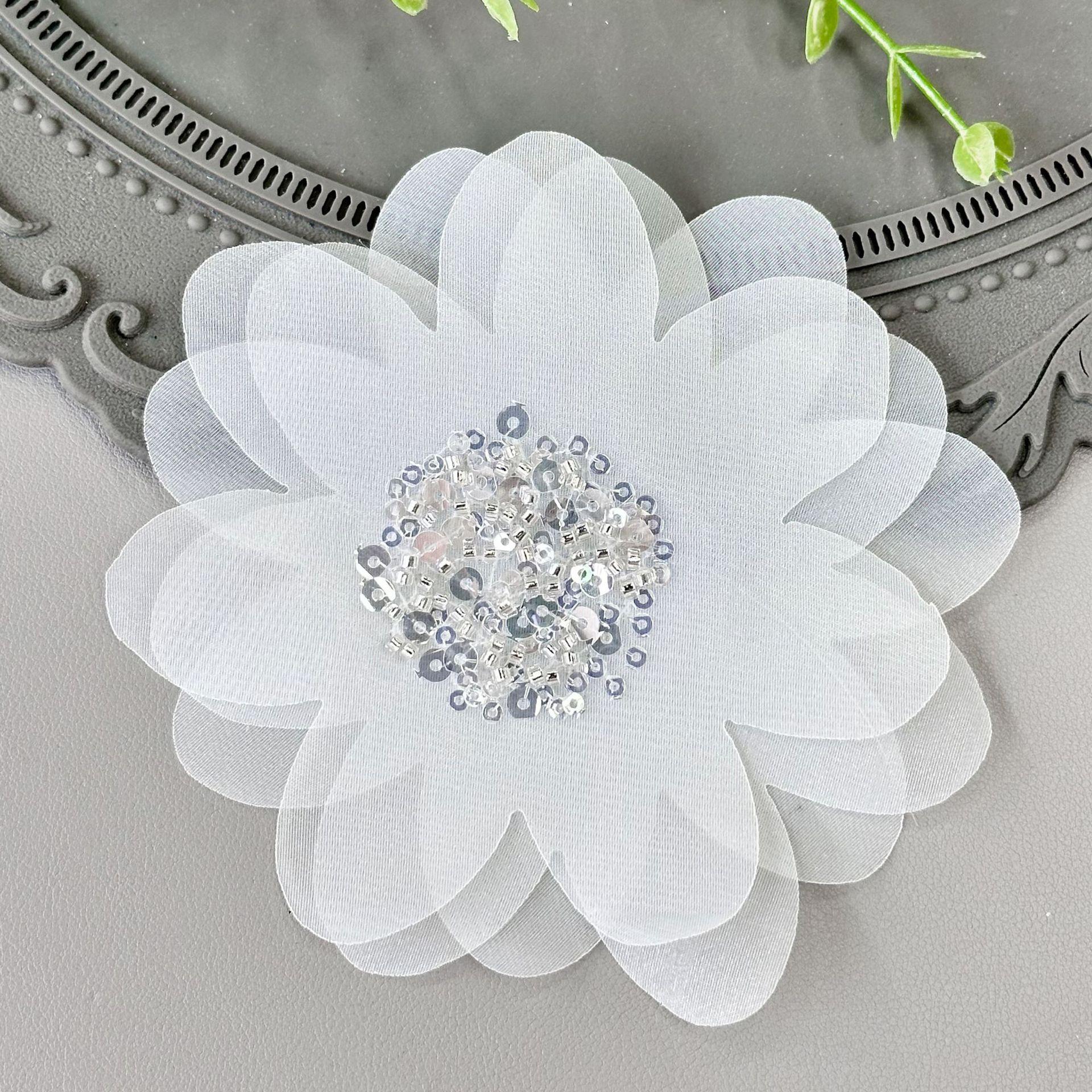 Pegatinas de tela con flores y lentejuelas multicapa en blanco puro, decorativas para ropa infantil, zapatos, sombreros, bolsos, horquillas, accesorios para el cuello.