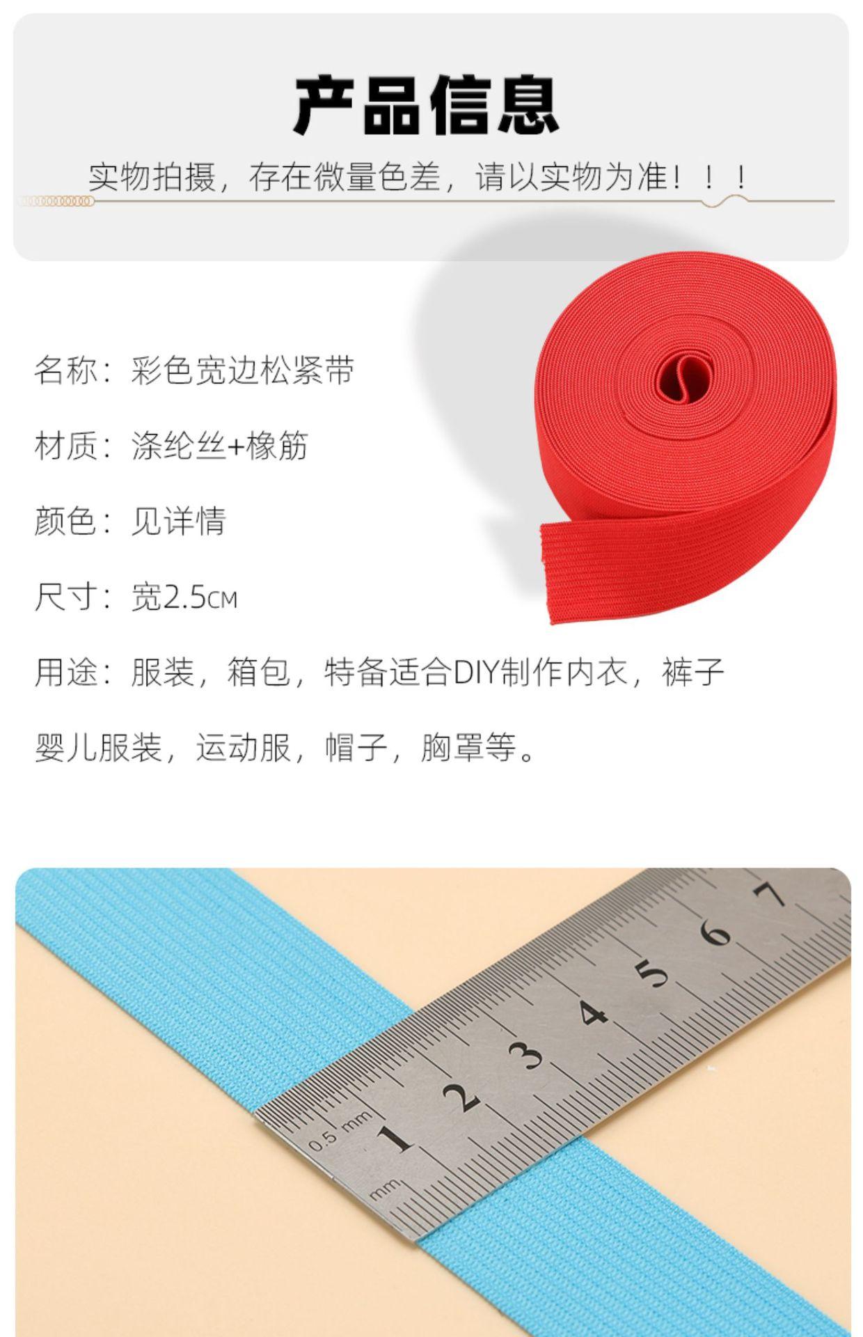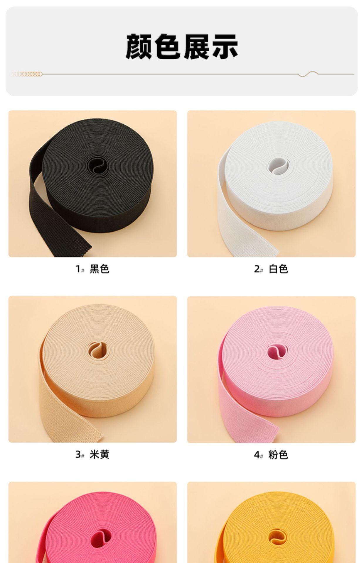 Banda elástica de color de alta elasticidad 2.5cm de ancho cintura de pantalones banda de goma duradera cuerda elástica gruesa plana negra
