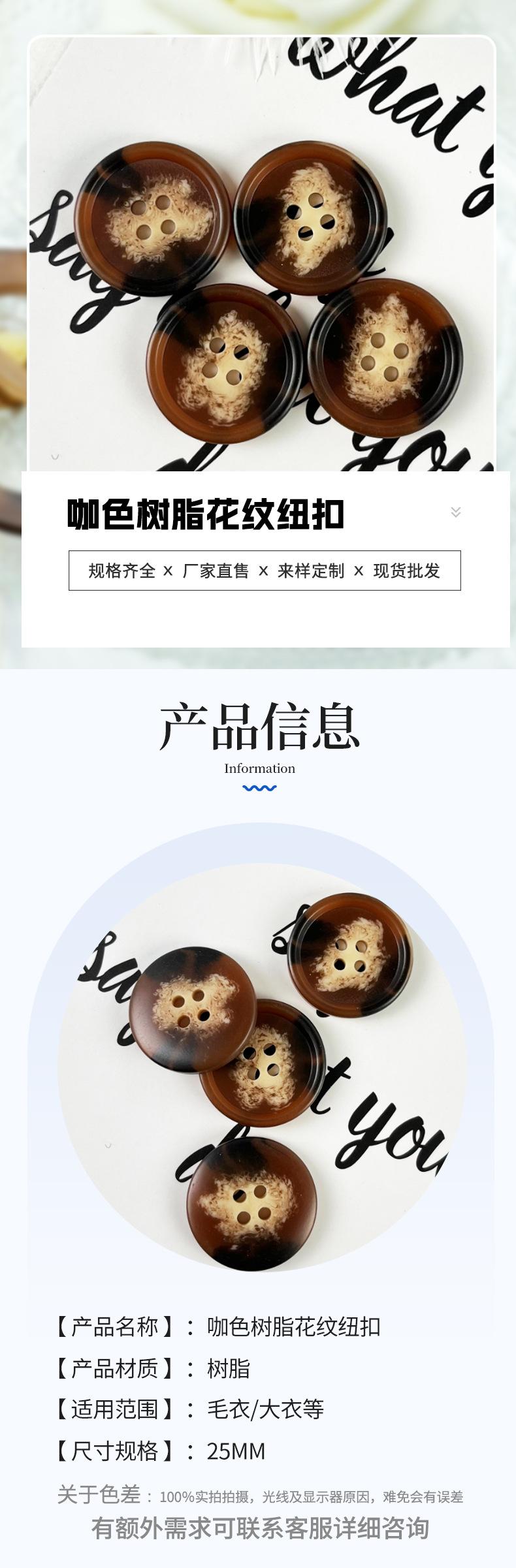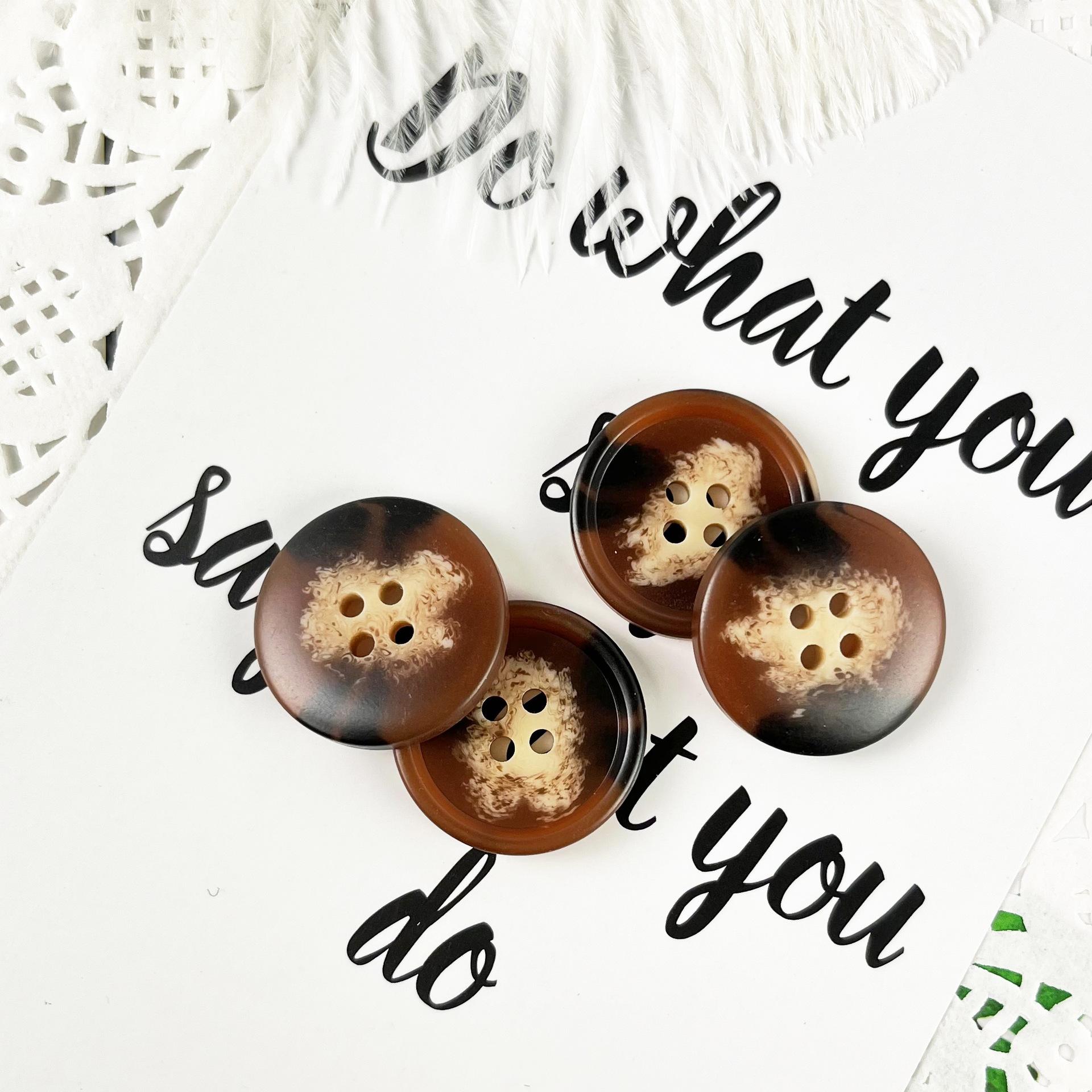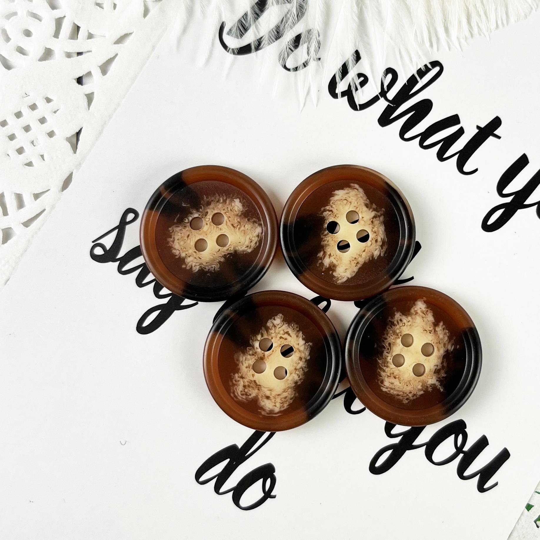 Botón de resina marrón con patrón para traje, abrigo, moda, venta al por mayor