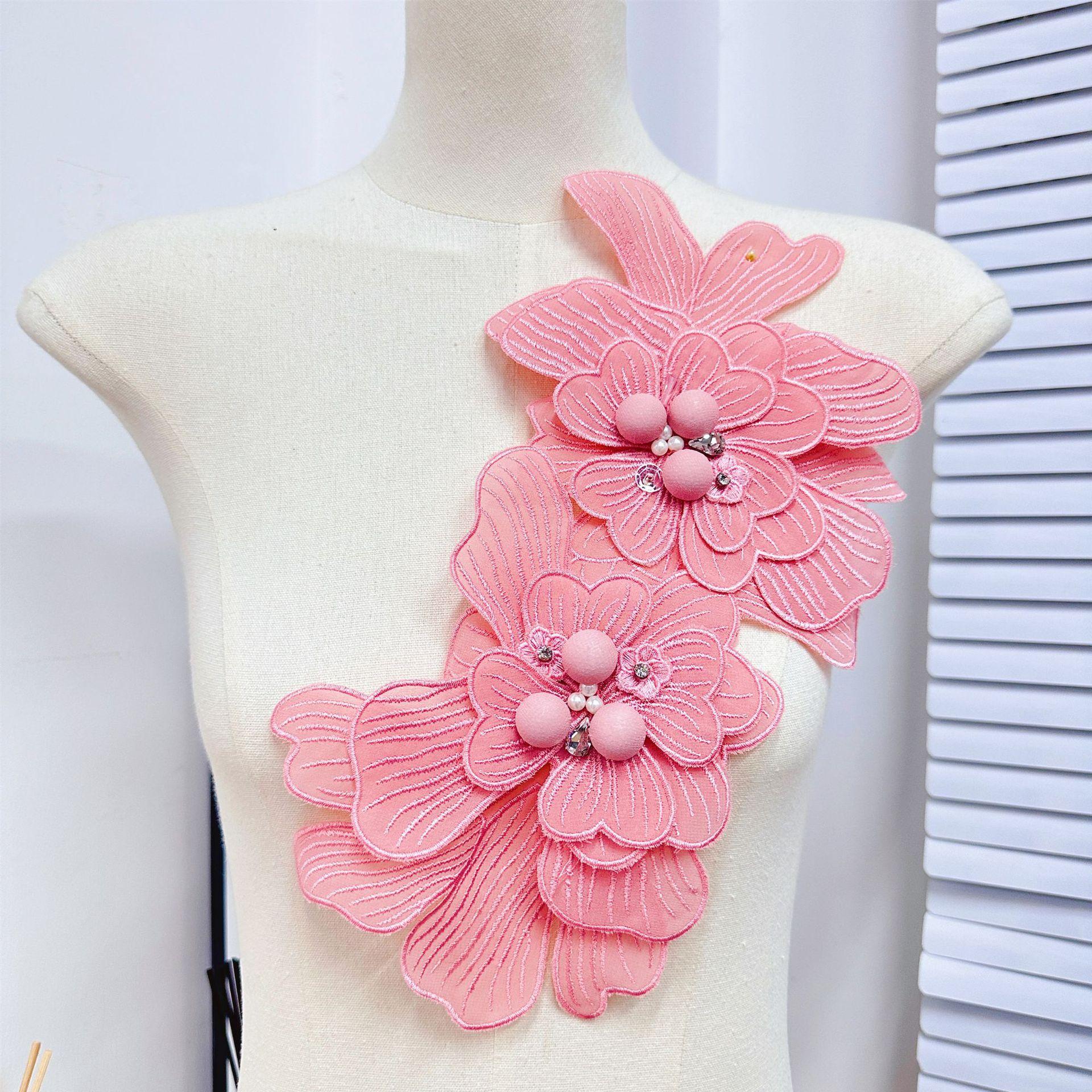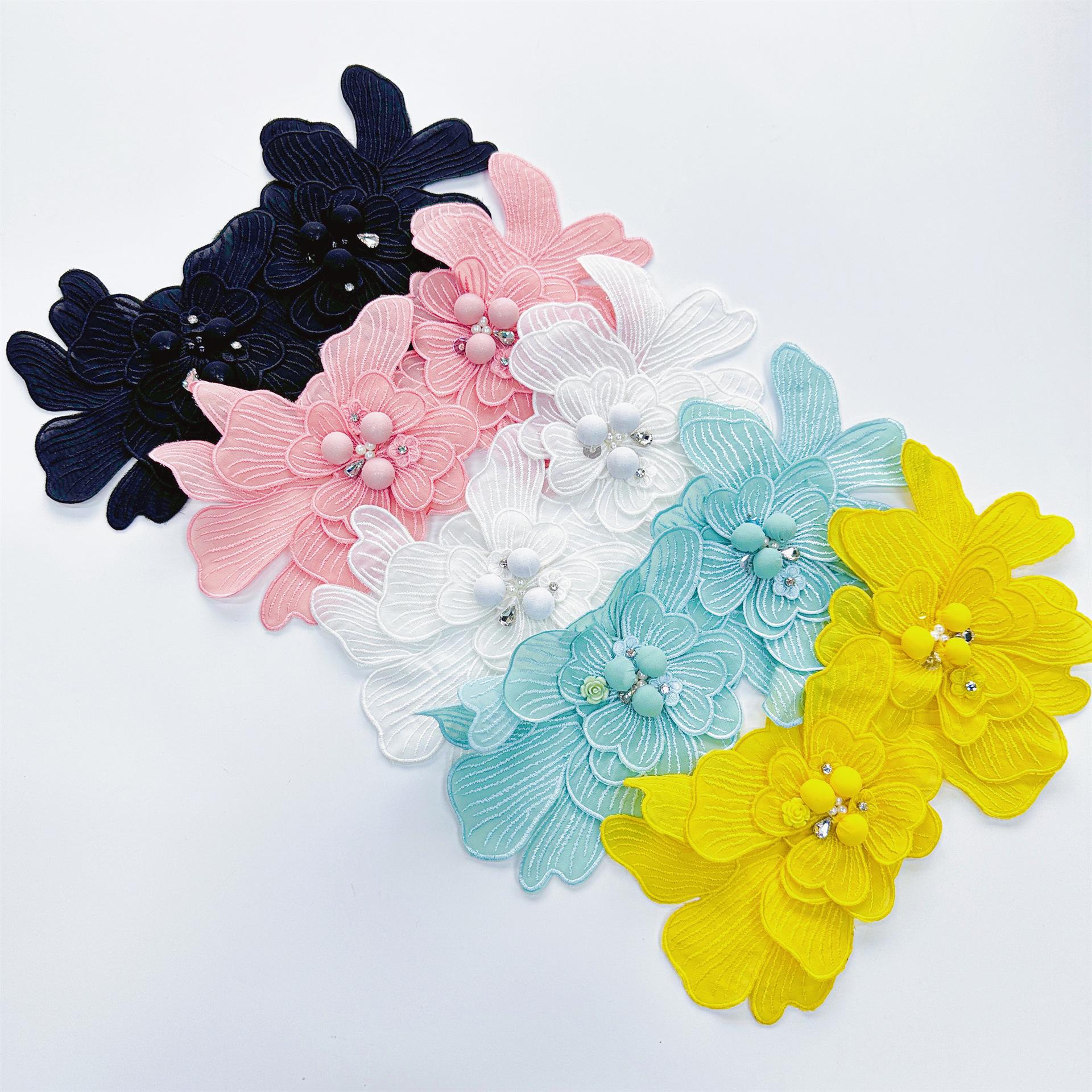 Broche de Flor de Tela de Venta Caliente Transfronterizo, Pin de Corsage, Bordado con Cuentas, Aplique de Ropa, Vestido, Vestido de Novia, Falda, Accesorios DIY