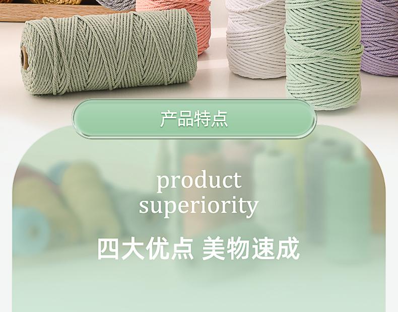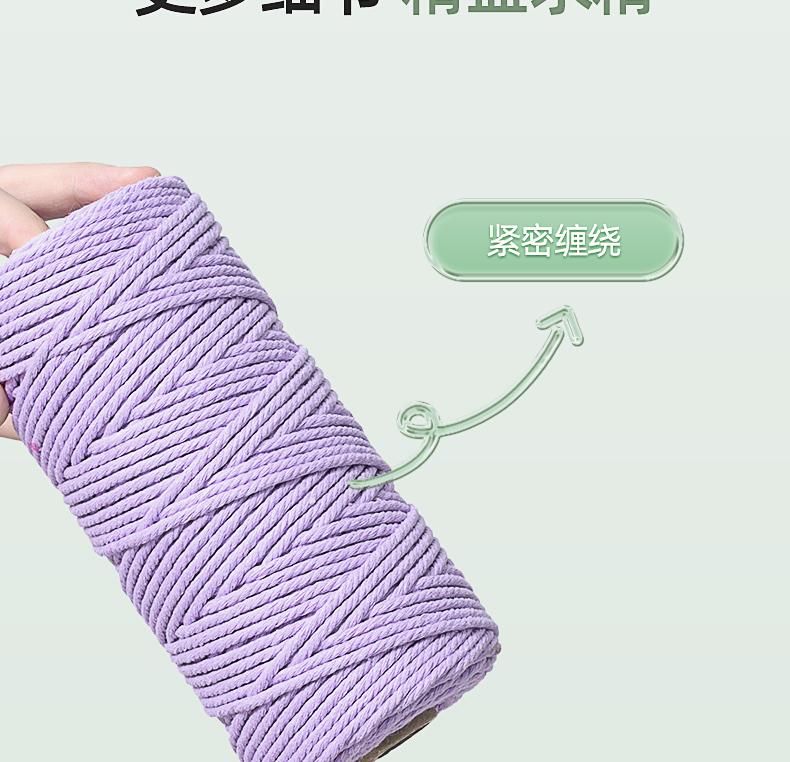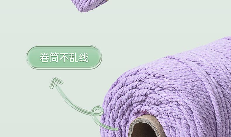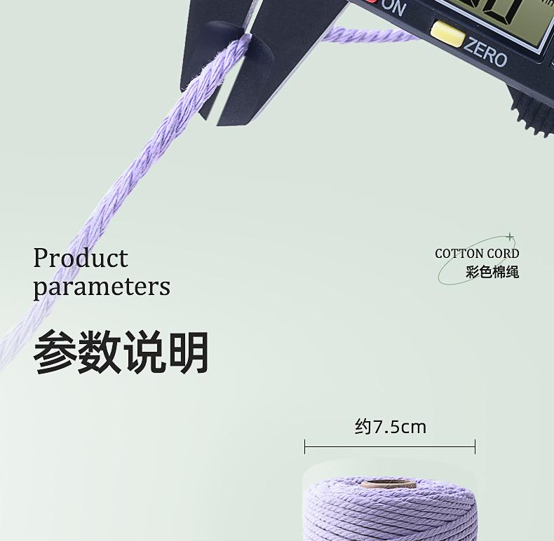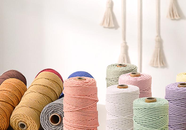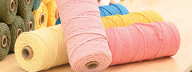 Cuerda de algodón colorida de 3 mm, hecha a mano, para tapiz, bricolaje, trenzada, gruesa, encuadernación suave con material de cuerda de algodón blanco.