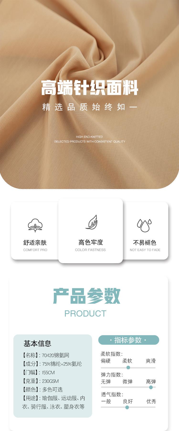 Tela de tejido de punto de malla de 75 % nailon y 25 % elastano de alta elasticidad para ropa de moda femenina, tela moldeadora.