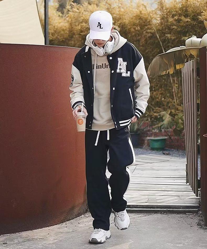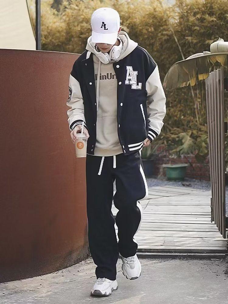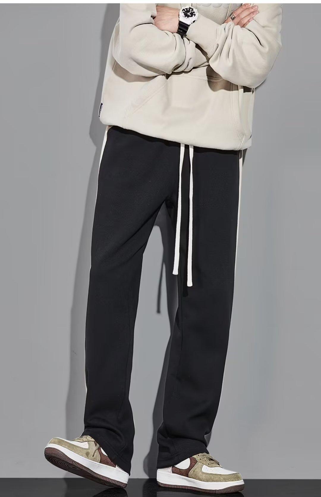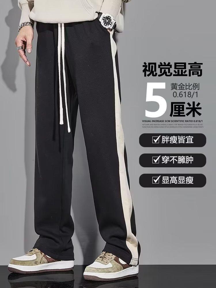 Pantalones deportivos drapeados versátiles de otoño e invierno para hombre y mujer, pesados, holgados, rectos, casuales, con patrón, gruesos, forrados con polar, deportivos, de pierna ancha