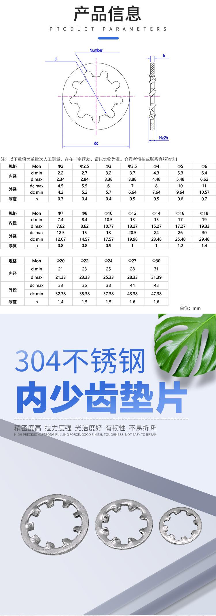 Acero inoxidable 304/316 DIN6797J arandela de bloqueo dentada interna GB861.1 arandela antideslizante M2-M30