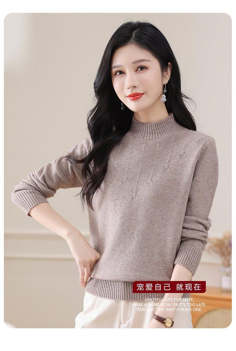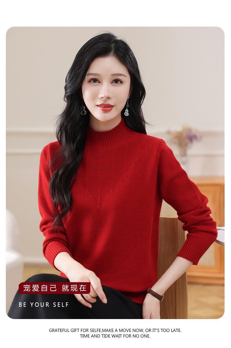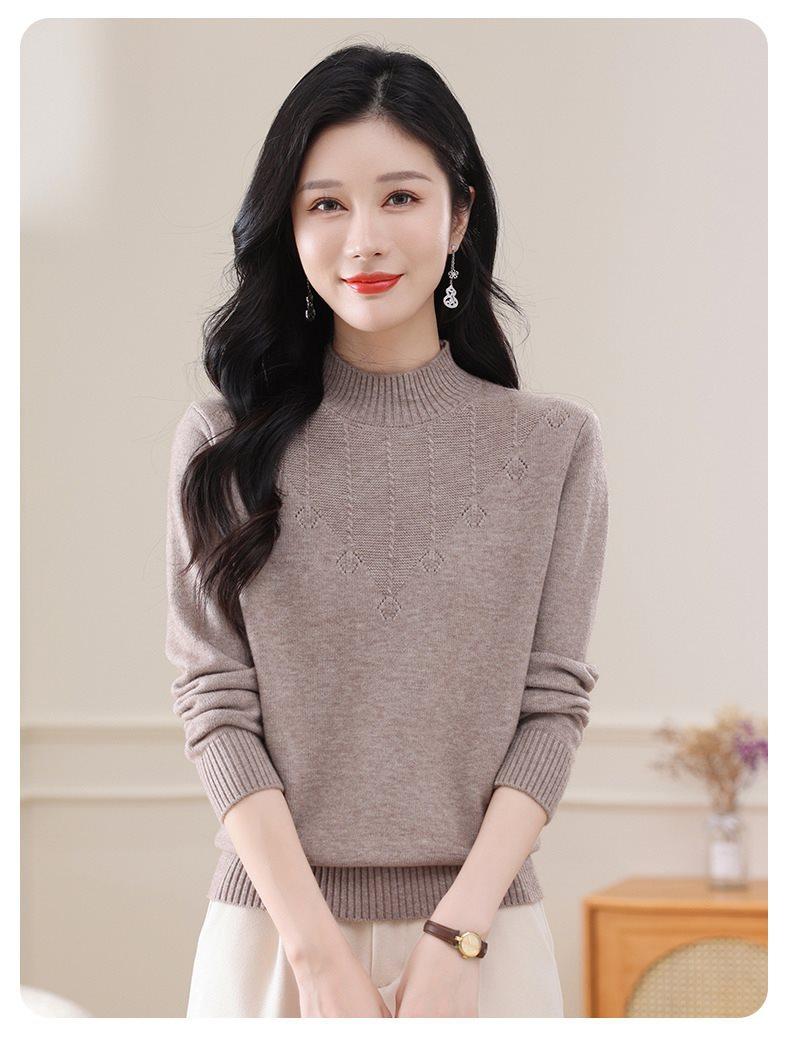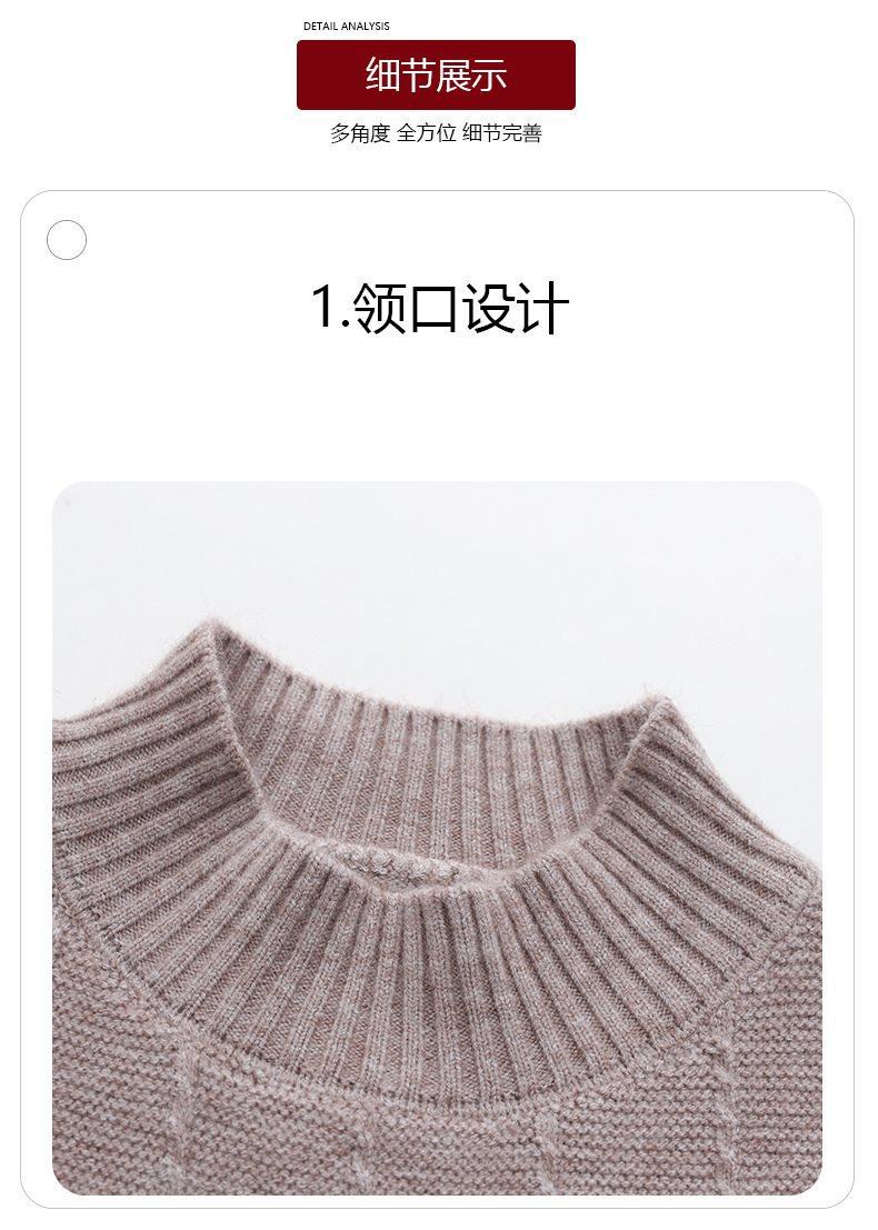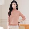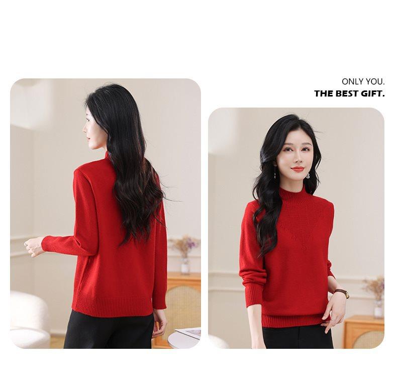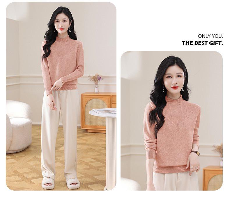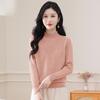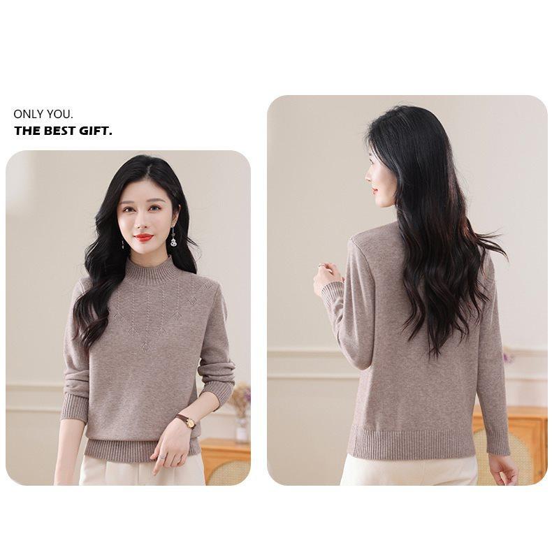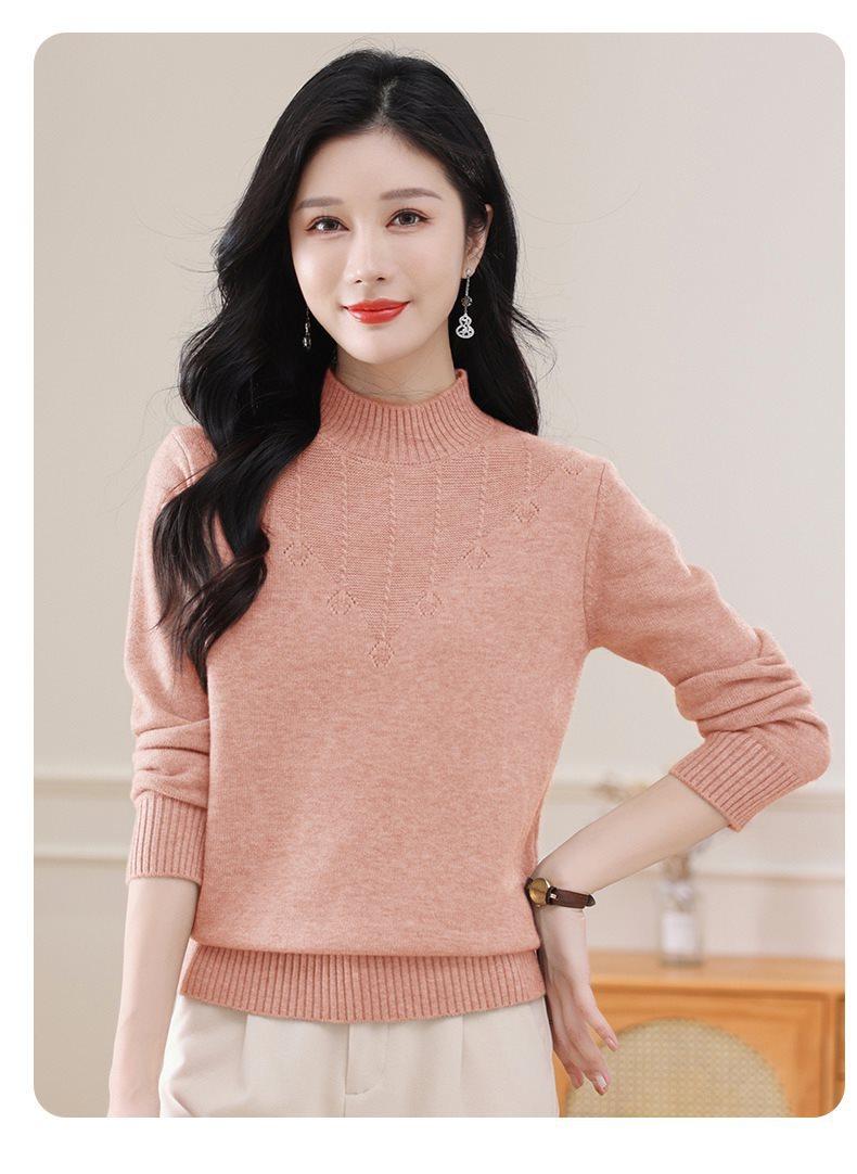 Suéter de punto grueso con cuello alto medio para mujer, otoño e invierno, novedad de 2024, suelto, adelgazante, color sólido, manga larga, parte superior básica