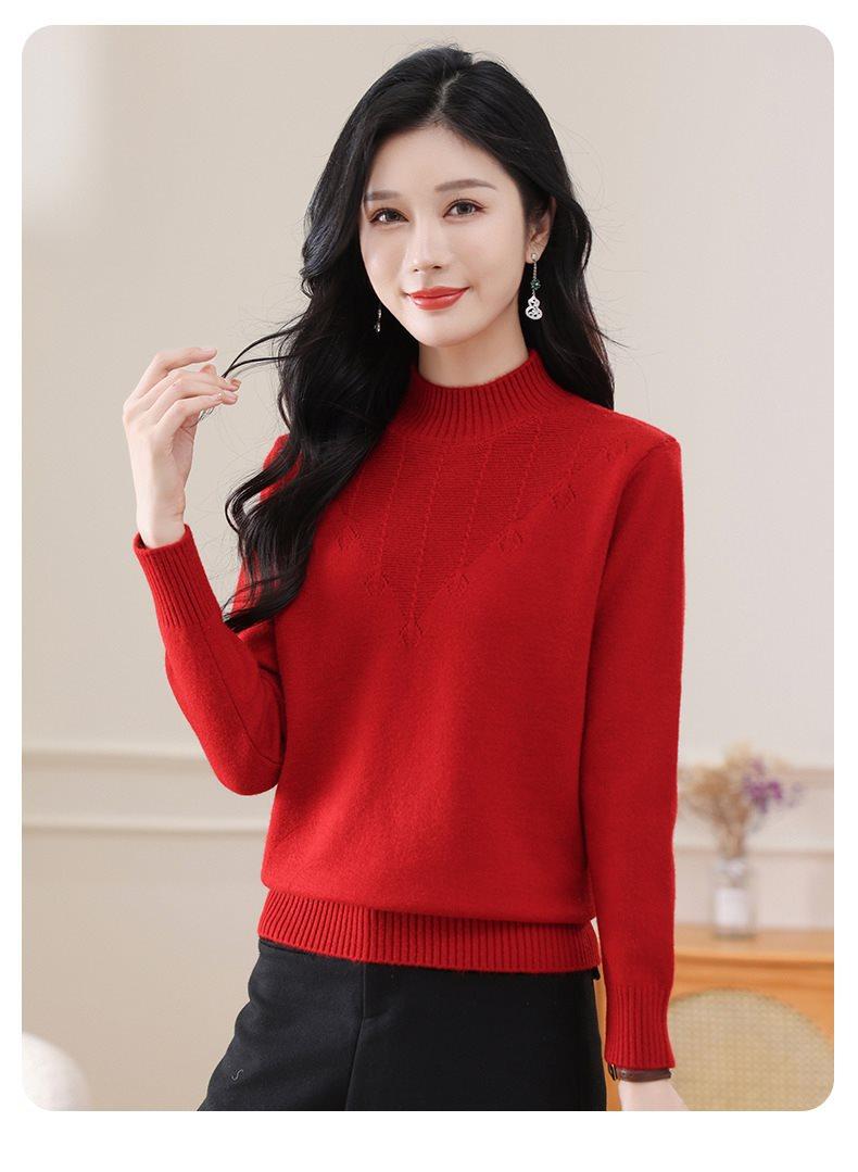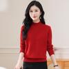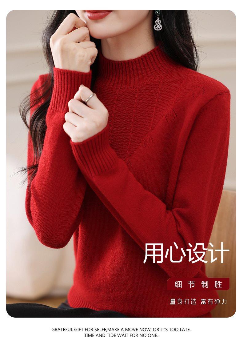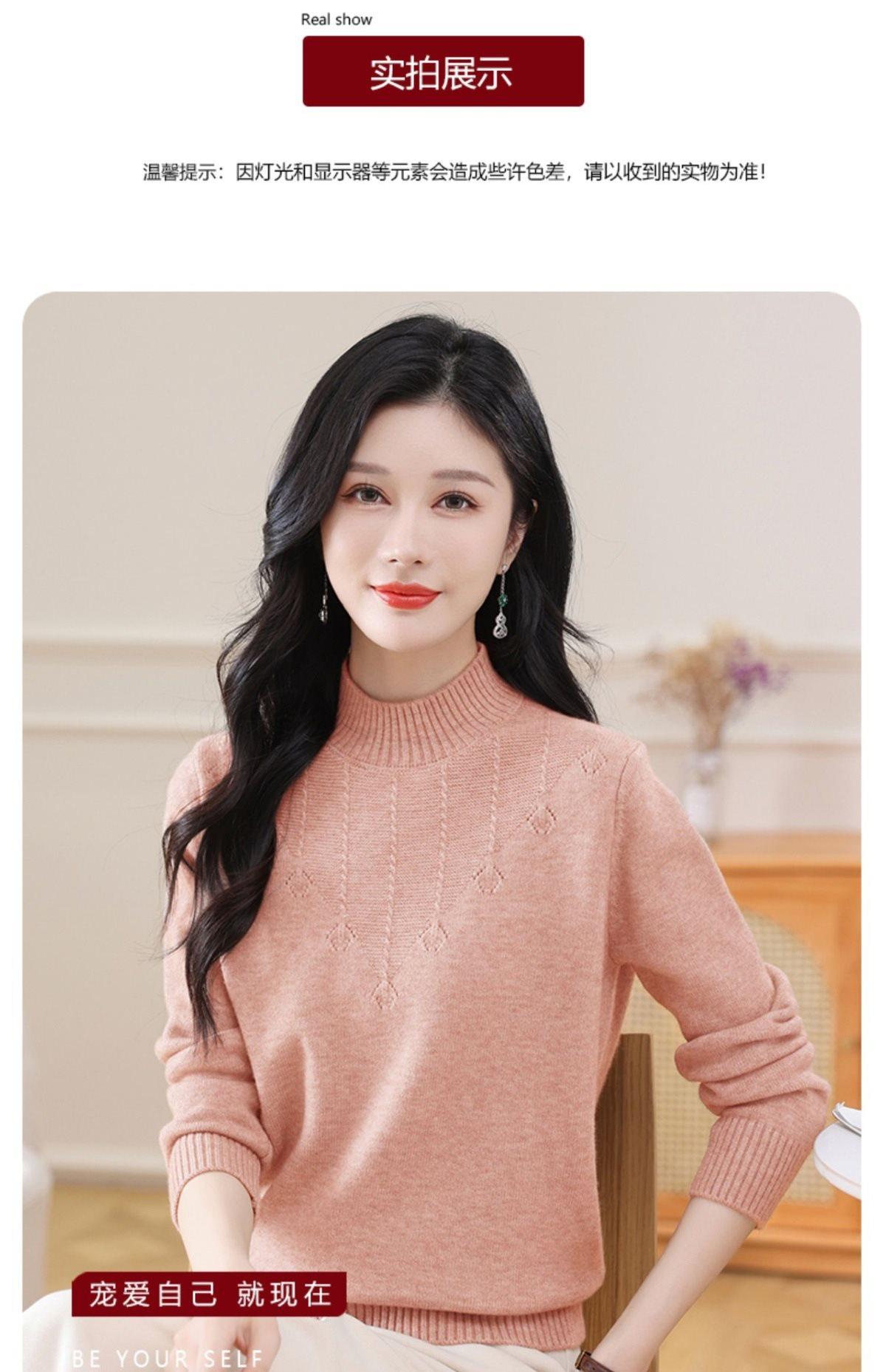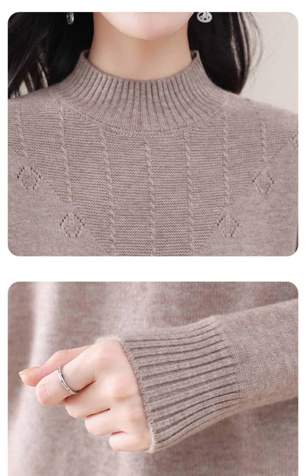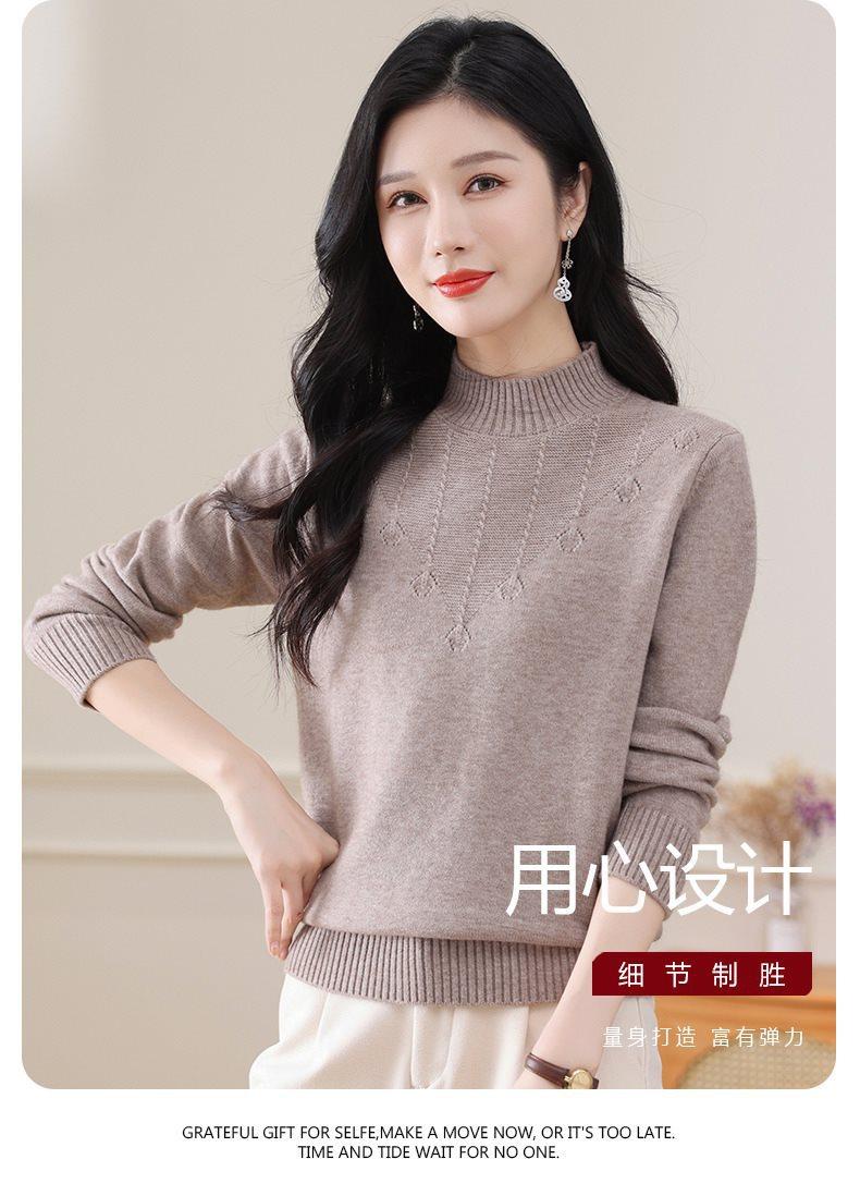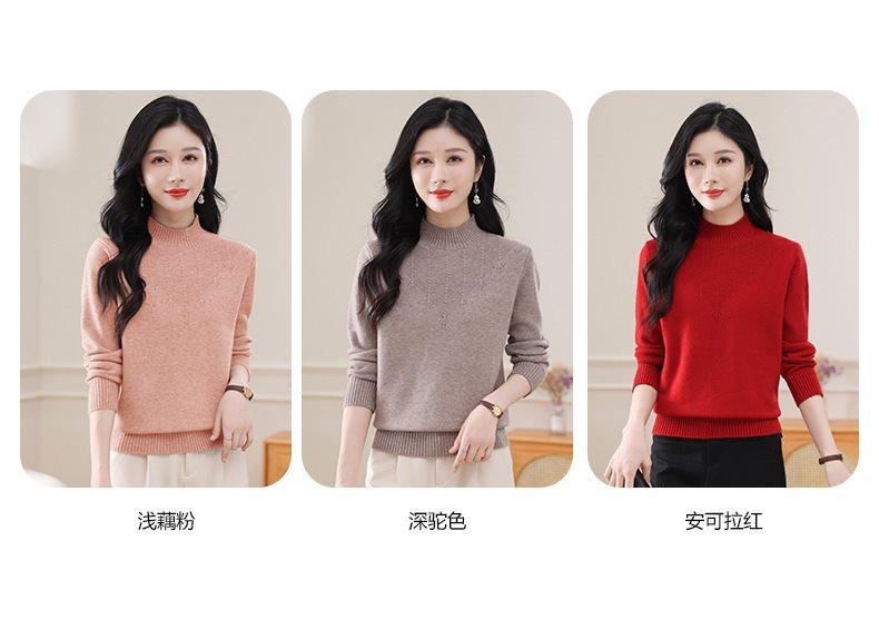 Suéter de punto grueso con cuello alto medio para mujer, otoño e invierno, novedad de 2024, suelto, adelgazante, color sólido, manga larga, parte superior básica