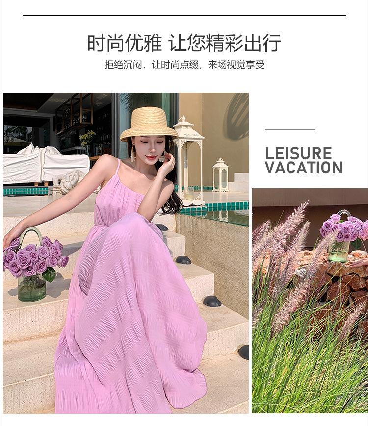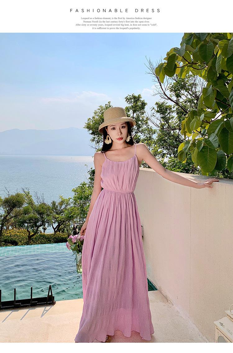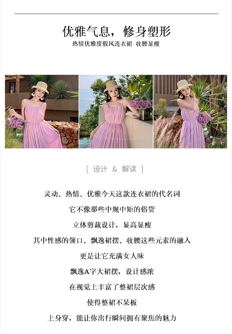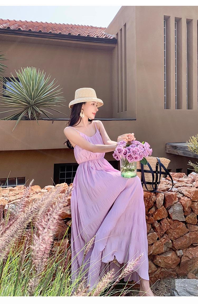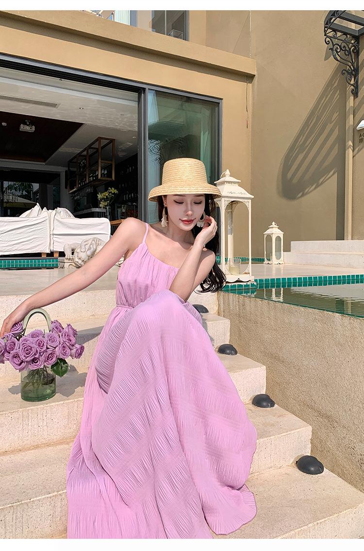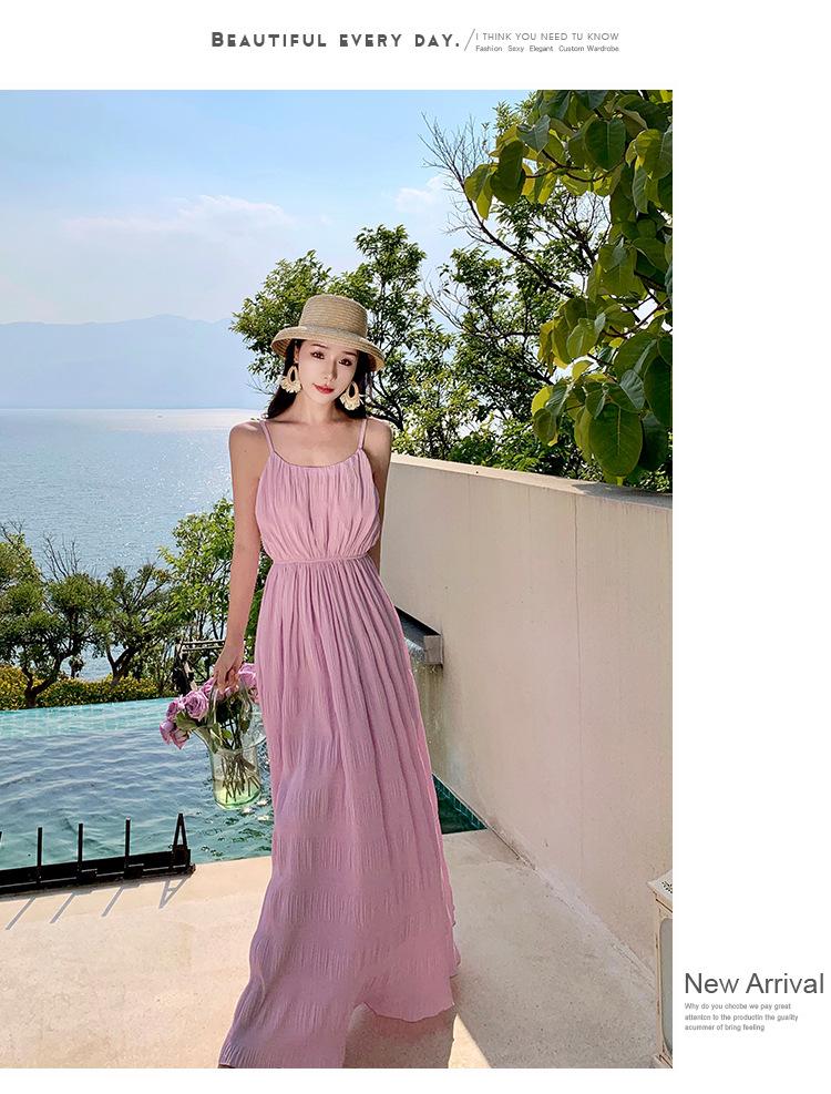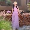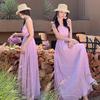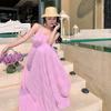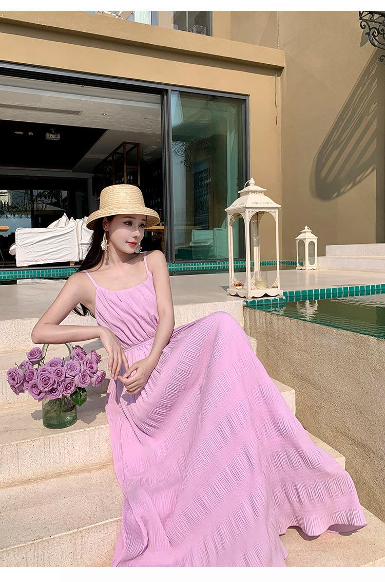 Vestido largo elegante estilo francés dulce para mujer, estilo playero, con plisado y foto de hada para vacaciones de verano.