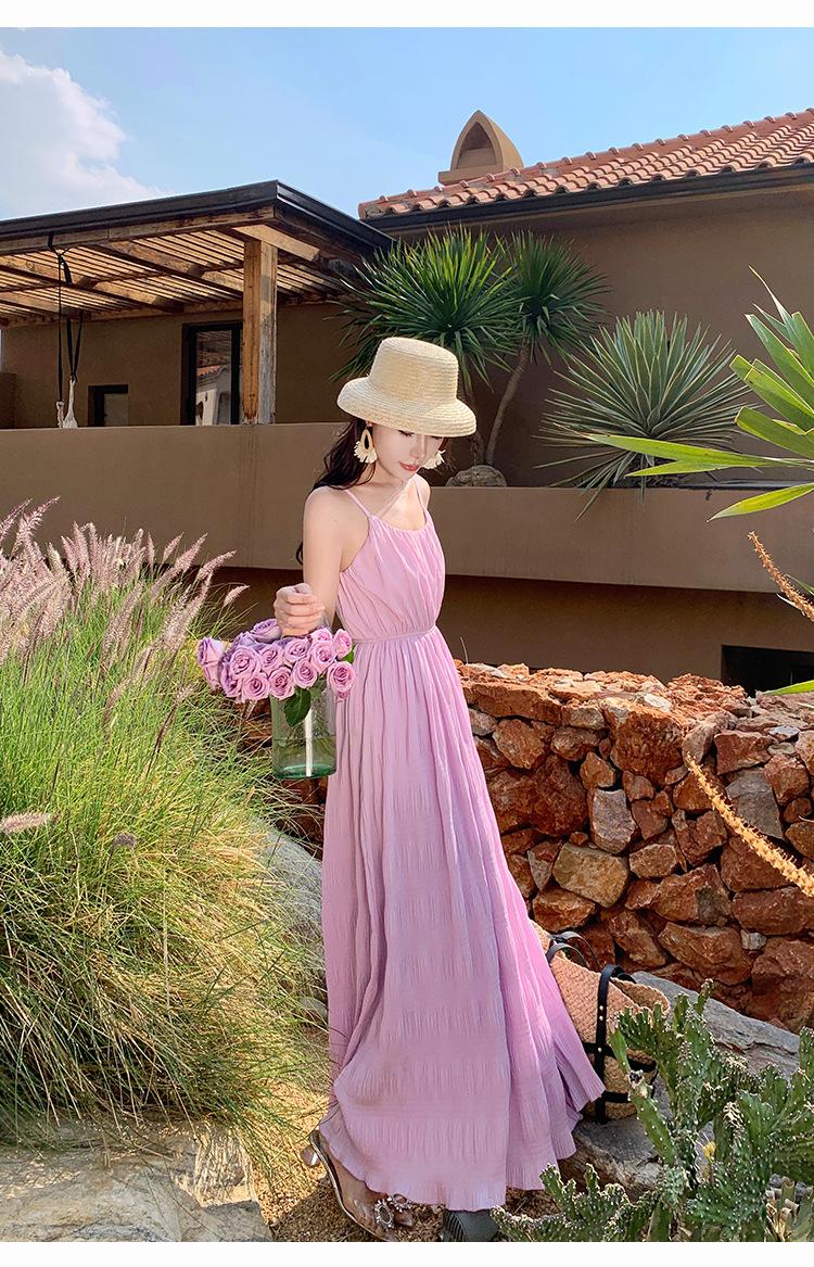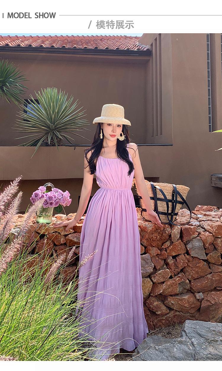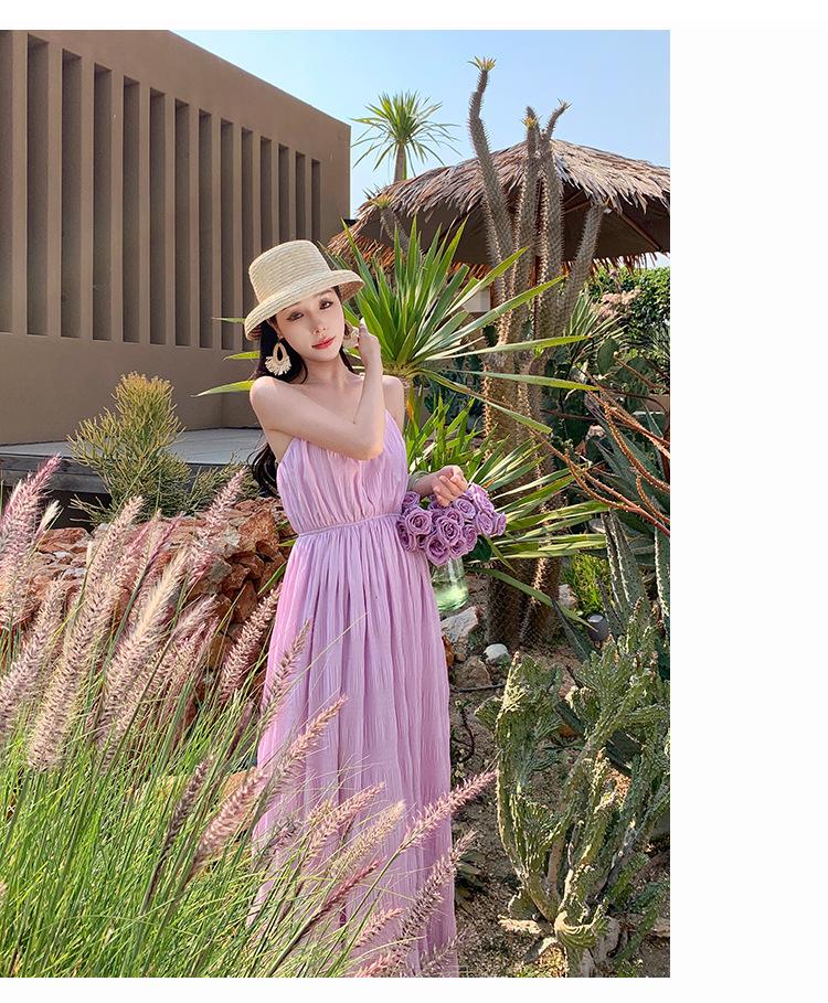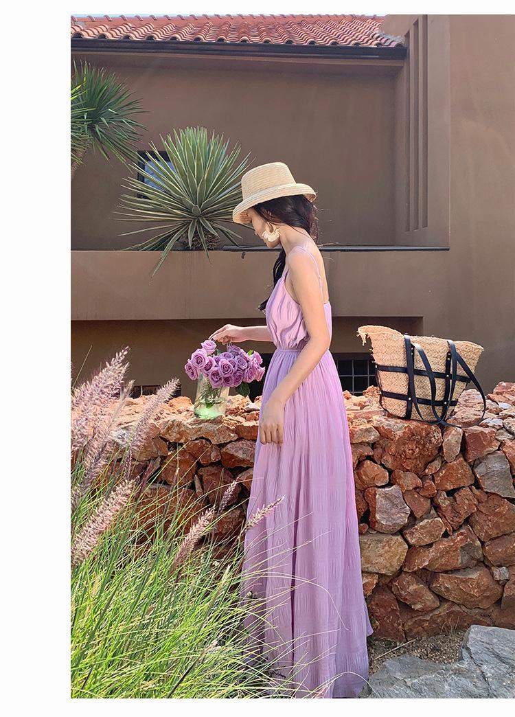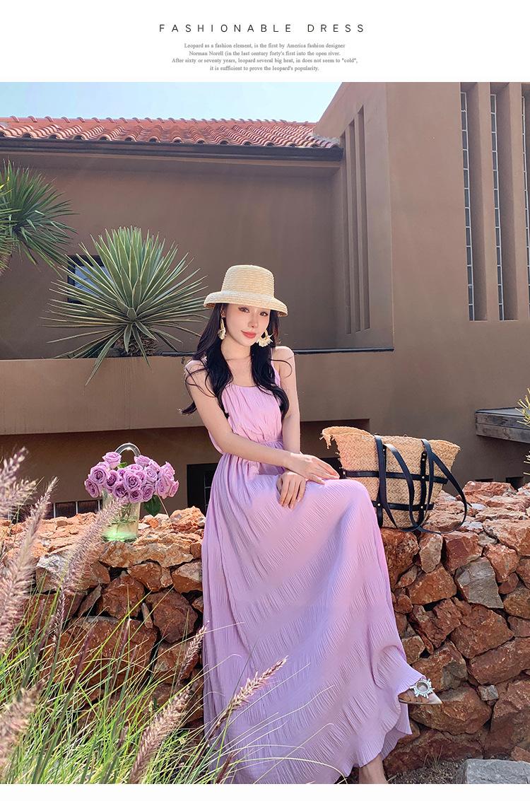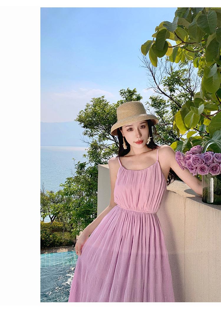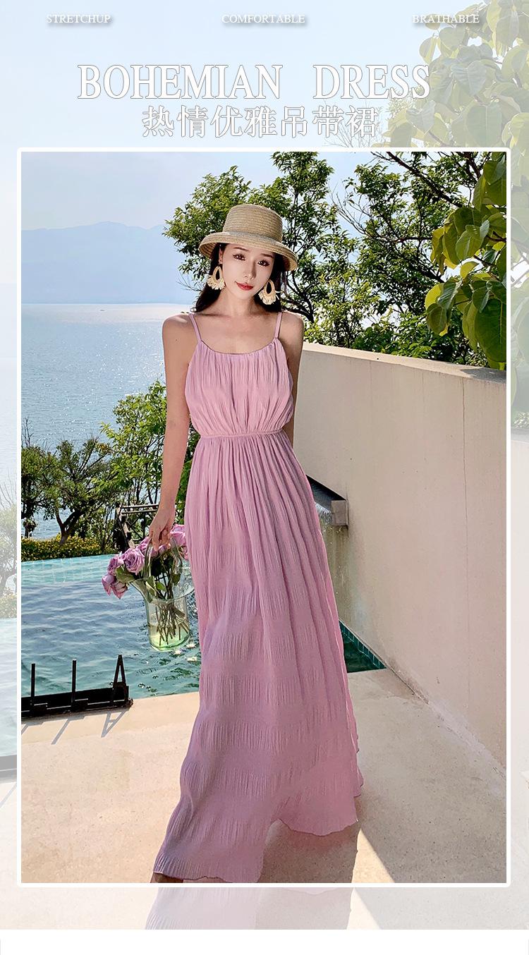 Vestido largo elegante estilo francés dulce para mujer, estilo playero, con plisado y foto de hada para vacaciones de verano.