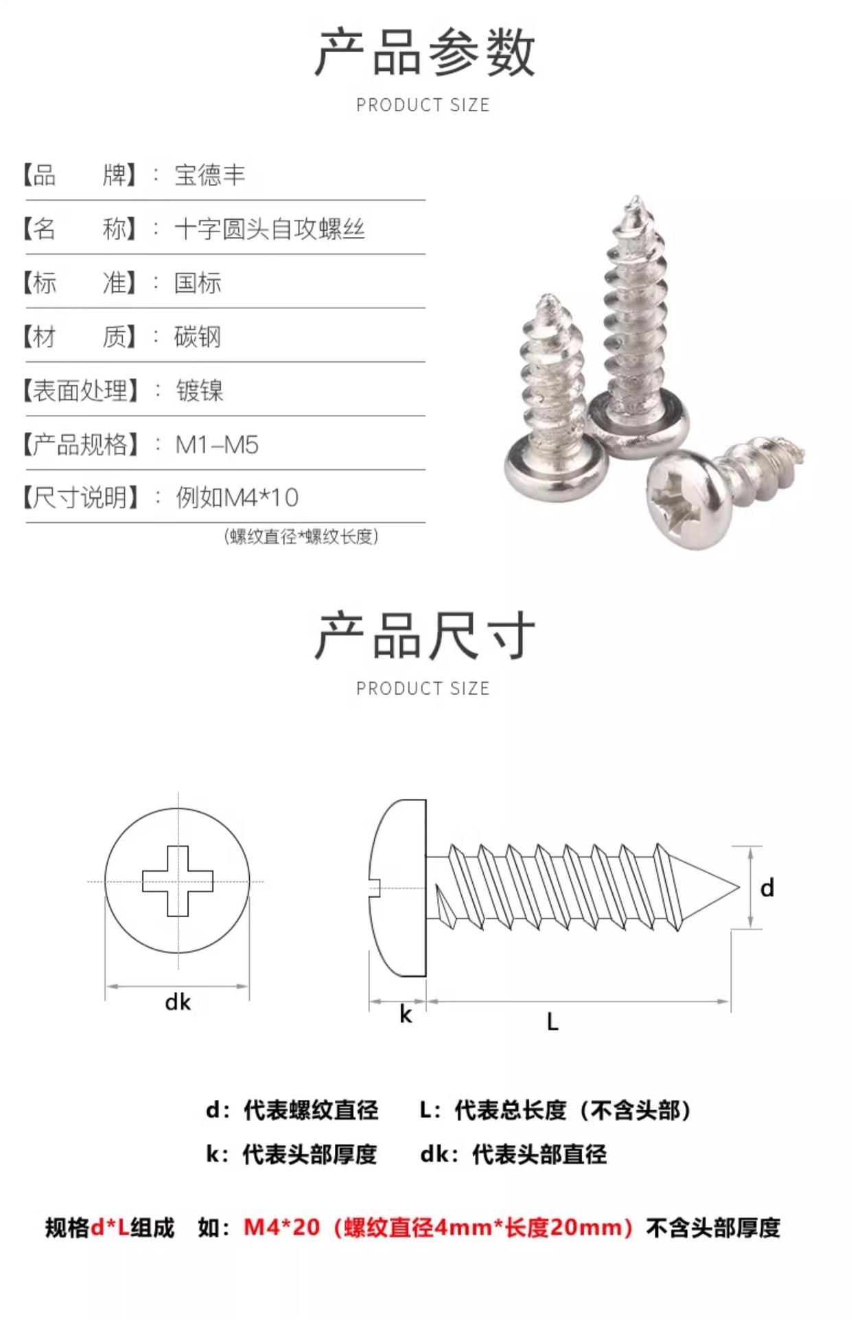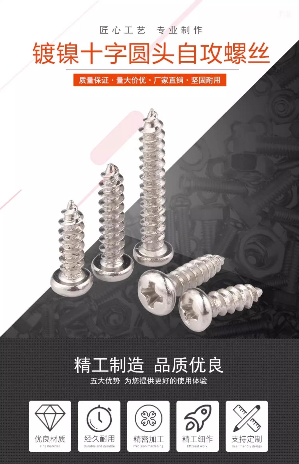 Tornillo autorroscante de cabeza redonda con cruz de hierro niquelado, tornillo de cabeza plana y cola puntiaguda, tornillo electrónico pequeño M1/M1.5M2M3M4