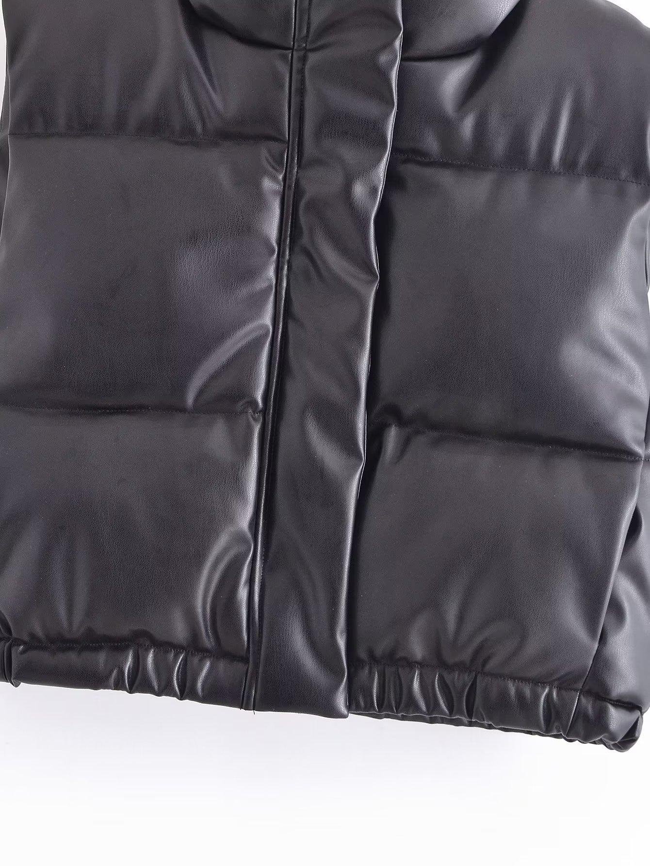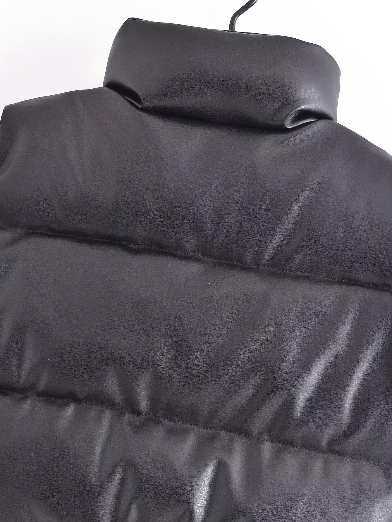 Otoño Nuevo Estilo Europeo y Americano Moda para Mujer Chaleco Corto de Algodón Color Puro Imitación Cuero Chaleco de Algodón 4341804