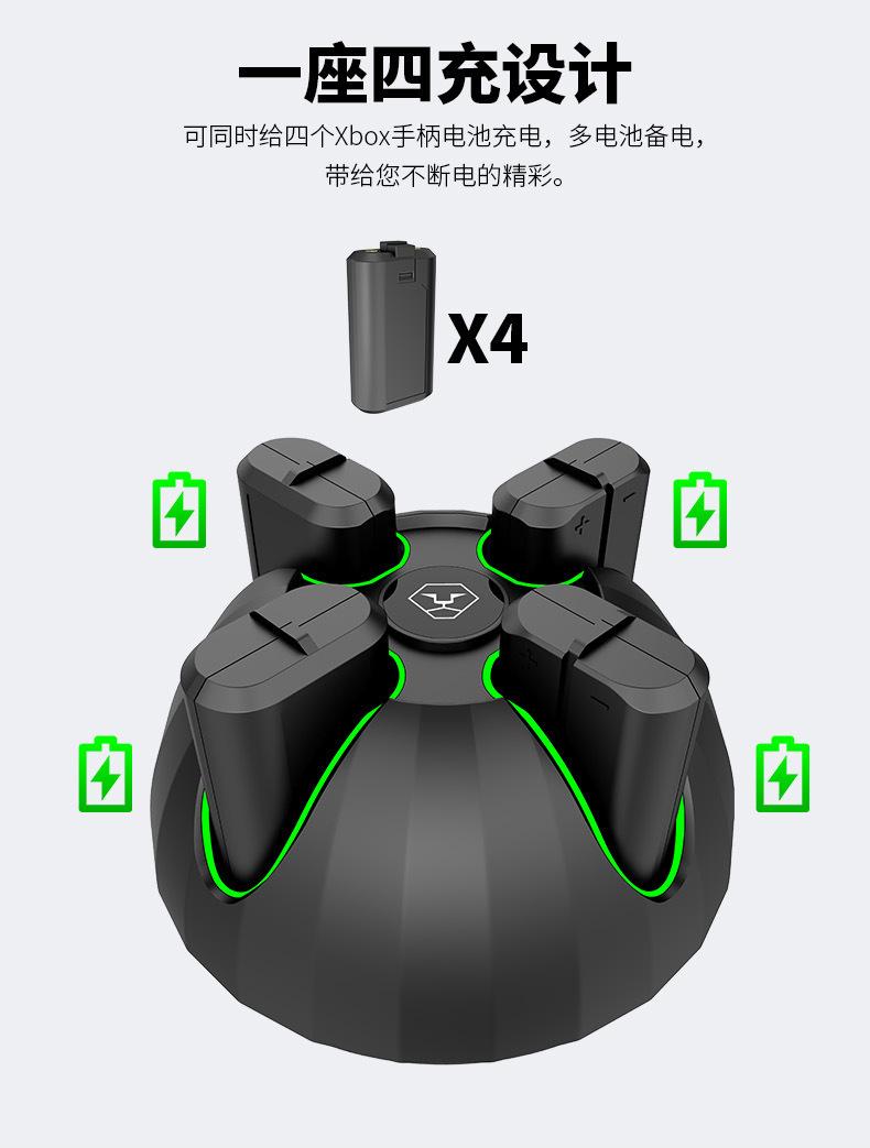 Base de Carga de Batería para Controladores de Xbox 1100mah Batería para Gamepad Series/One Batería Cuádruple