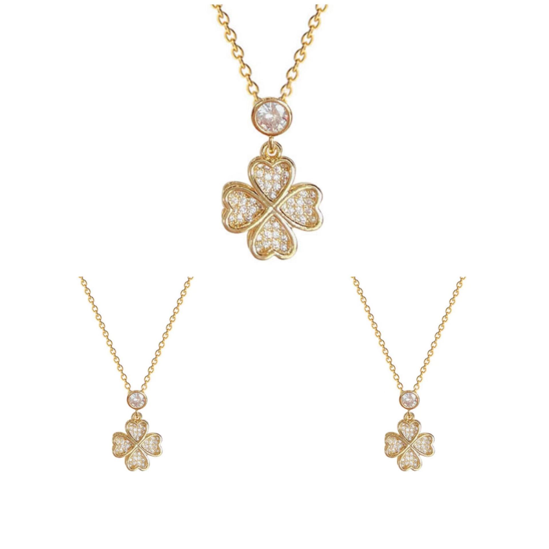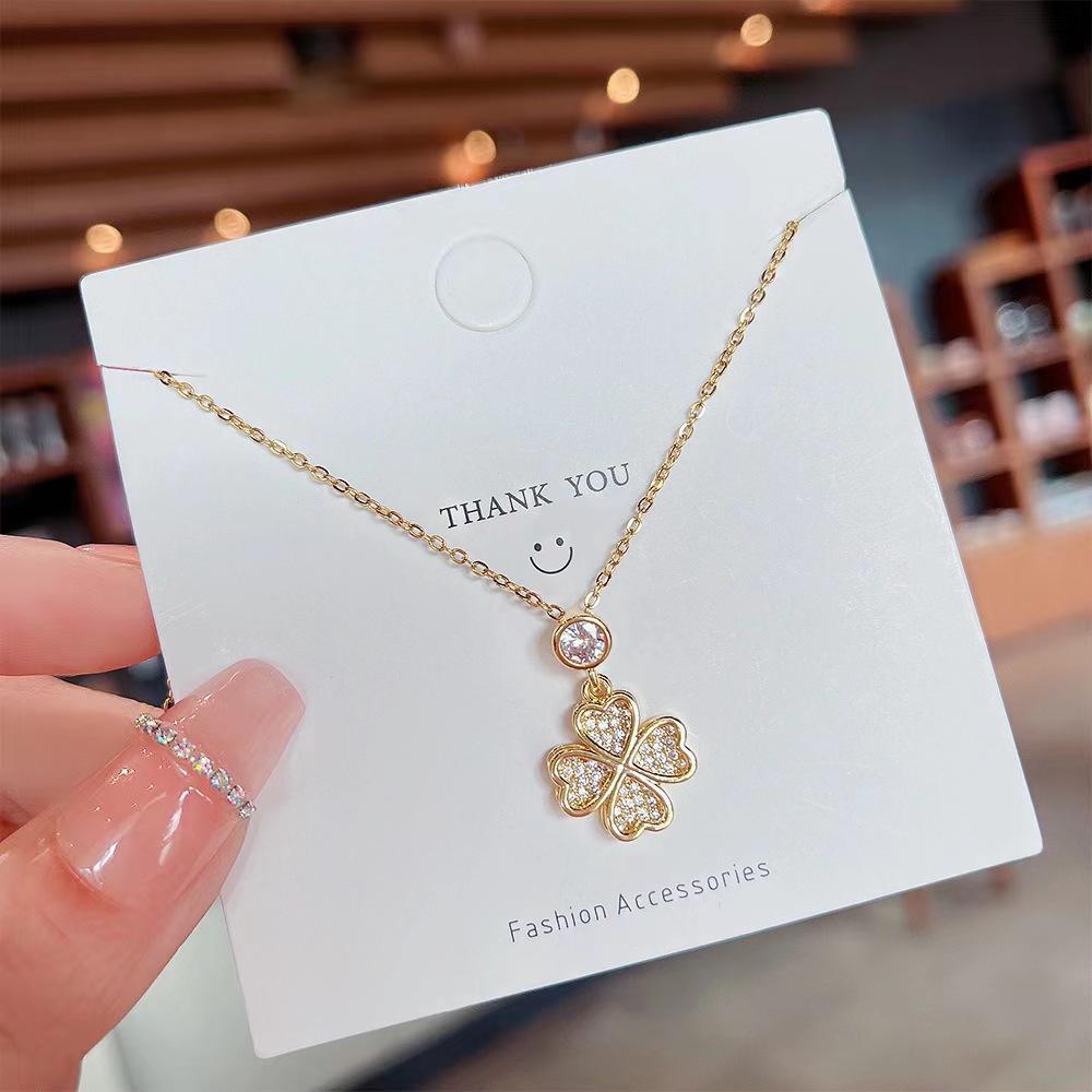 Collar de diamantes con microincrustaciones de moda de estilo coreano, giratorio, con trébol de cuatro hojas de la suerte, cadena de clavícula simple de alto nivel.