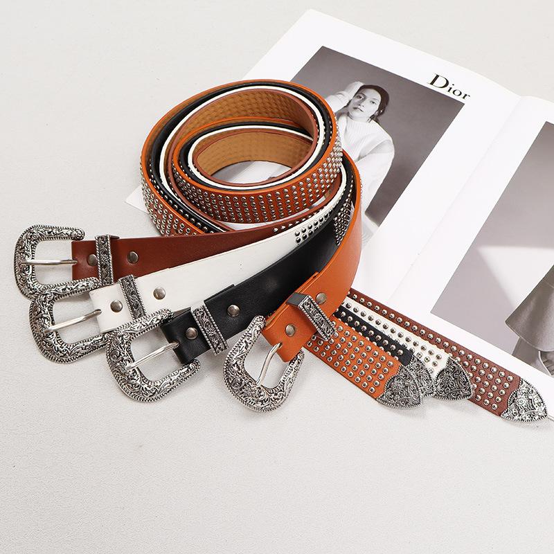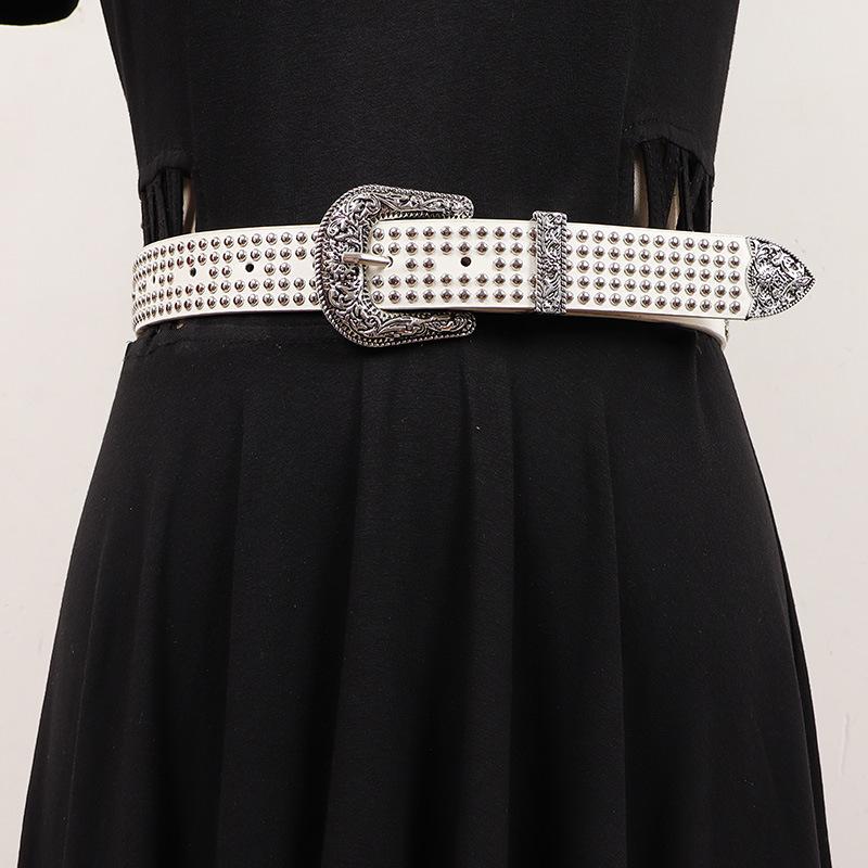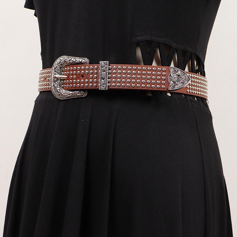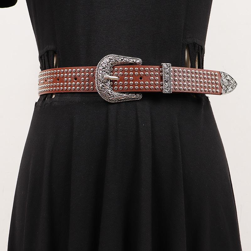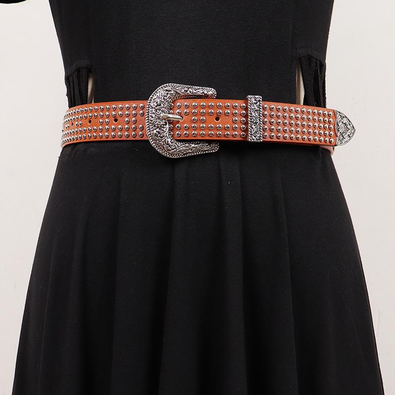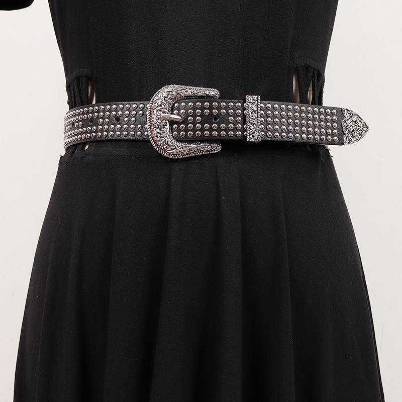 Cinturón vintage Y2K para mujer, estilo punk con remaches, estilo coreano, combina con todo, estilo decorativo para jeans, 2024