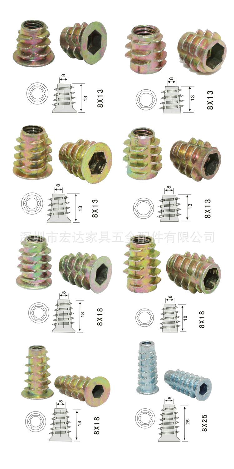 Venta directa de fábrica de tuercas hexagonales rectas con dientes internos y externos, cabeza avellanada con piezas incrustadas, tuerca trapezoidal de aleación de zinc