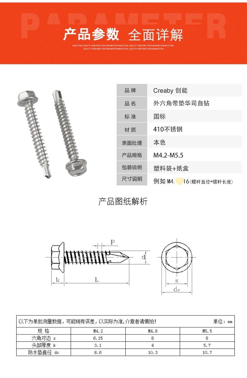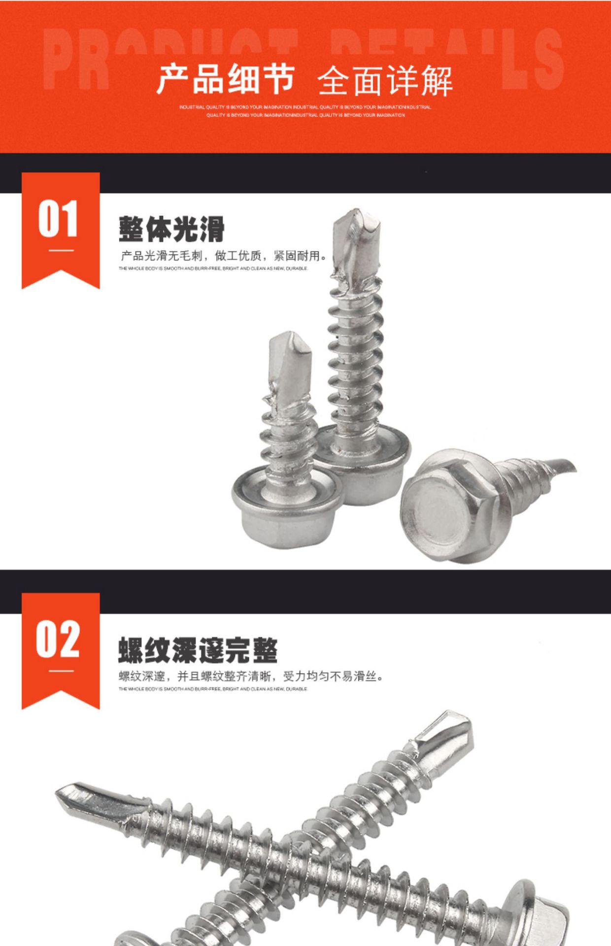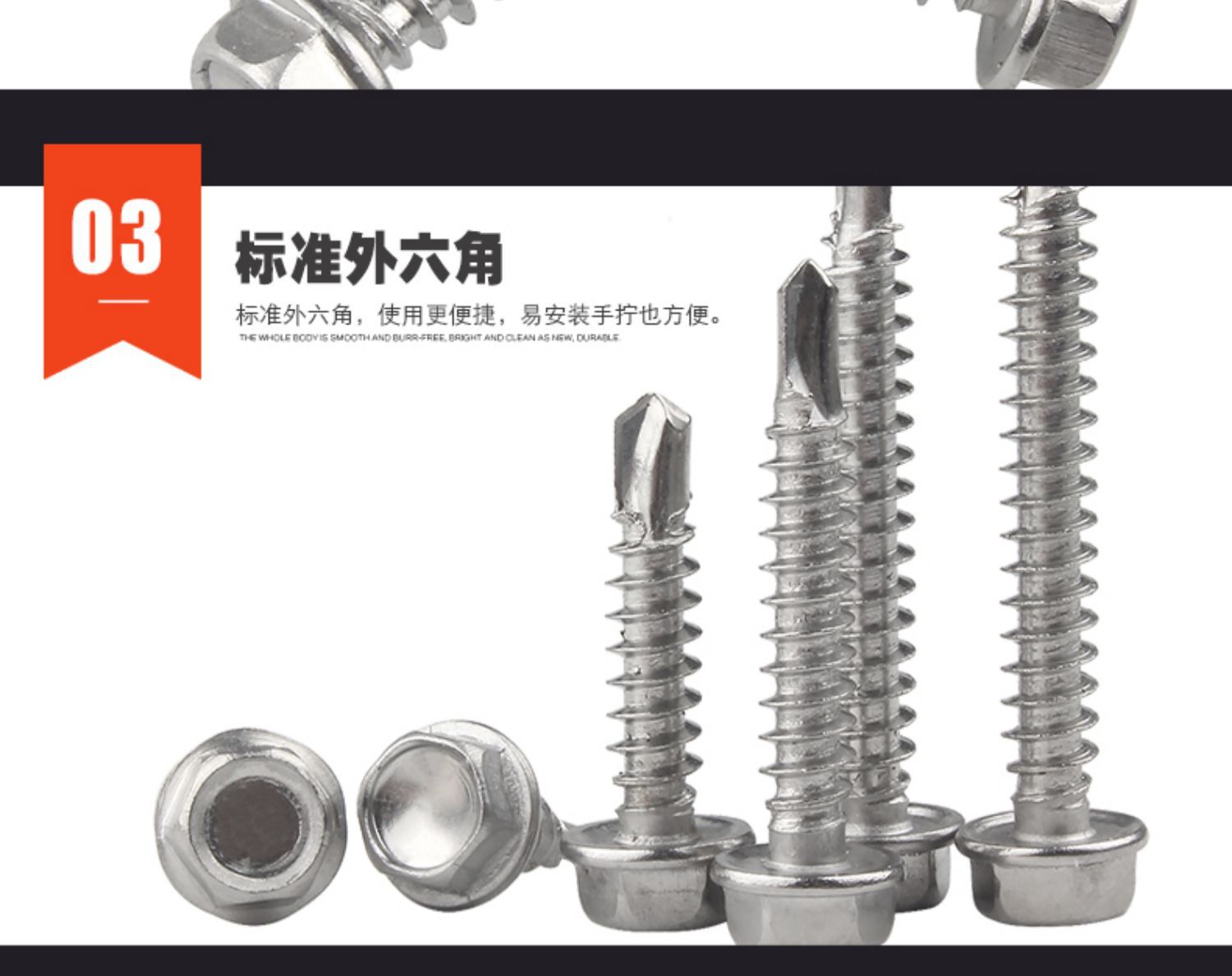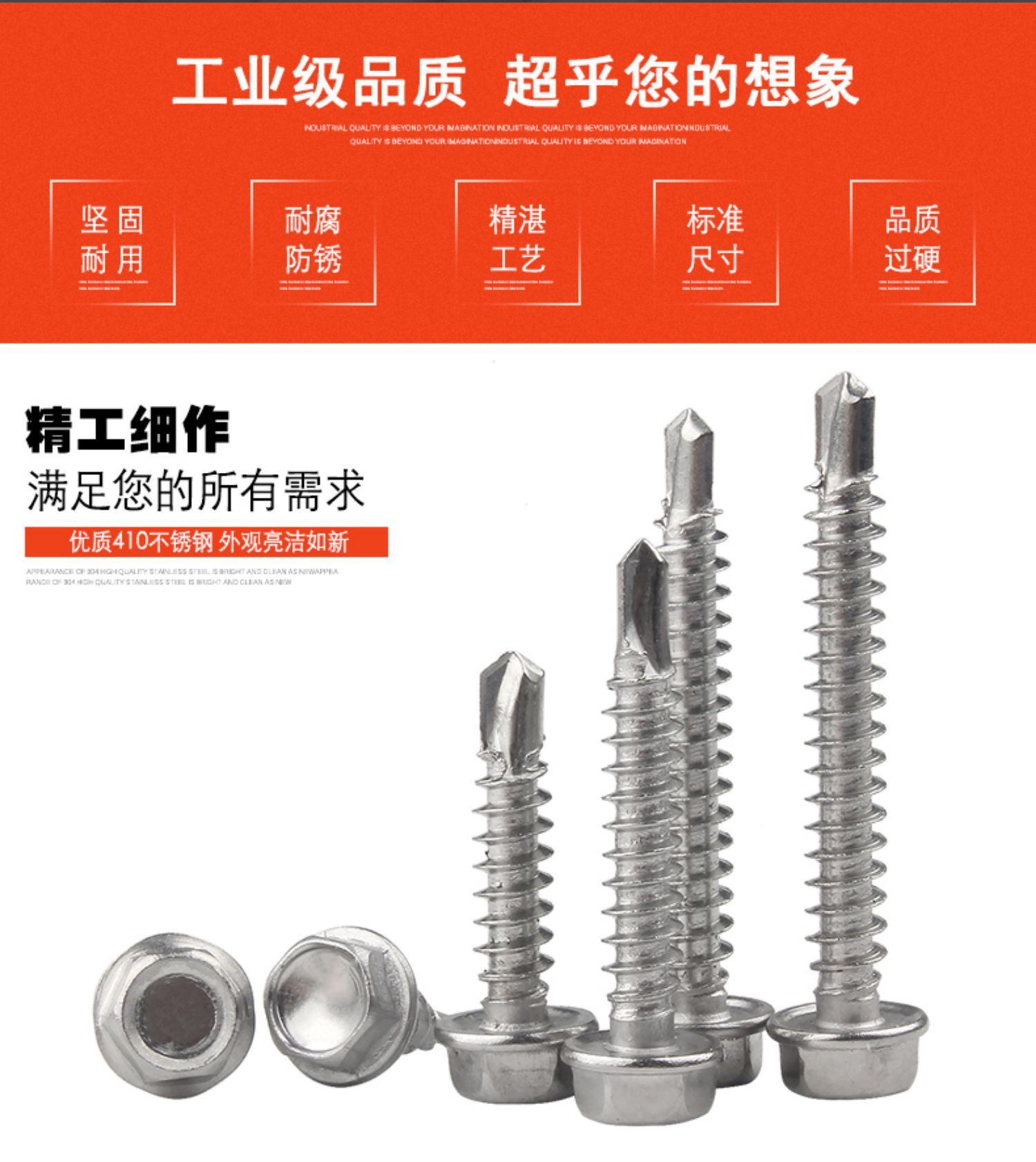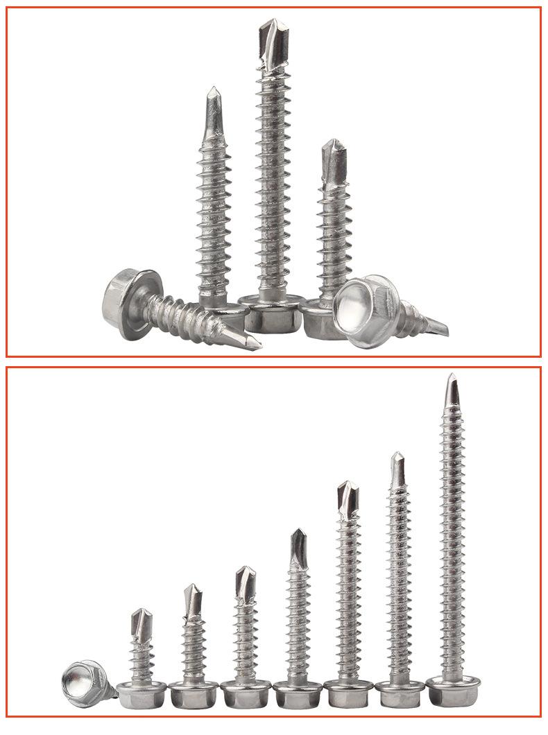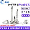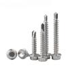 Tornillo de cola de milano con cabeza hexagonal externa de acero inoxidable 410, autorroscante y autoperforante, M4.2M4.8M6.3, 304