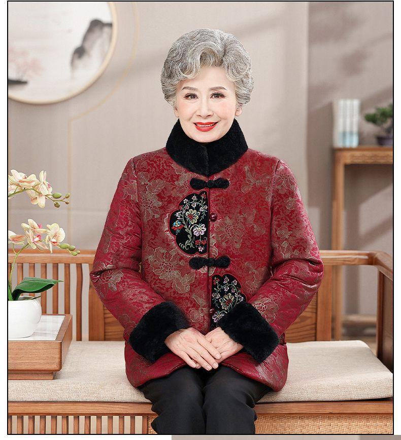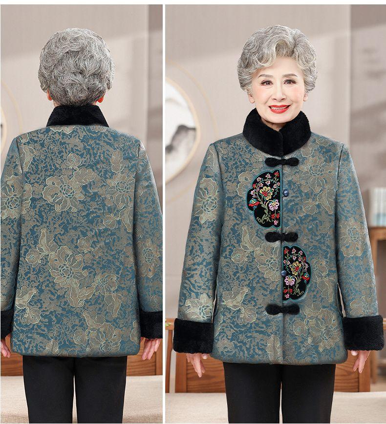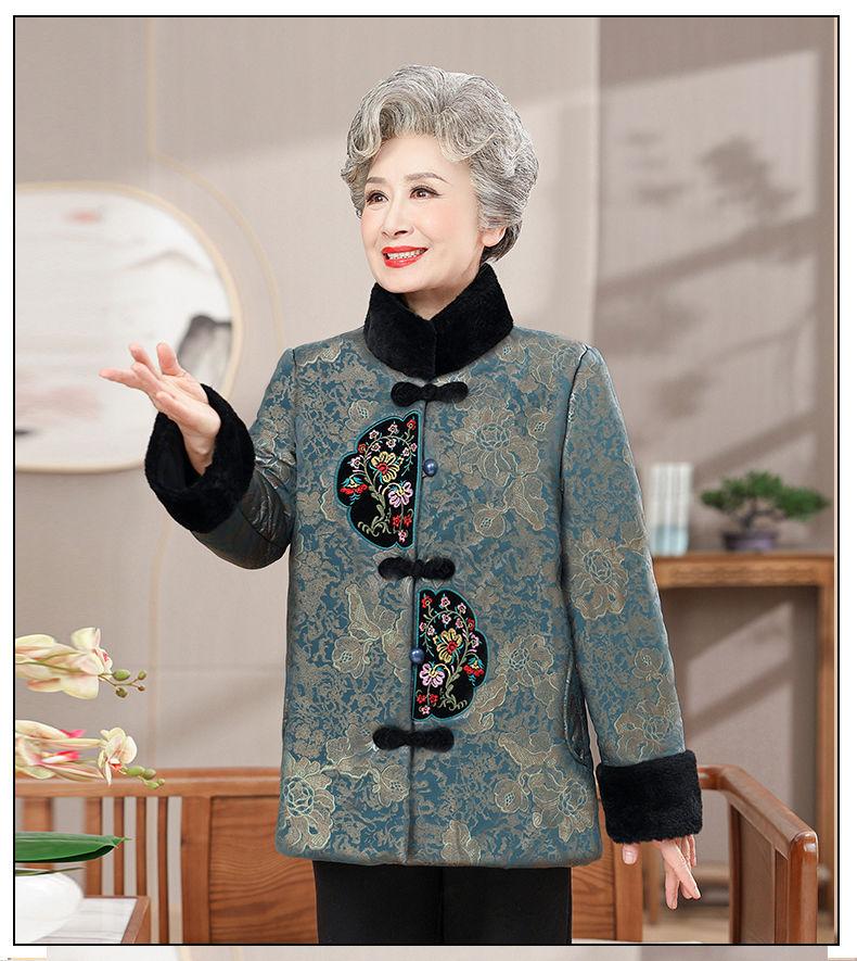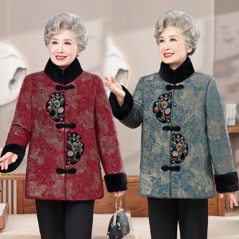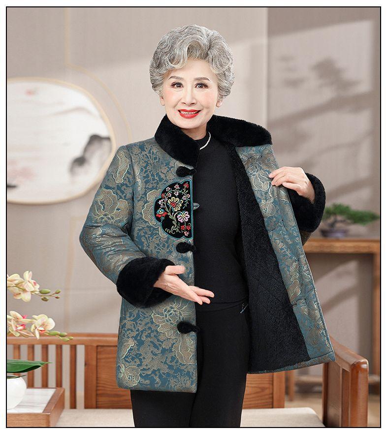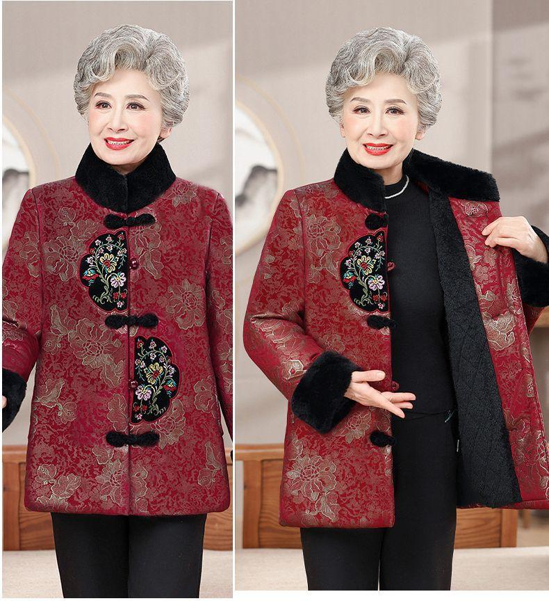 2024 otoño e invierno nuevo abrigo acolchado de algodón con forro polar de abuela, abrigo para anciana, abrigo acolchado de algodón para madre, ropa de invierno cálida bordada