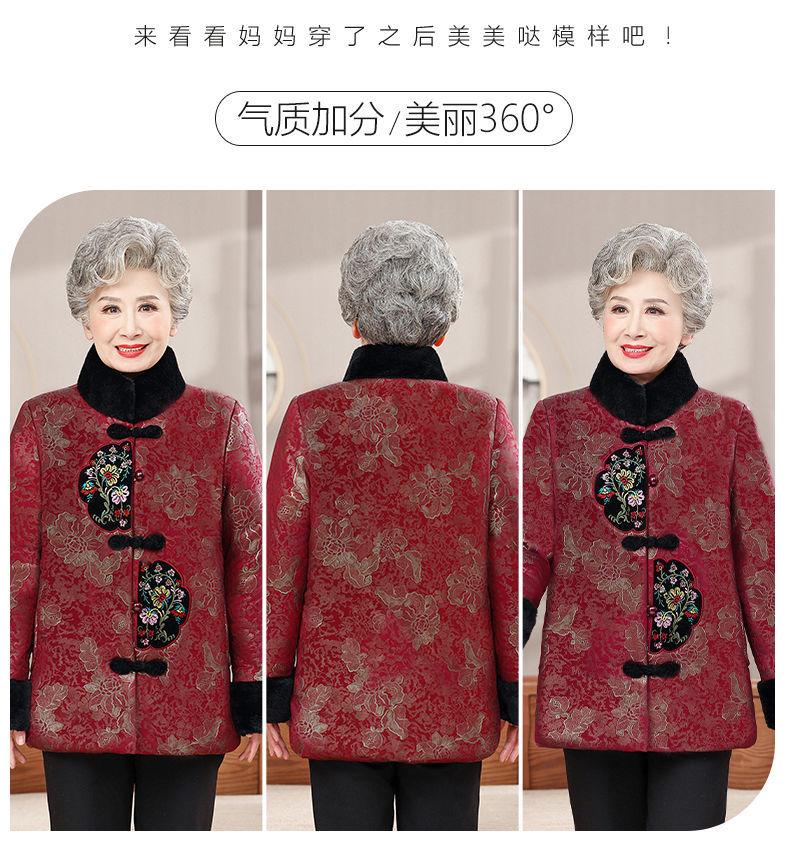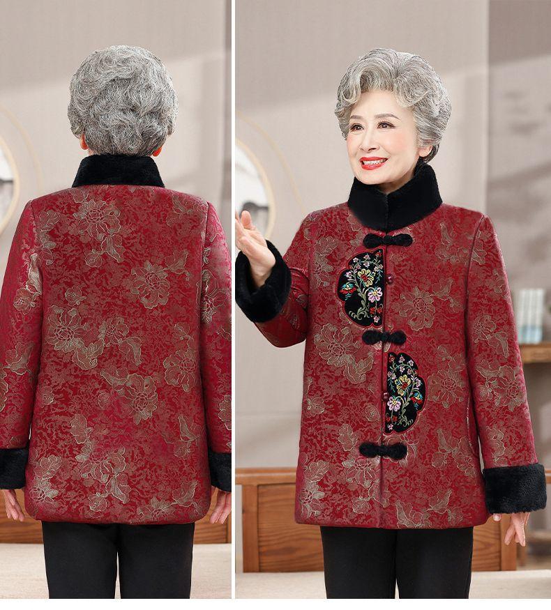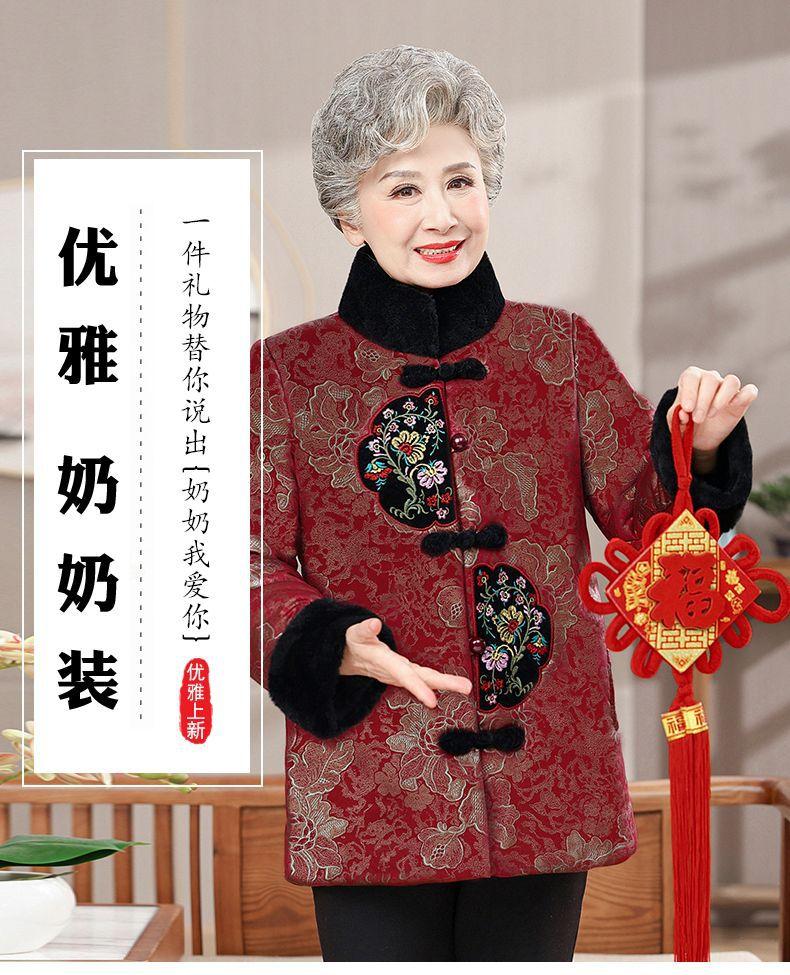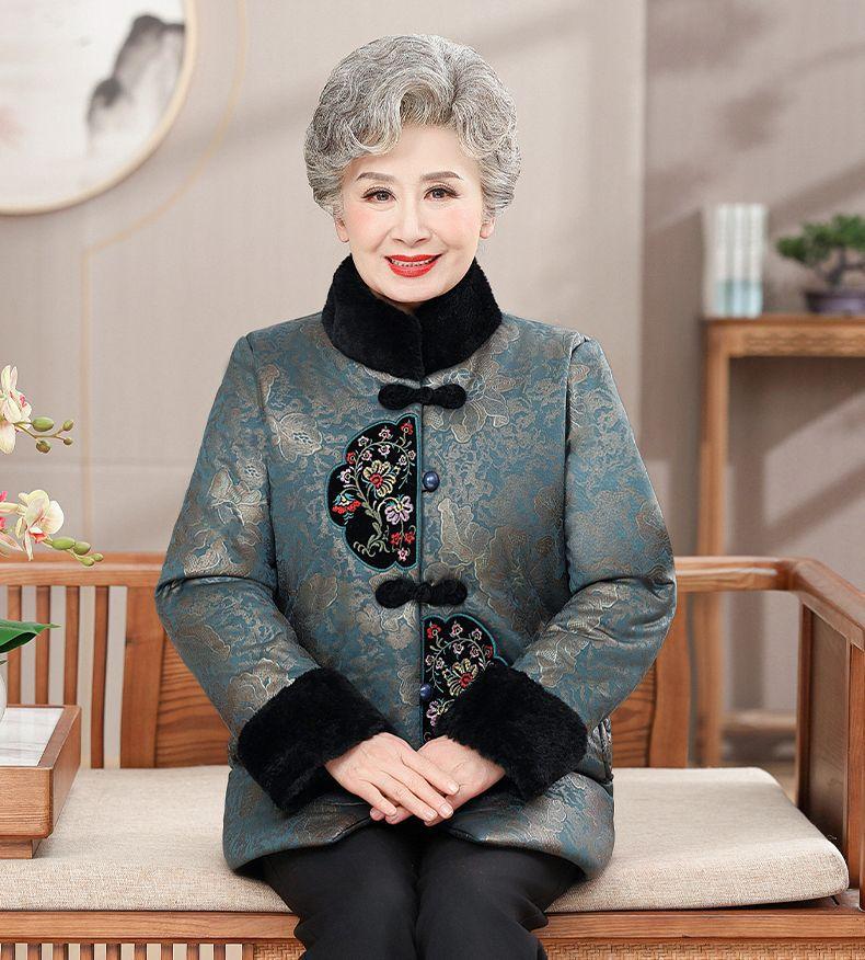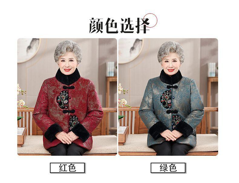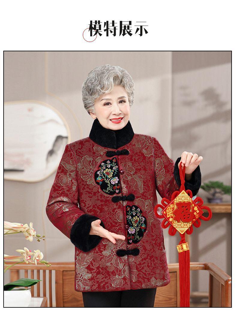 2024 otoño e invierno nuevo abrigo acolchado de algodón con forro polar de abuela, abrigo para anciana, abrigo acolchado de algodón para madre, ropa de invierno cálida bordada