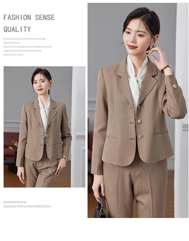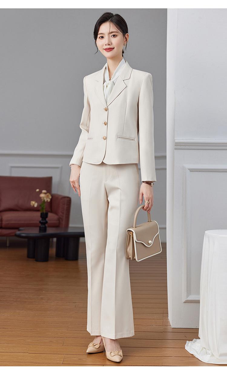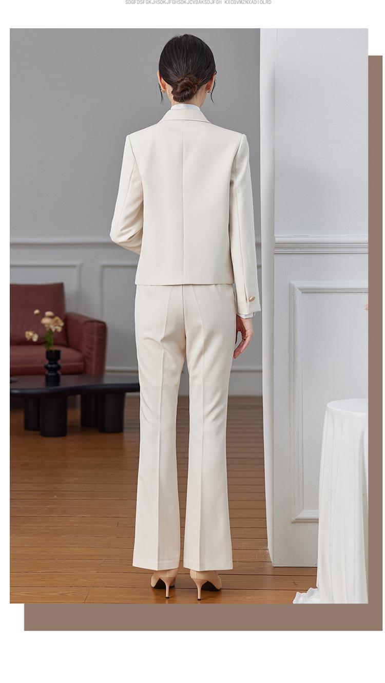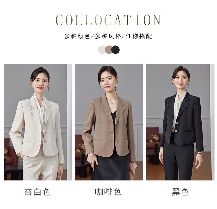Chaqueta de Traje Albaricoque Pequeña Corta de Tres Botones para Mujer Venta al por Mayor Nuevo Primavera y Otoño Traje Profesional de Pantalones de Pierna Ancha de Alta Gama