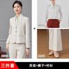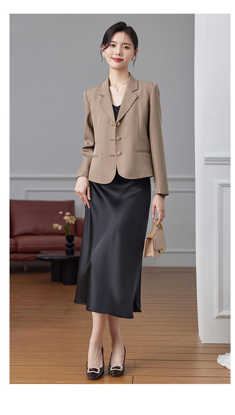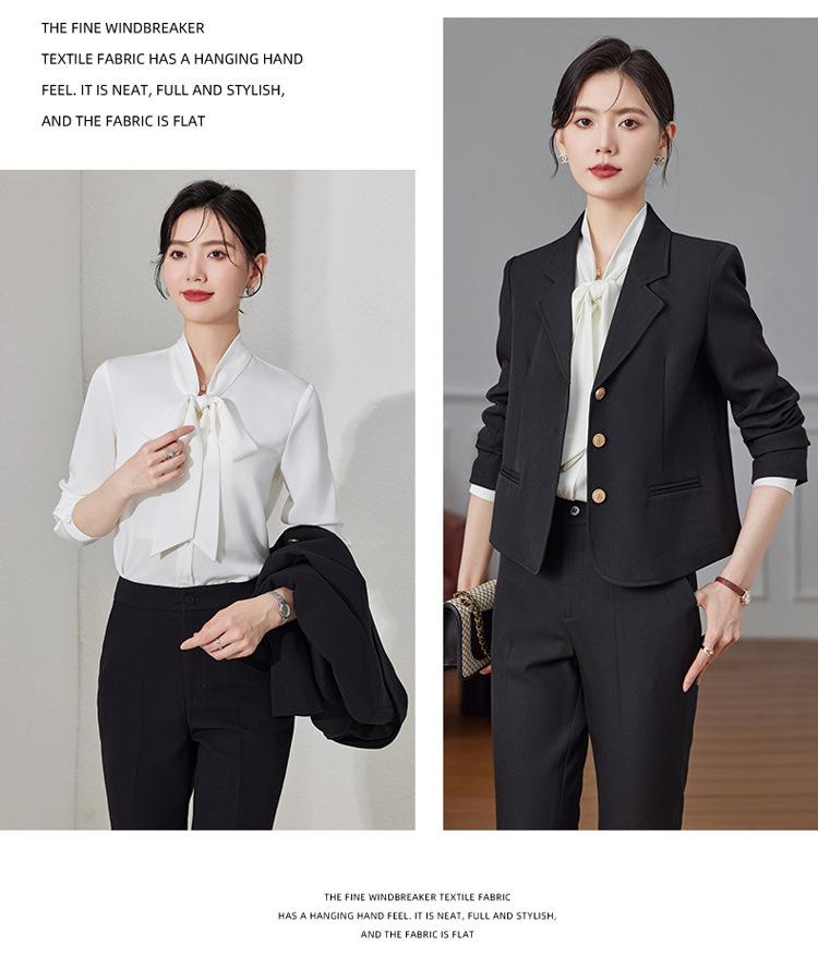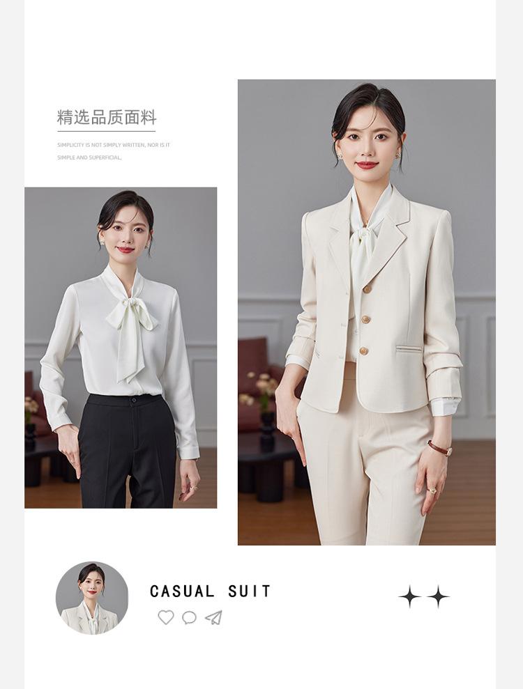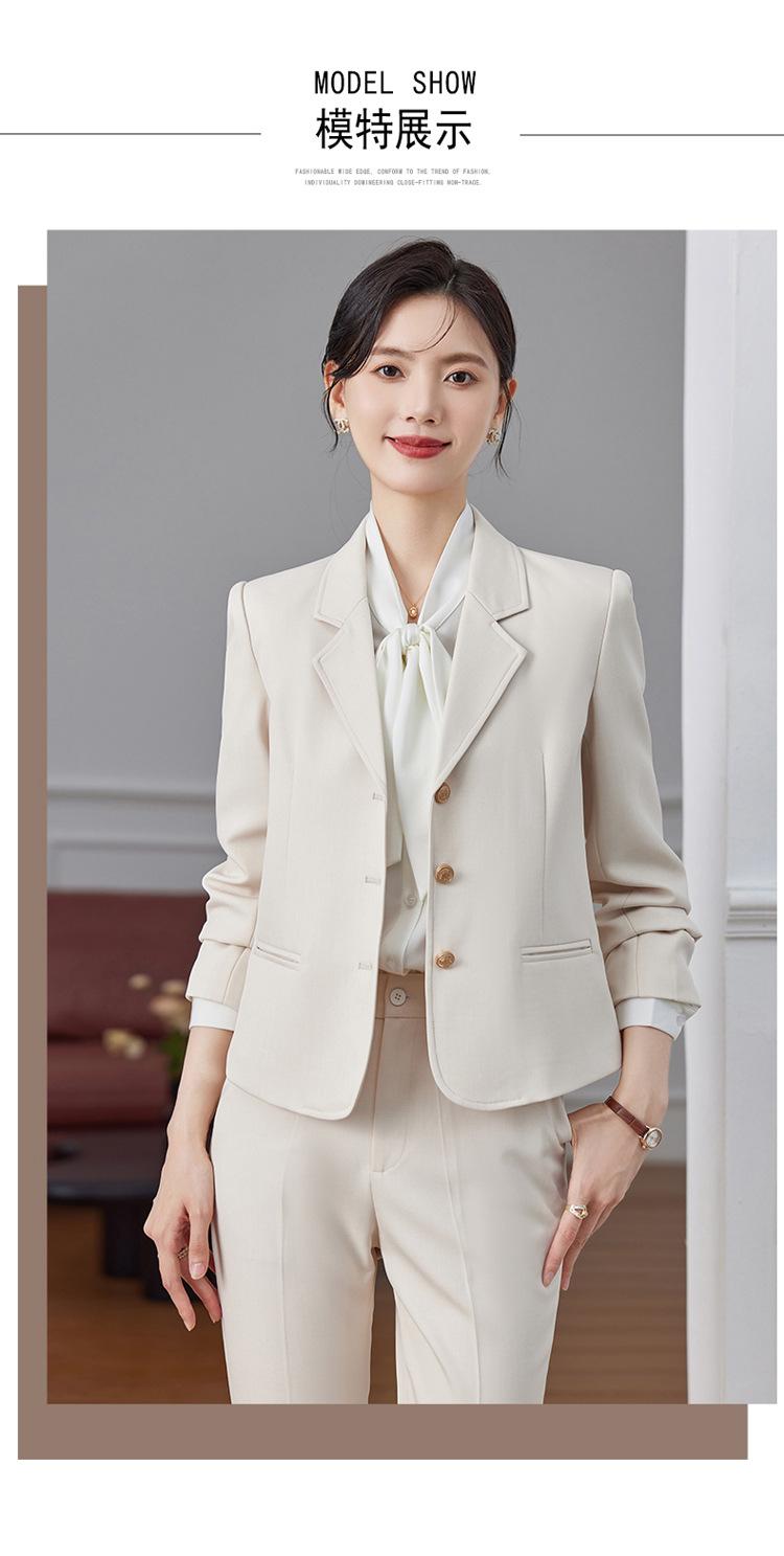 Chaqueta de Traje Albaricoque Pequeña Corta de Tres Botones para Mujer Venta al por Mayor Nuevo Primavera y Otoño Traje Profesional de Pantalones de Pierna Ancha de Alta Gama