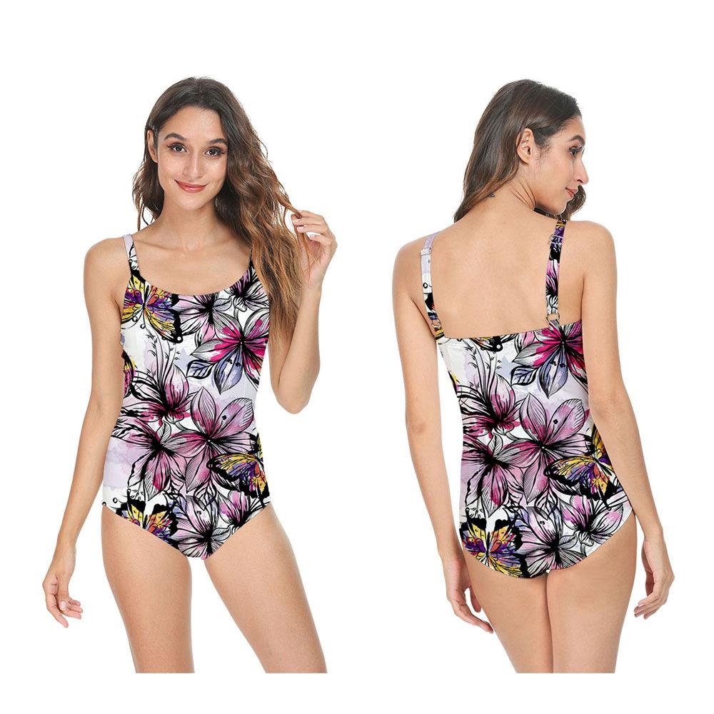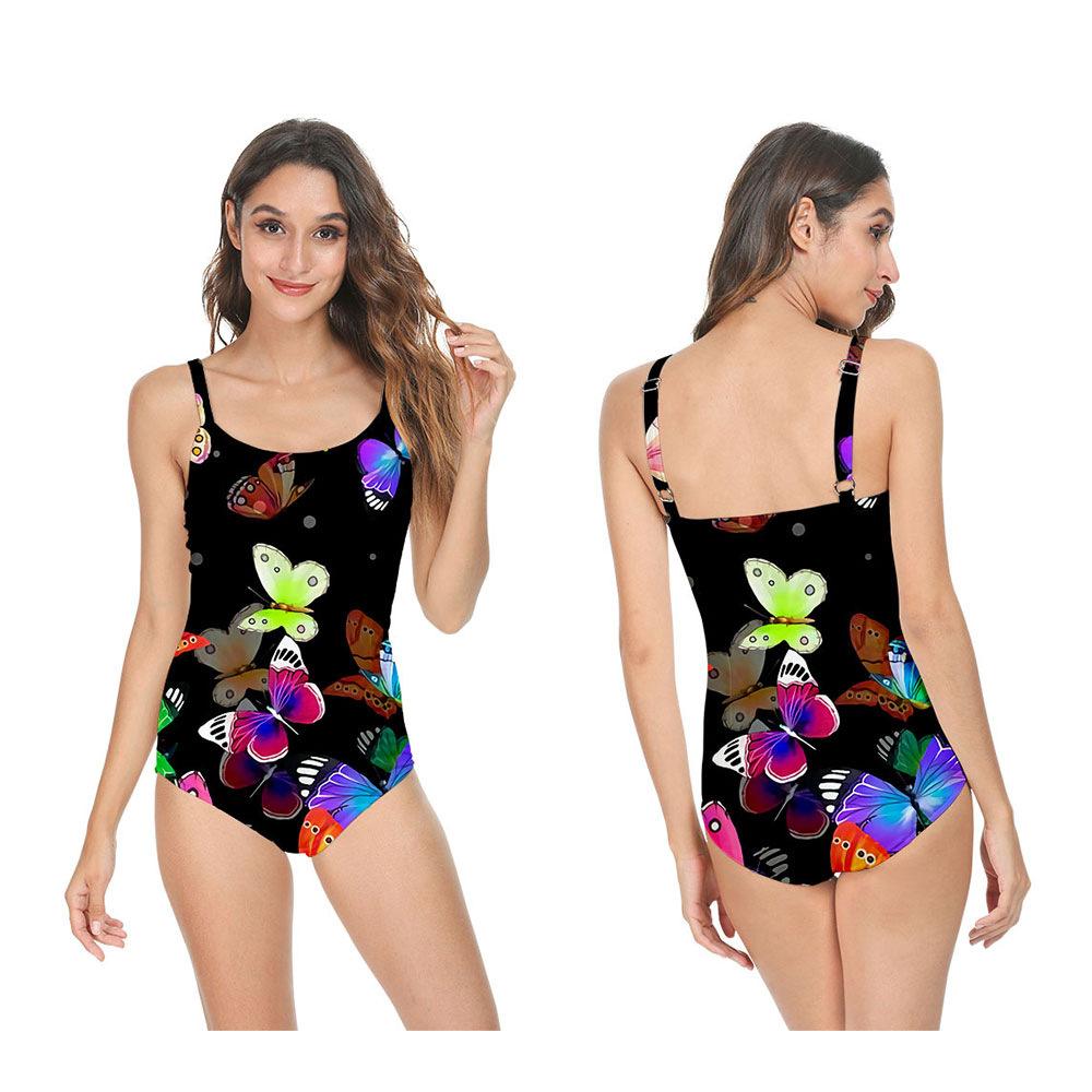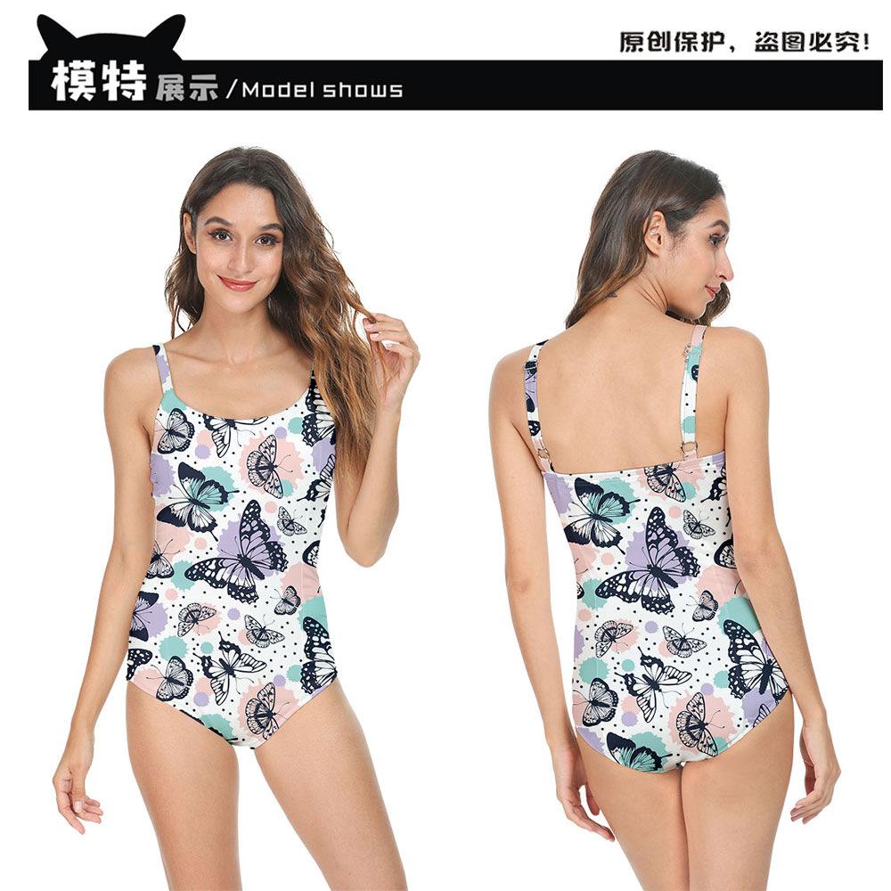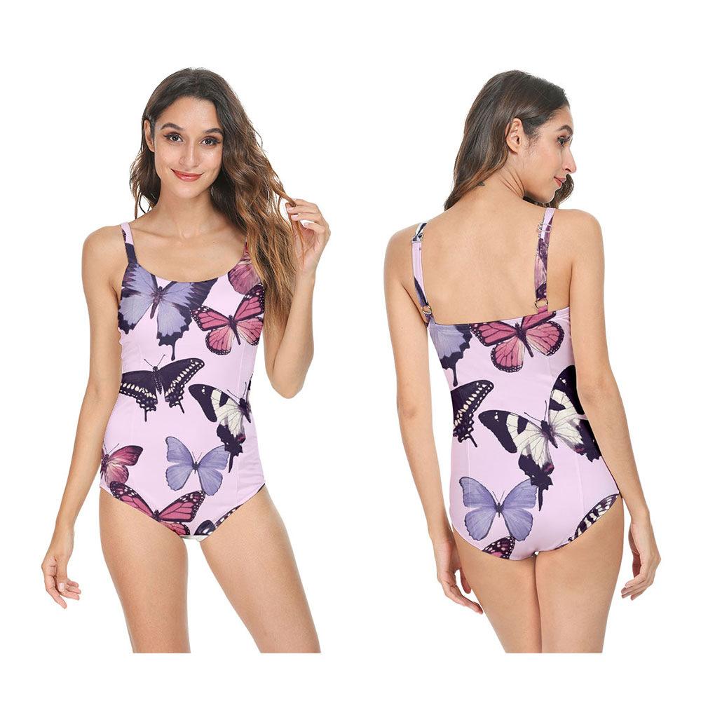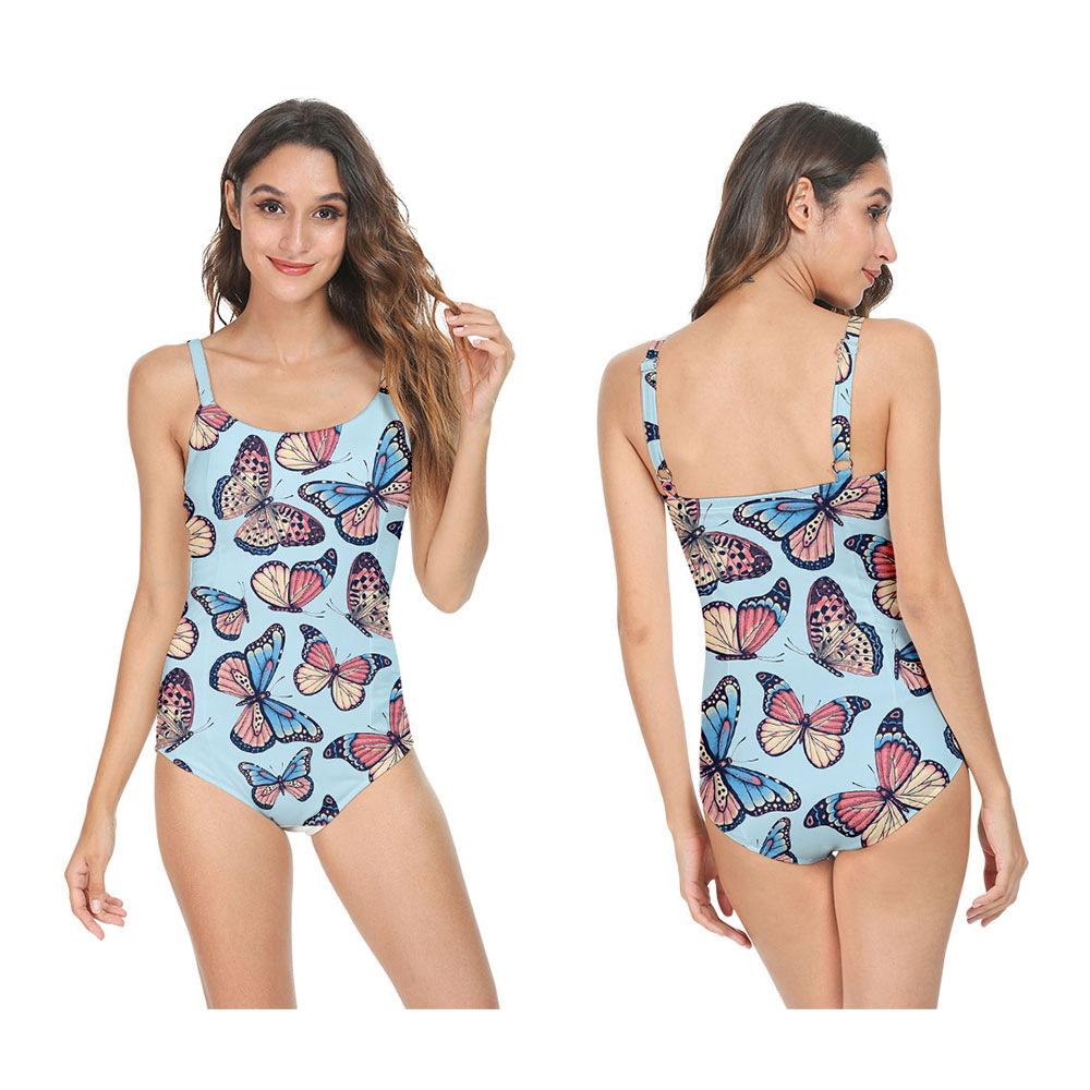 Nuevo bikini sexy de una pieza con estampado de mariposas de Amazon, estilo europeo y americano, sin espalda, para mujer