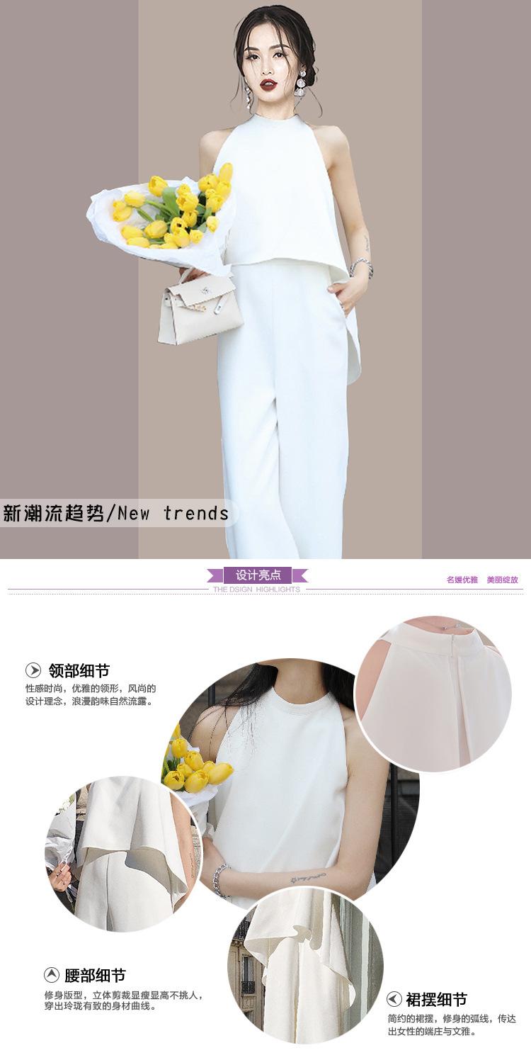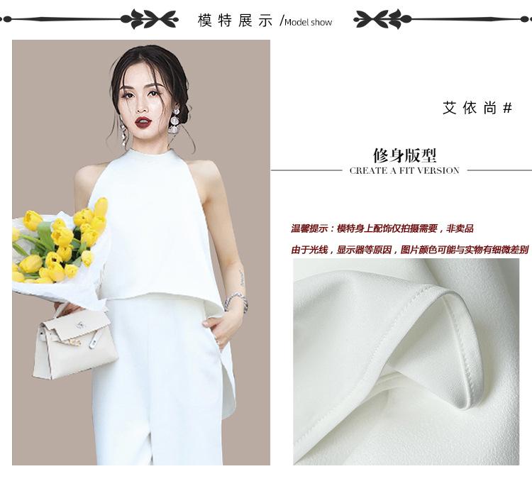 Estilo Lujo Ligero Socialité Color Sólido Cuello Top sin Mangas Pantalones Pierna Ancha Mono Transfronterizo Mono para Mujer