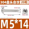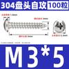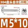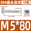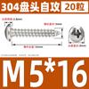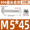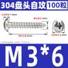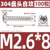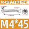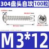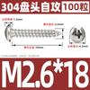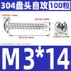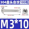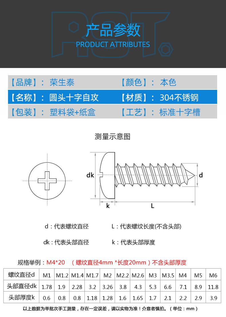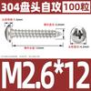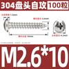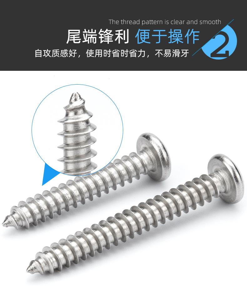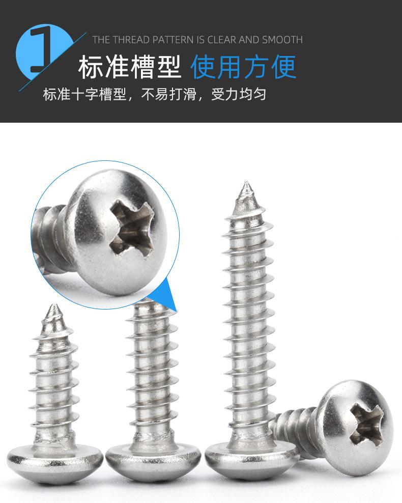 Tornillo de cabeza redonda de acero inoxidable 304, cabeza plana, cruz de madera, clavo rojo, tornillo de cabeza grande, autorroscante, M2m3m4m5m6