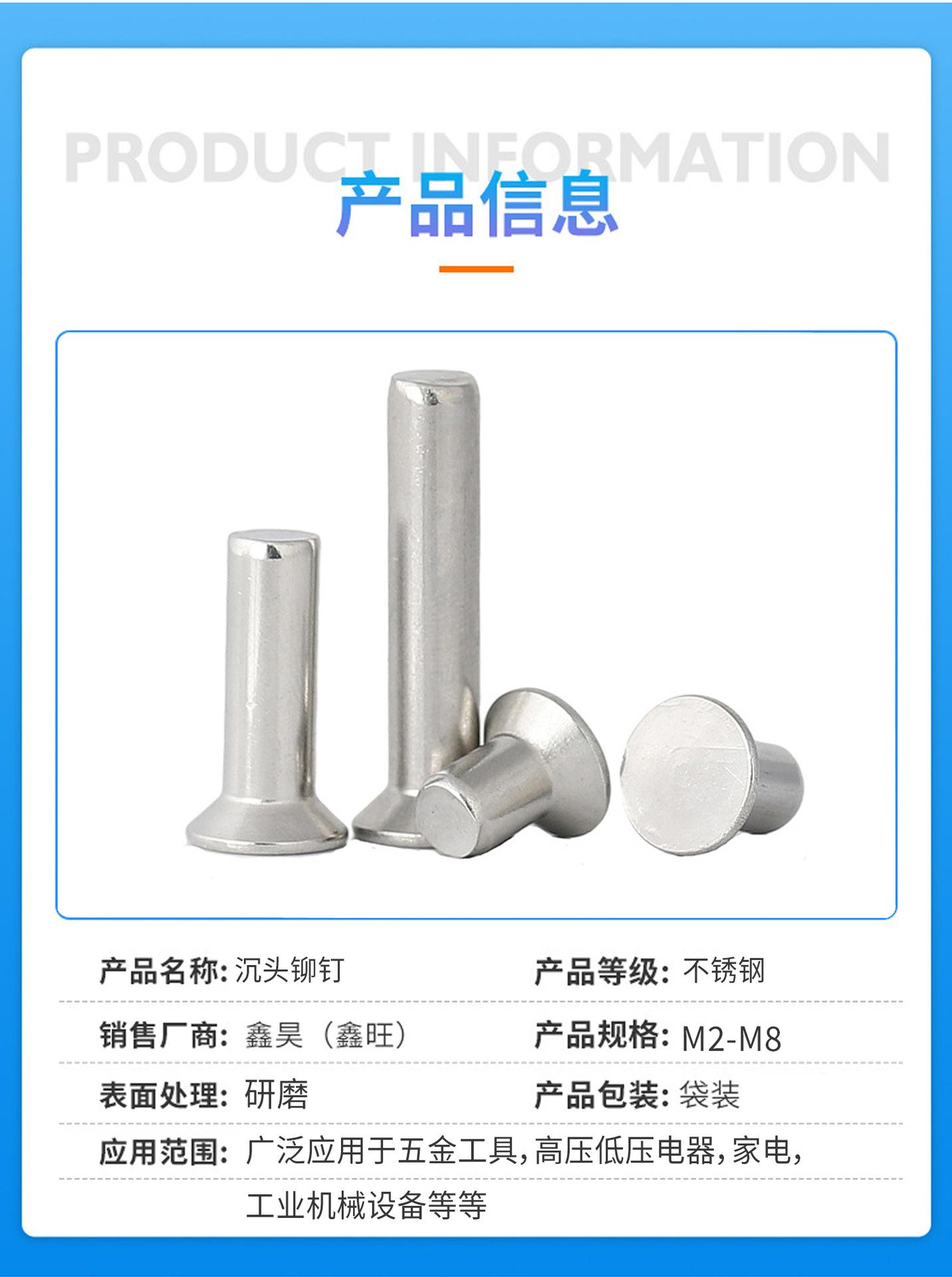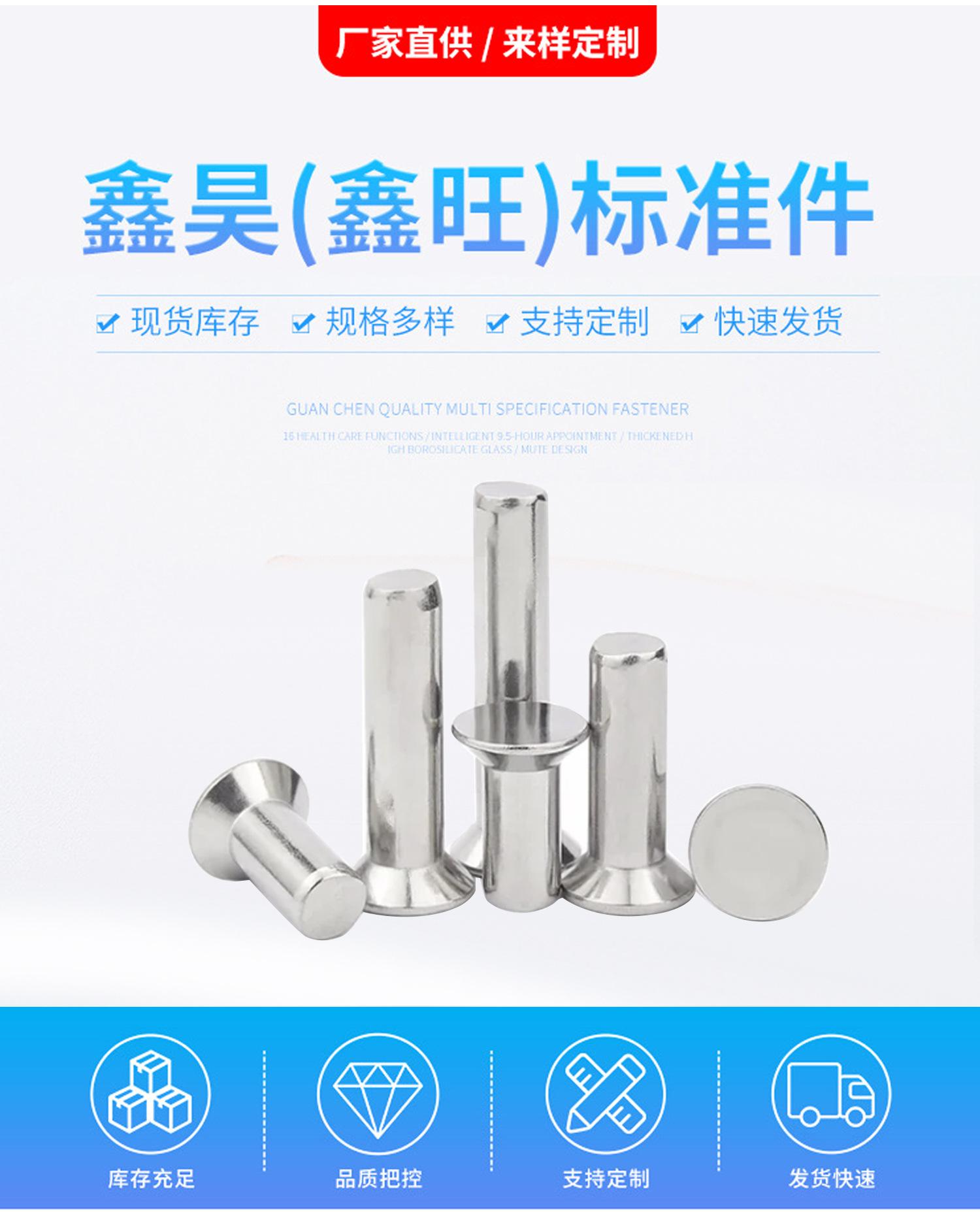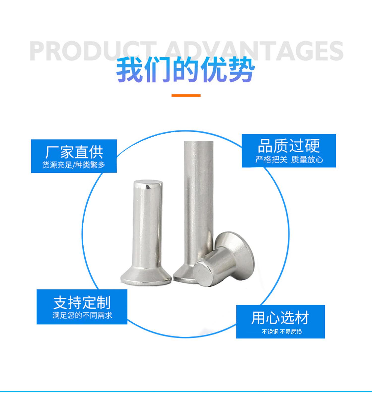 Remache de cabeza avellanada de acero inoxidable macizo 304, clavo con placa de identificación incrustada, GB869, estándar nacional, general, en stock, fabricantes al por mayor