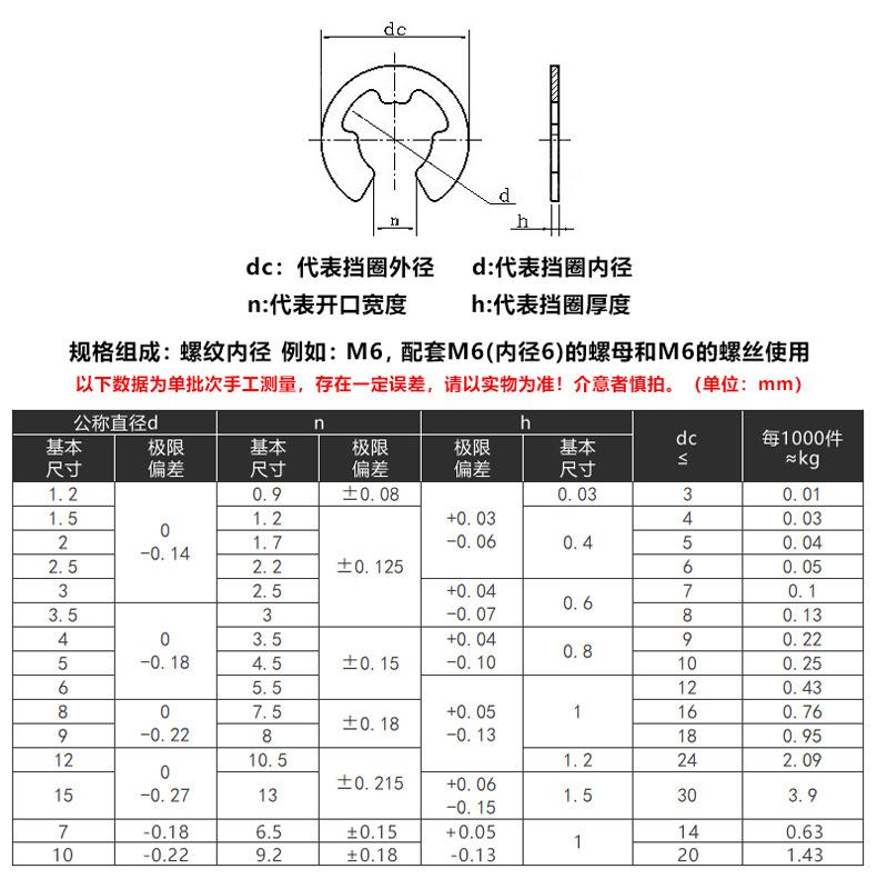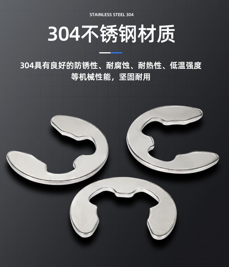 Arandela circlip tipo E de acero inoxidable 304 anillo de retención abierto circlip eje con circlip abierto snap M1.5-M15